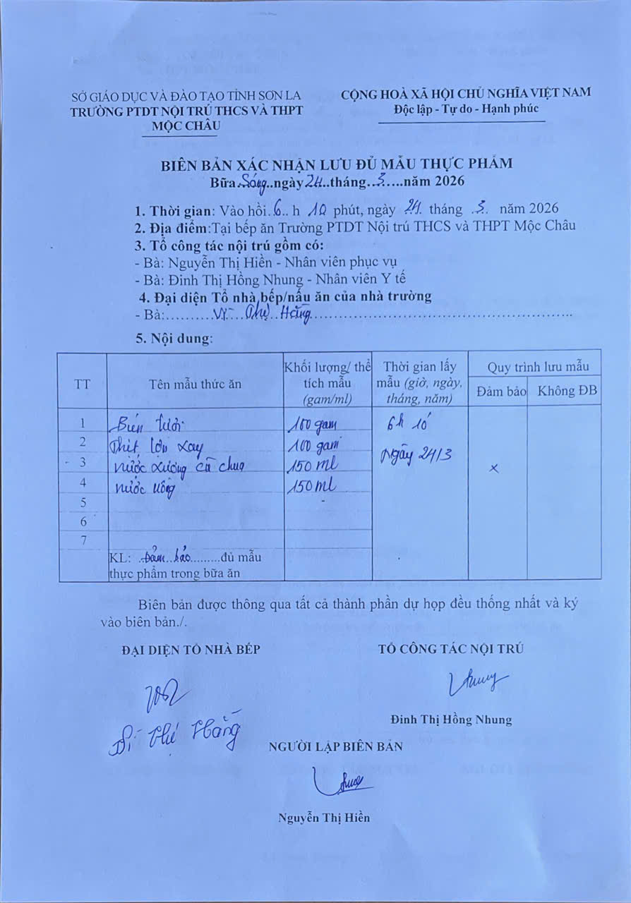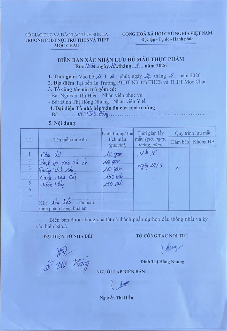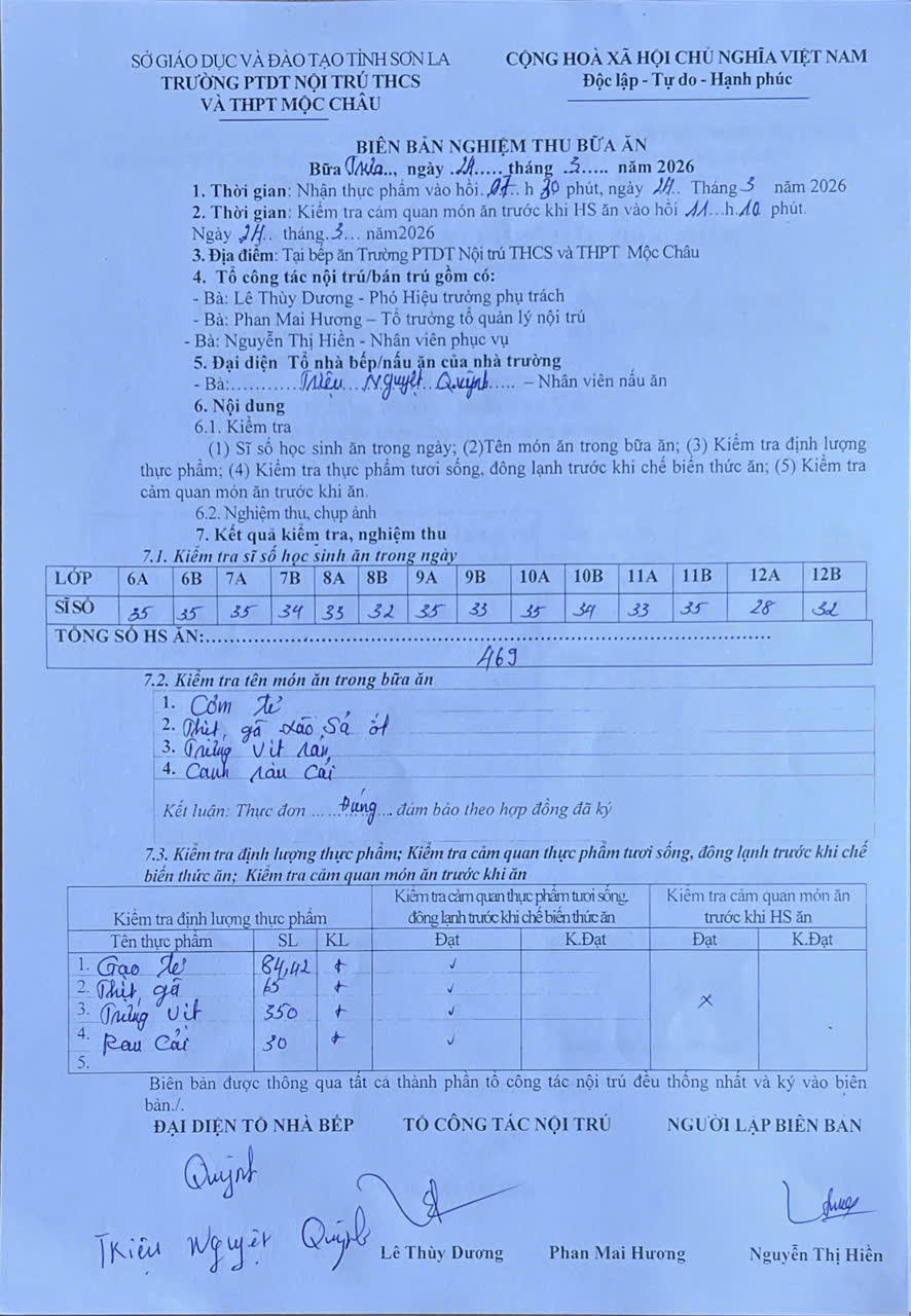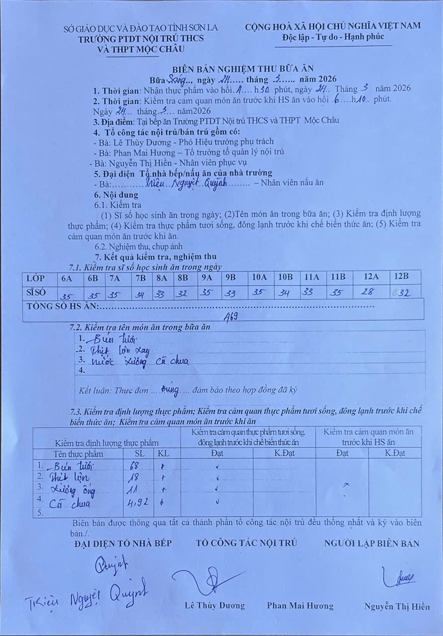 Hình ảnh và biên bản bữa sáng,trưa ngày 24/3/2026