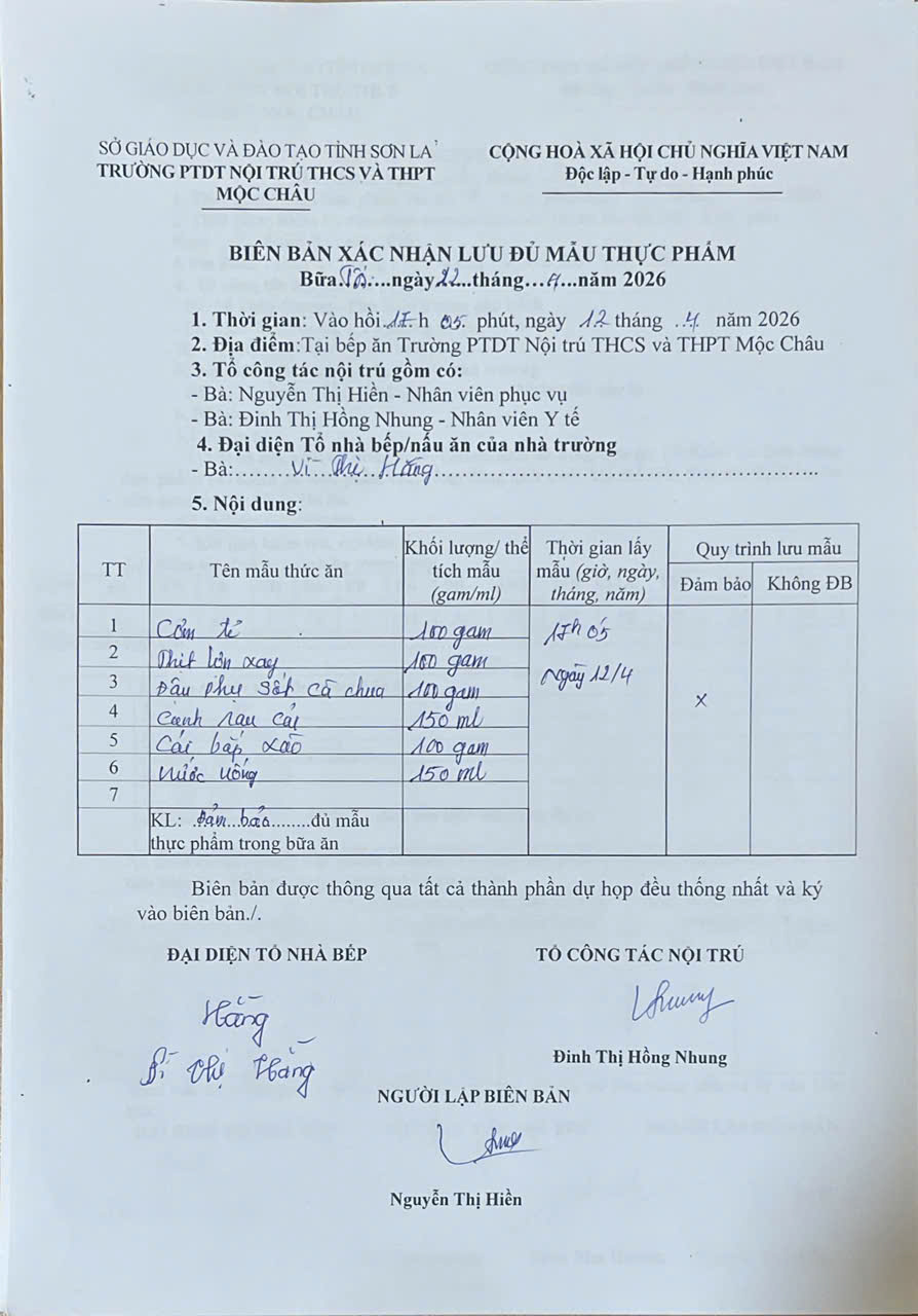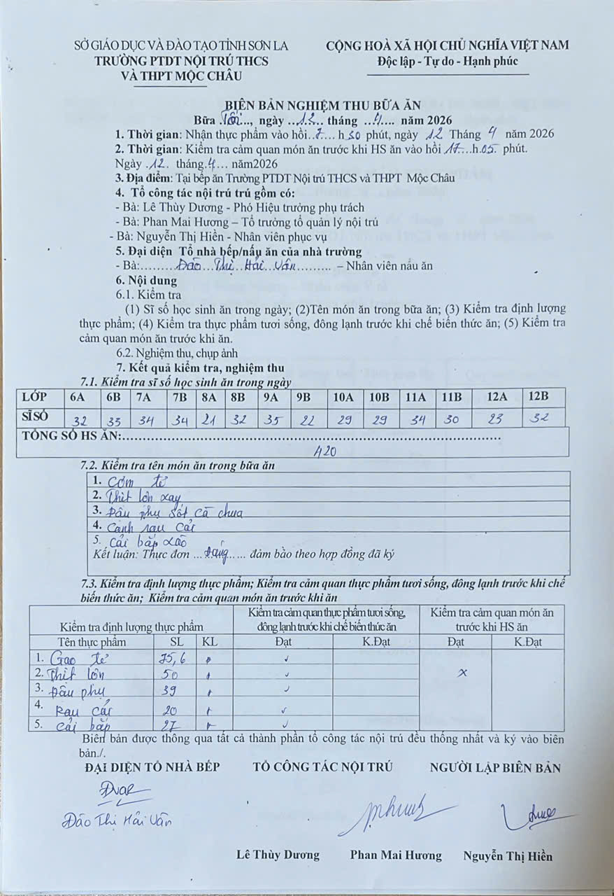Hình ảnh và biên bản bữa ăn sáng,trưa ngày 12/4/2026
