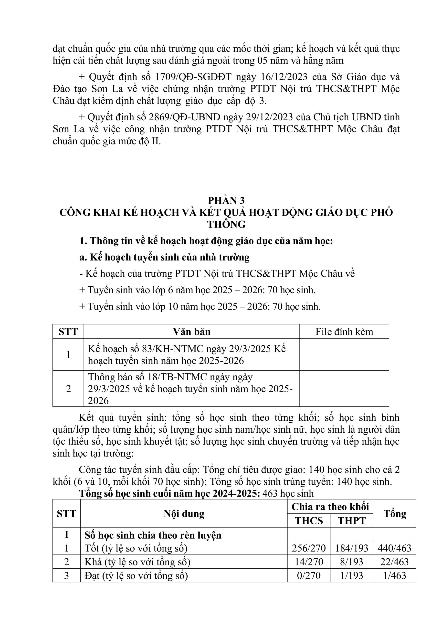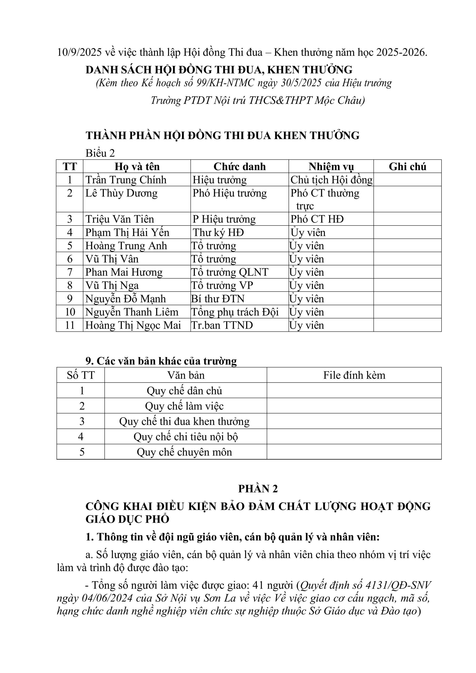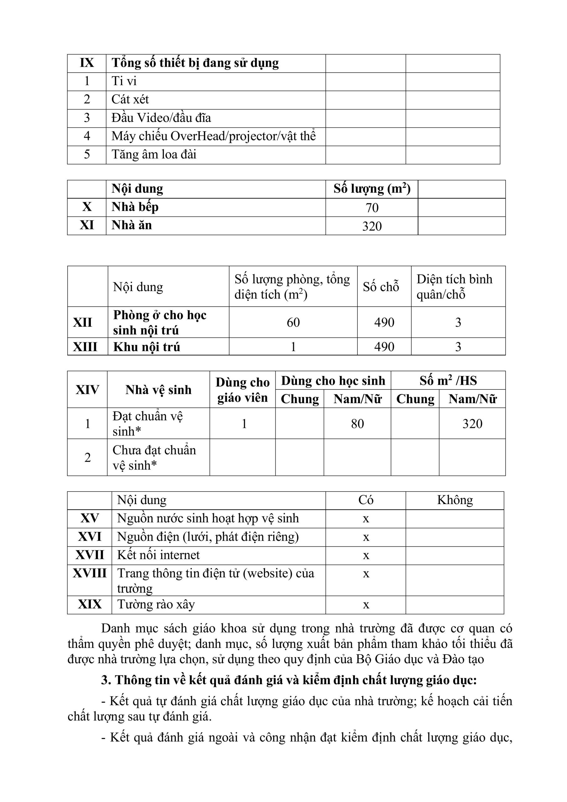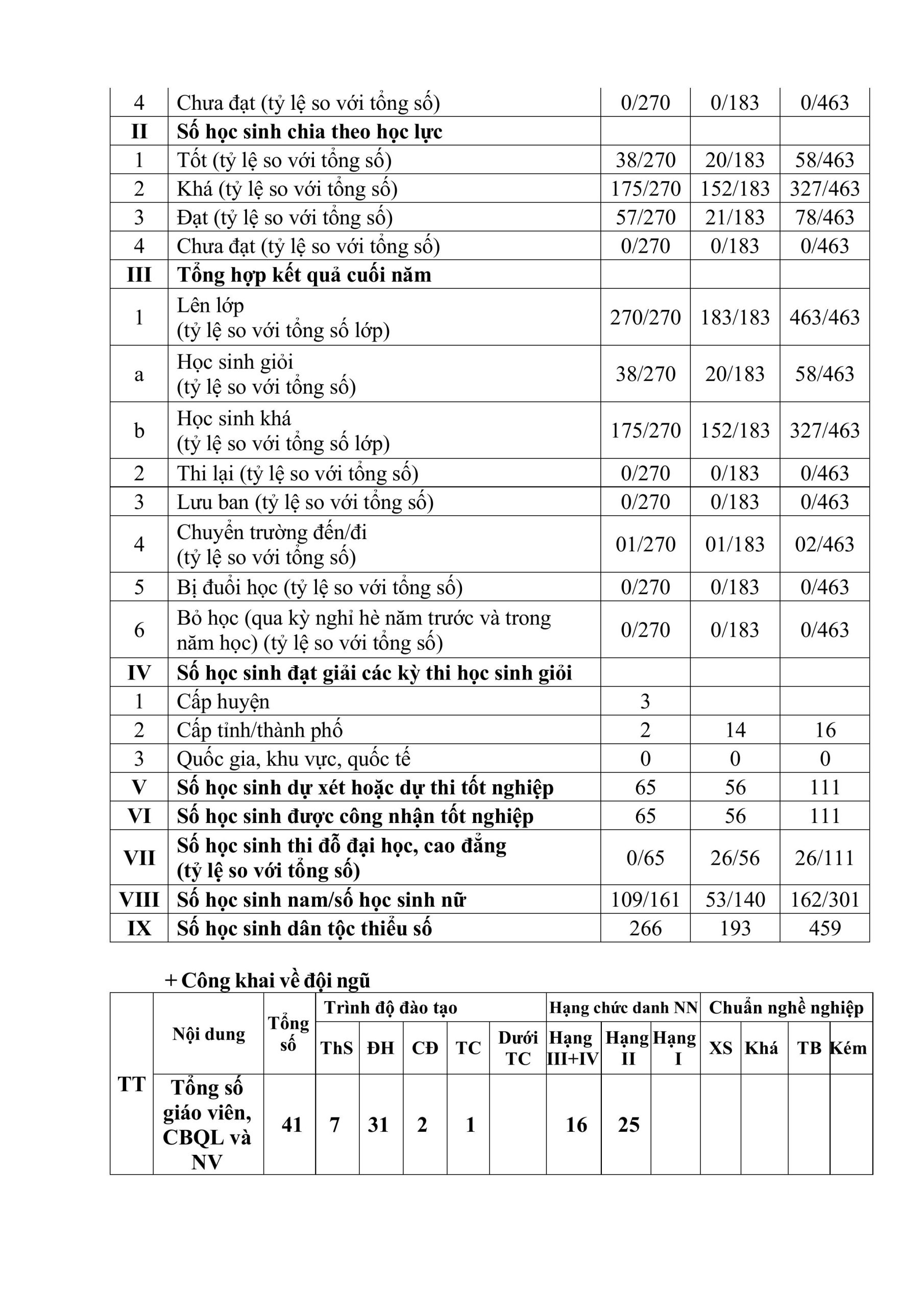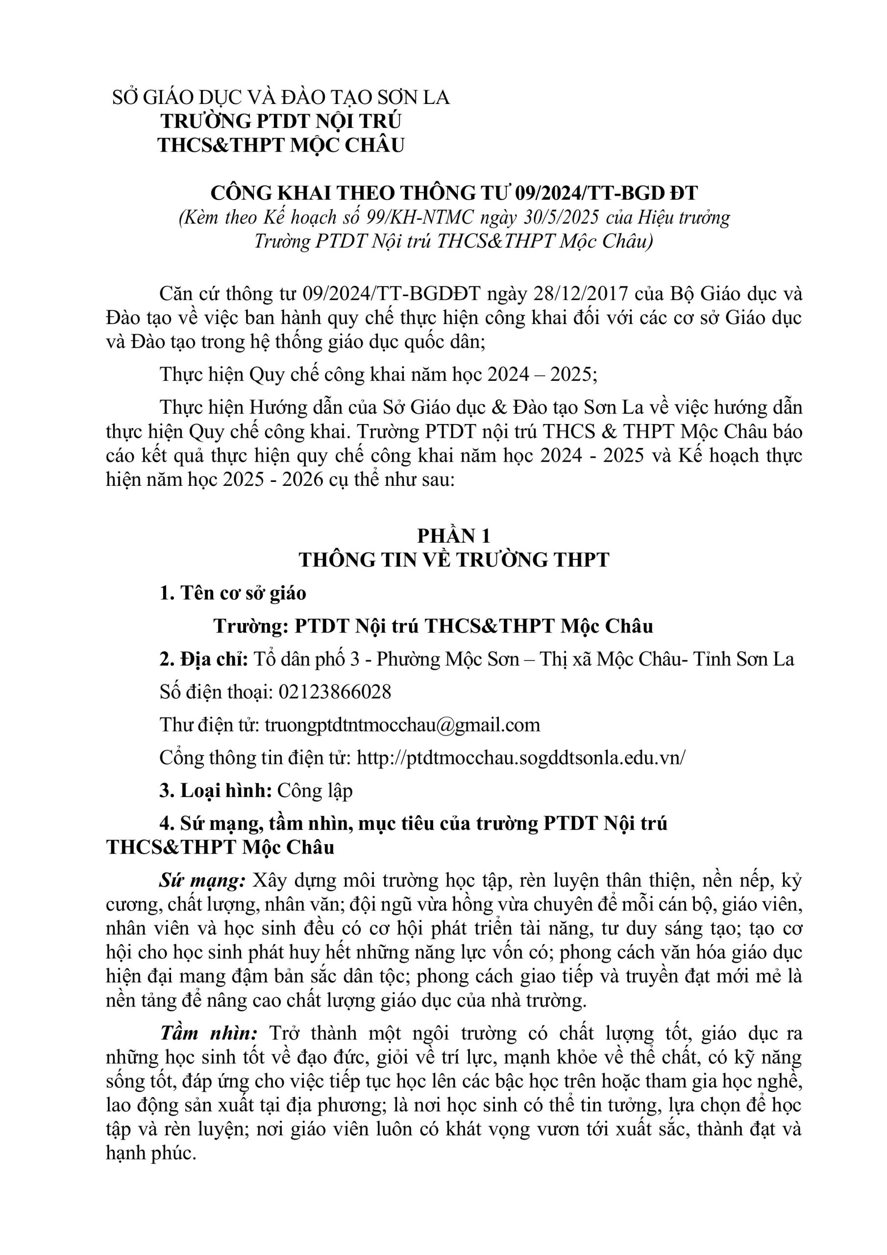 CÔNG KHAI THEO THÔNG TƯ 09/2024/TT-BGD ĐT