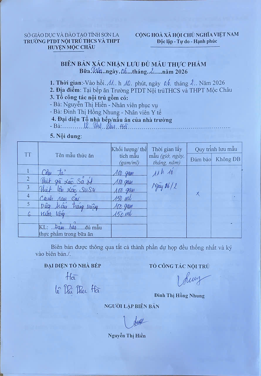 Hình ảnh và biên bản bữa sáng,trưa ngày 11/1/2026