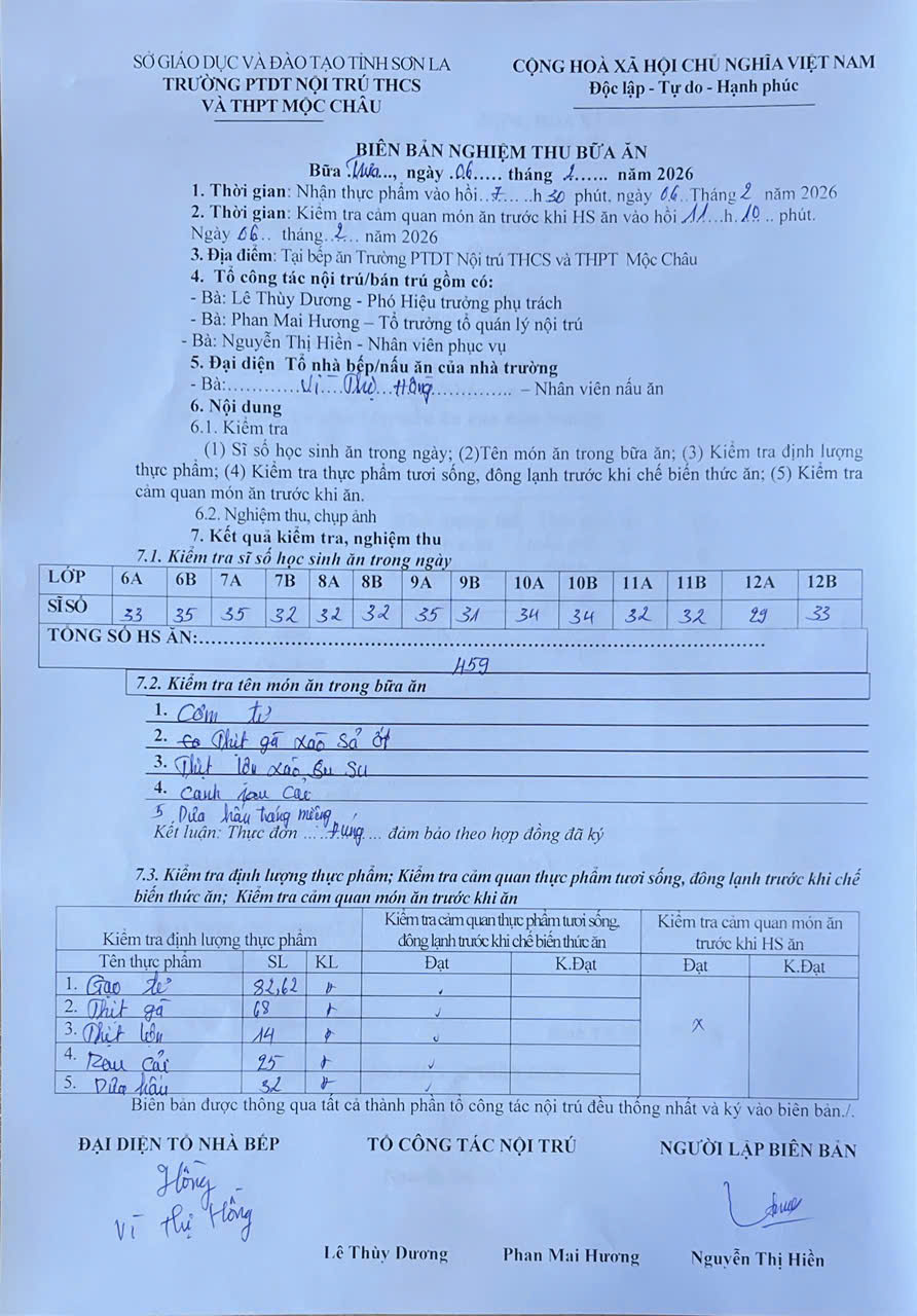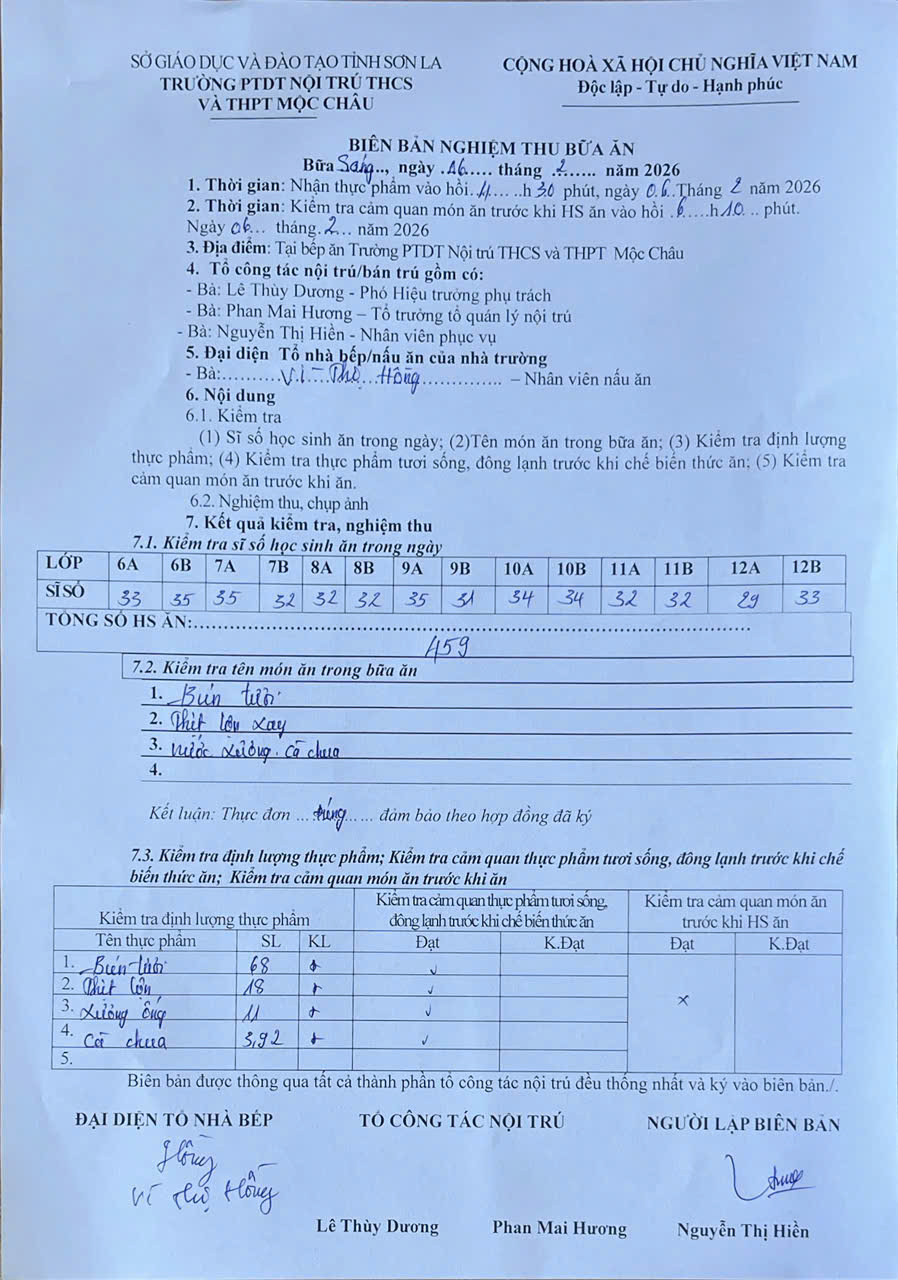 Hình ảnh và biên bản bữa ăn sáng ,trưa 6/1/2025