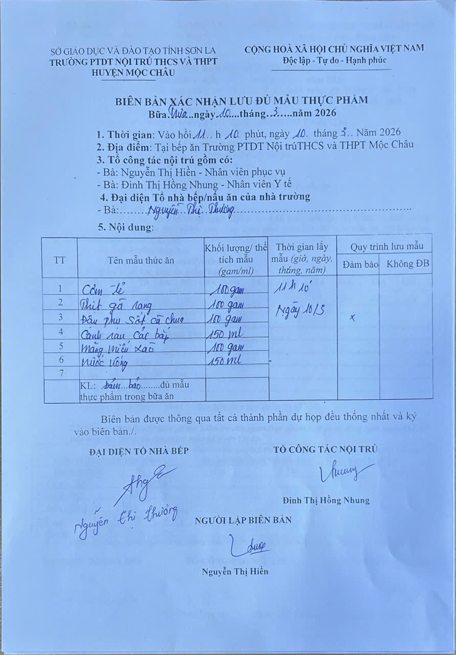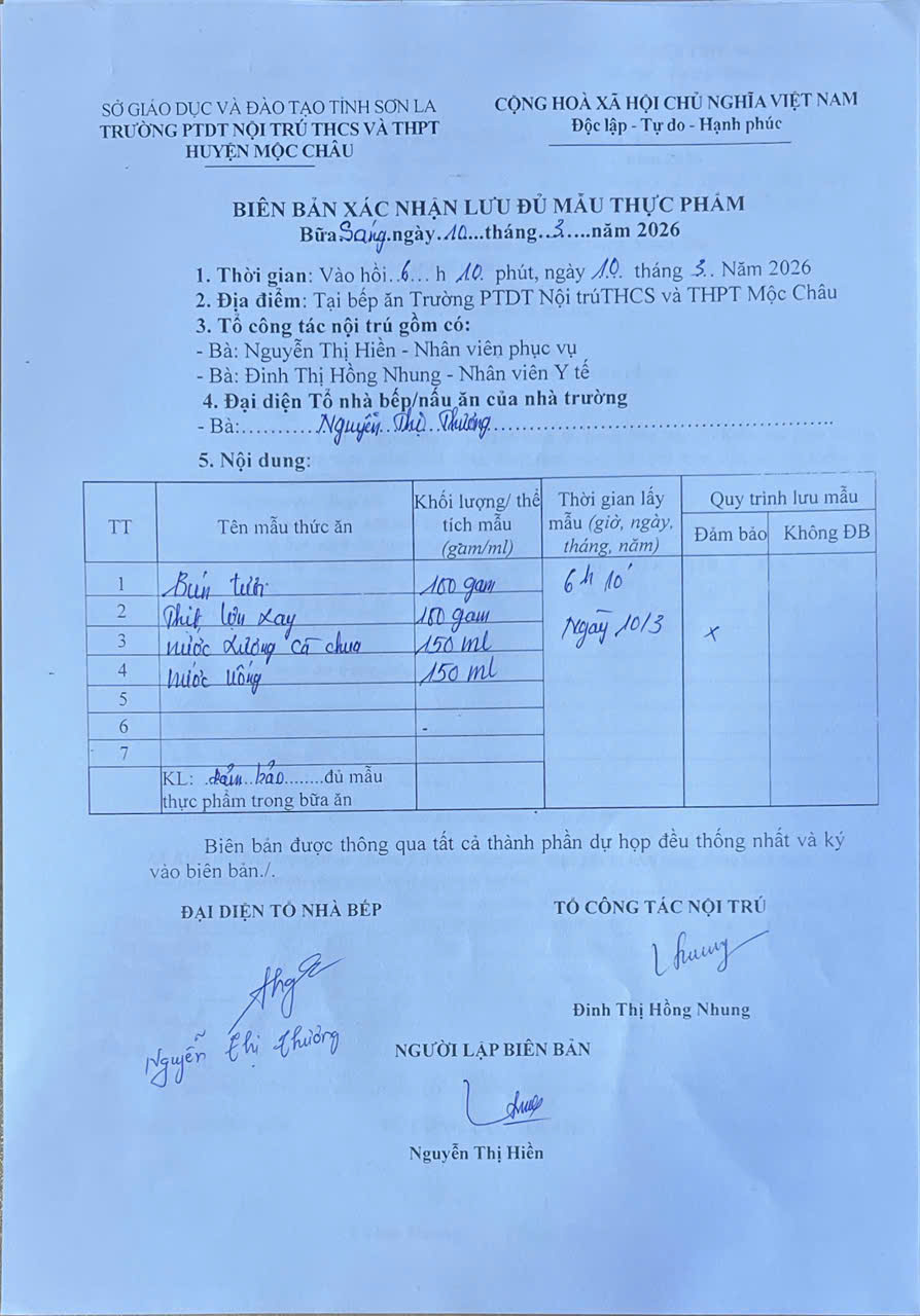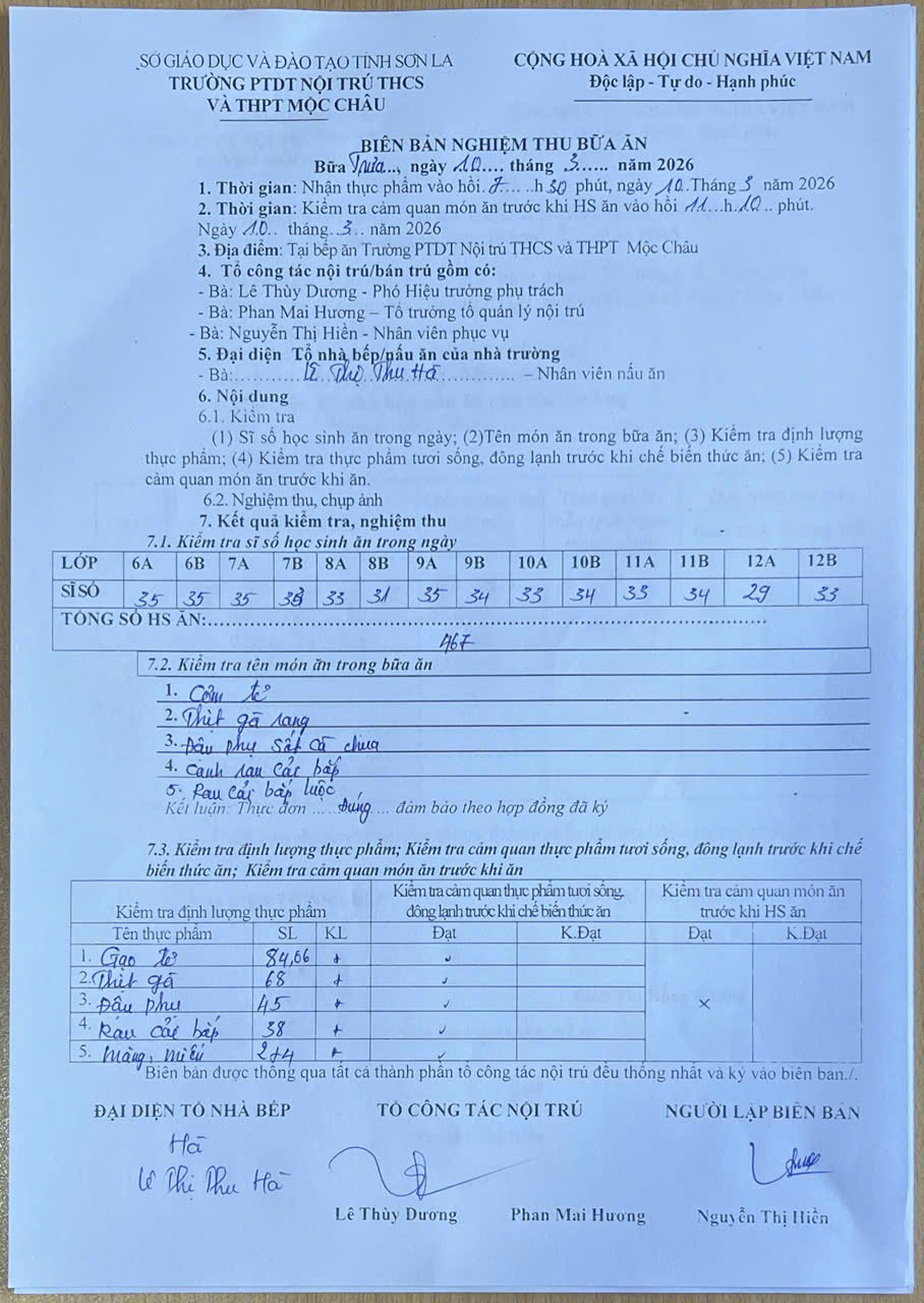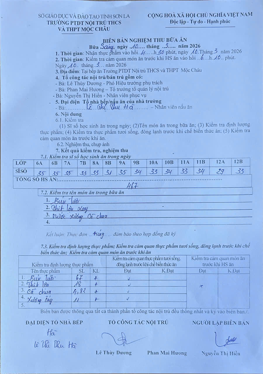 Hình ảnh và biên bản bữa sáng,trưa ngày 10/03/2025
