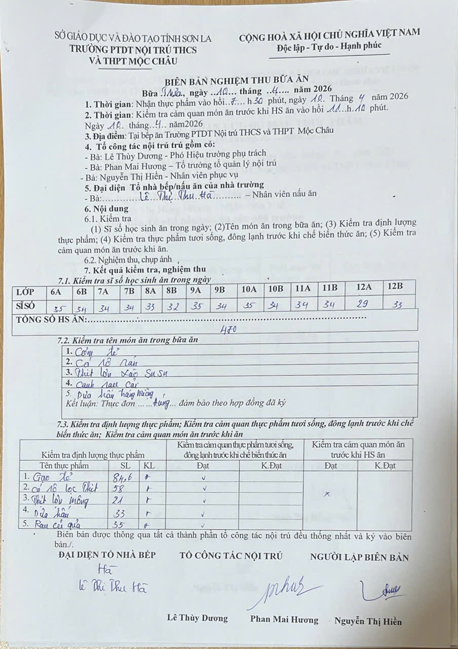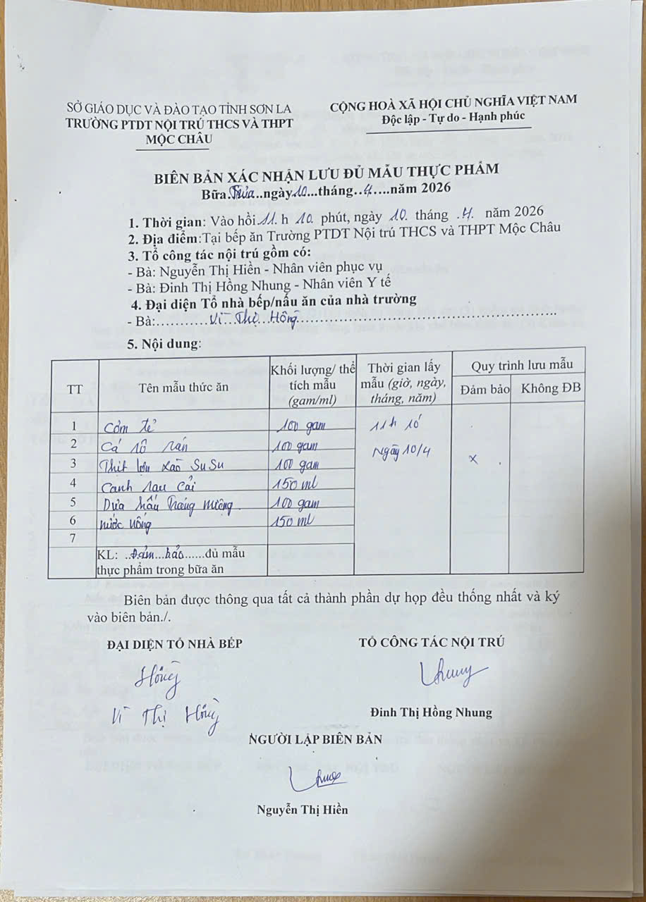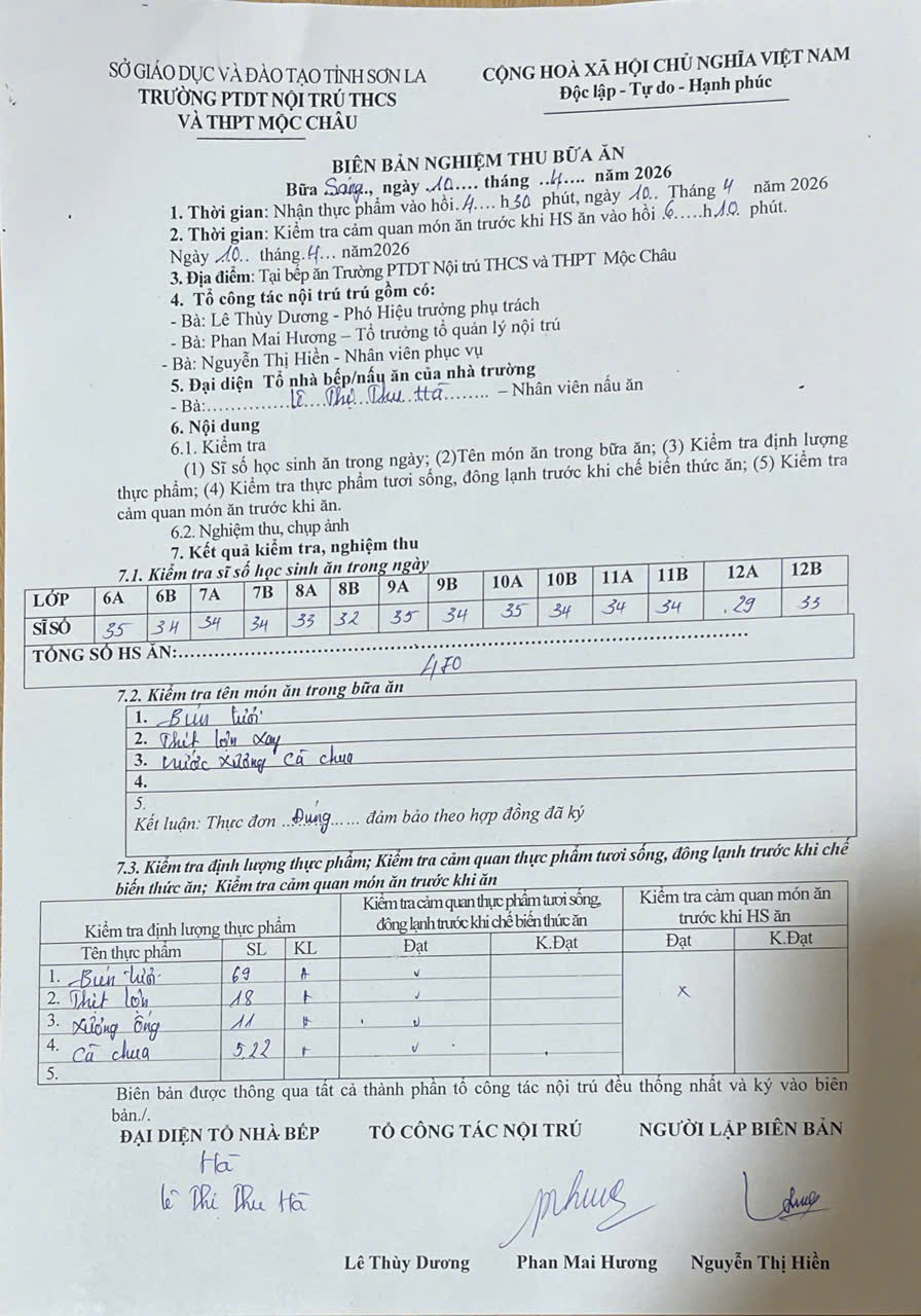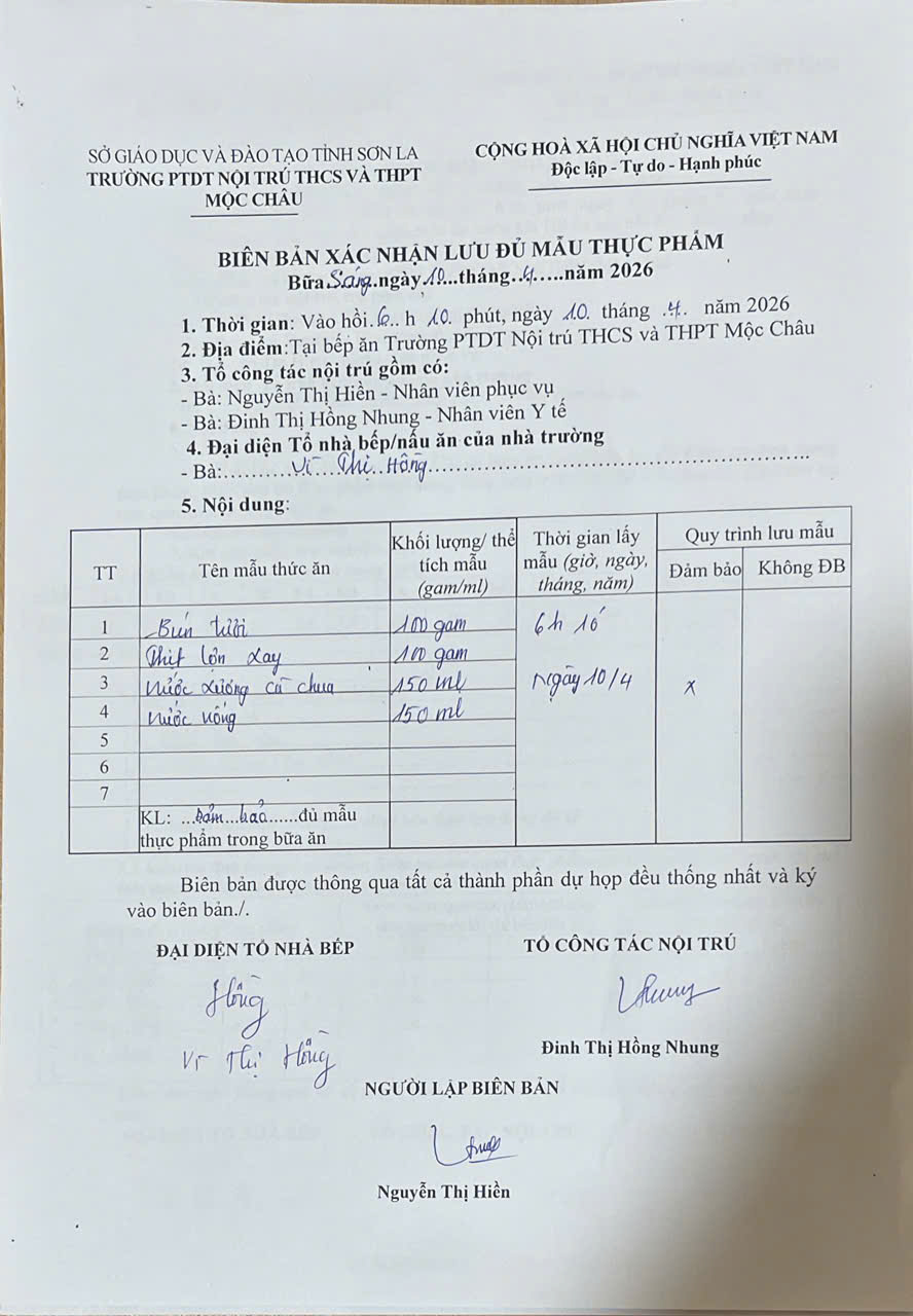 Hình ảnh và biên bản bữa ăn sáng,trưa ngày 10/4/2026