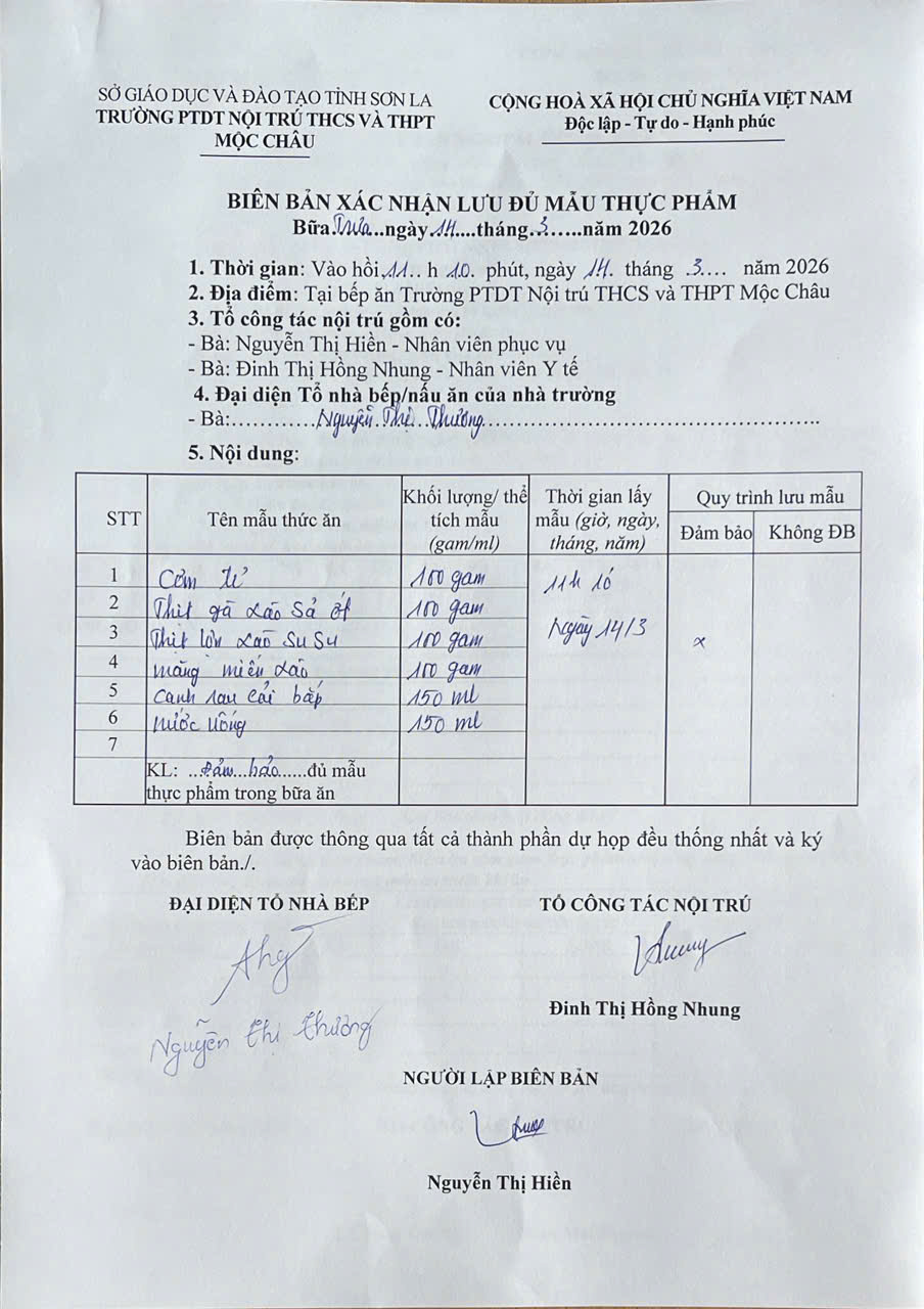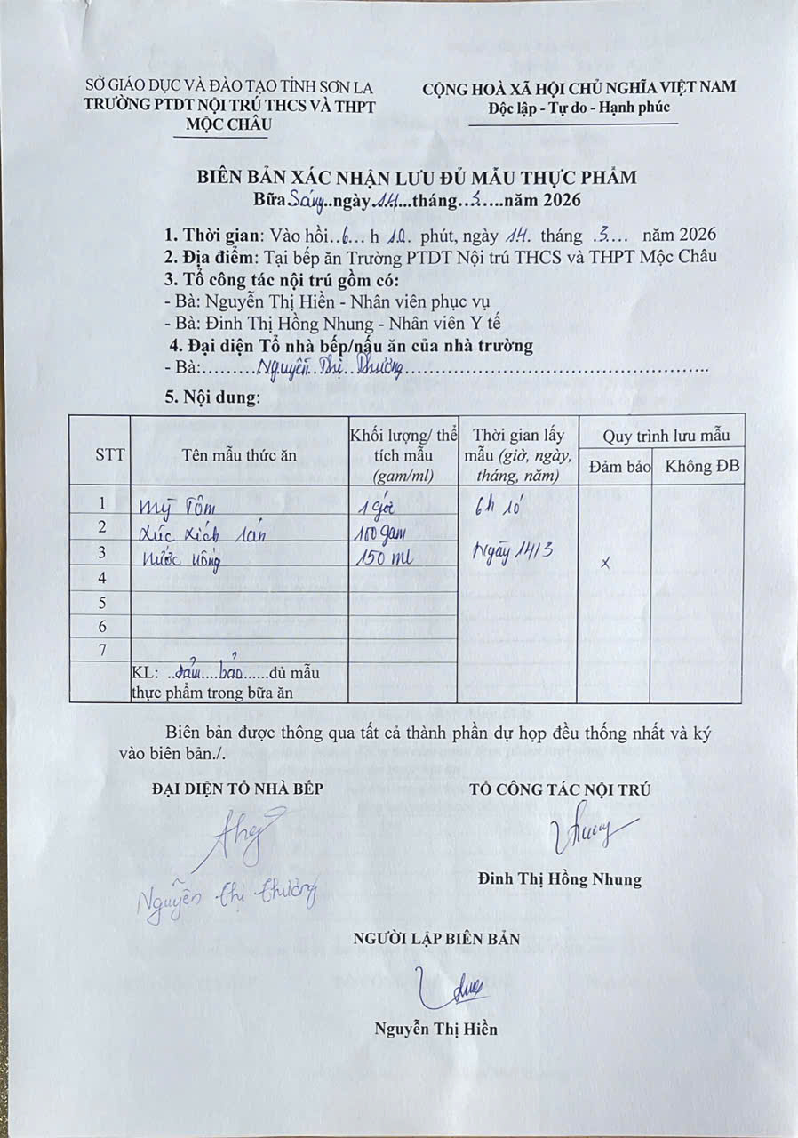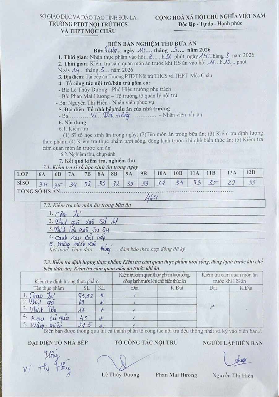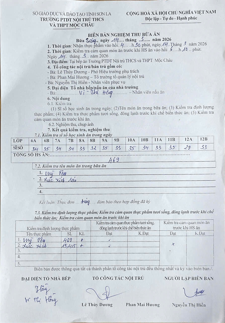 Hình ảnh và biên bản bữa ăn sáng,trưa ngày 14/3/2026