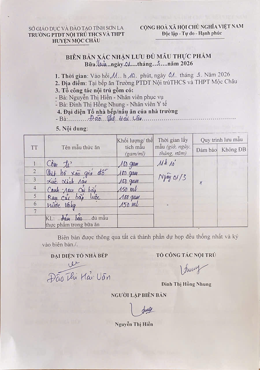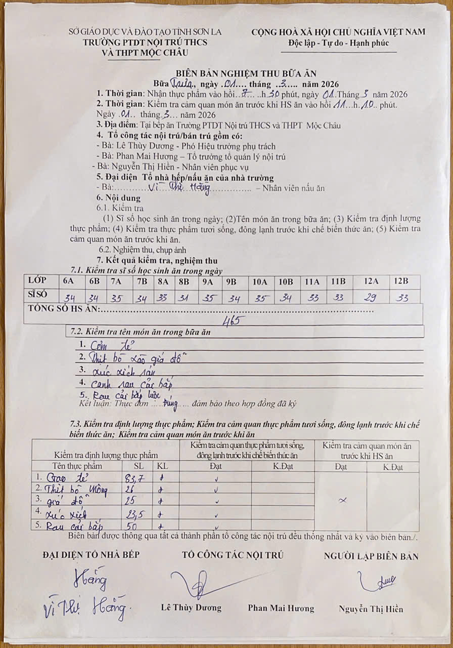 Hình ảnh và biên bản bữa ăn ngày 2/3/2026