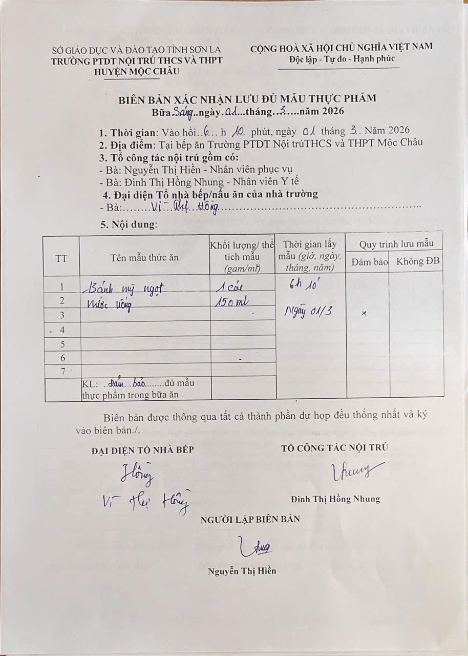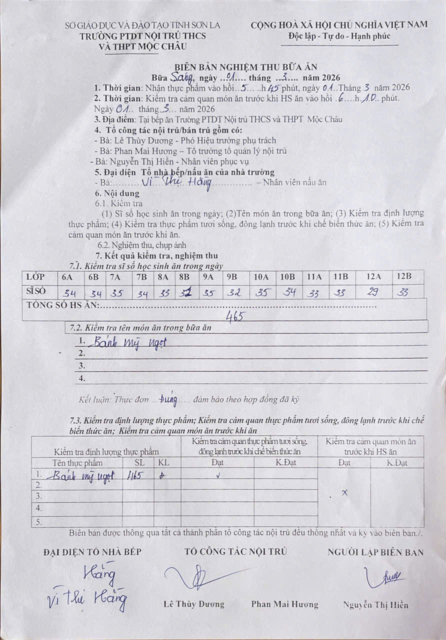 Hình ảnh và biên bản bữa sáng,trưa ngày 29/3/2026