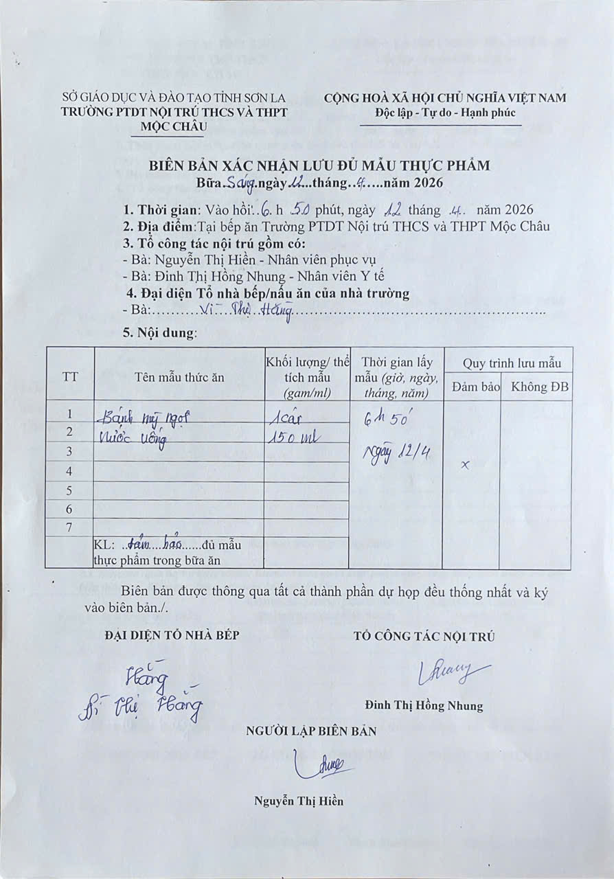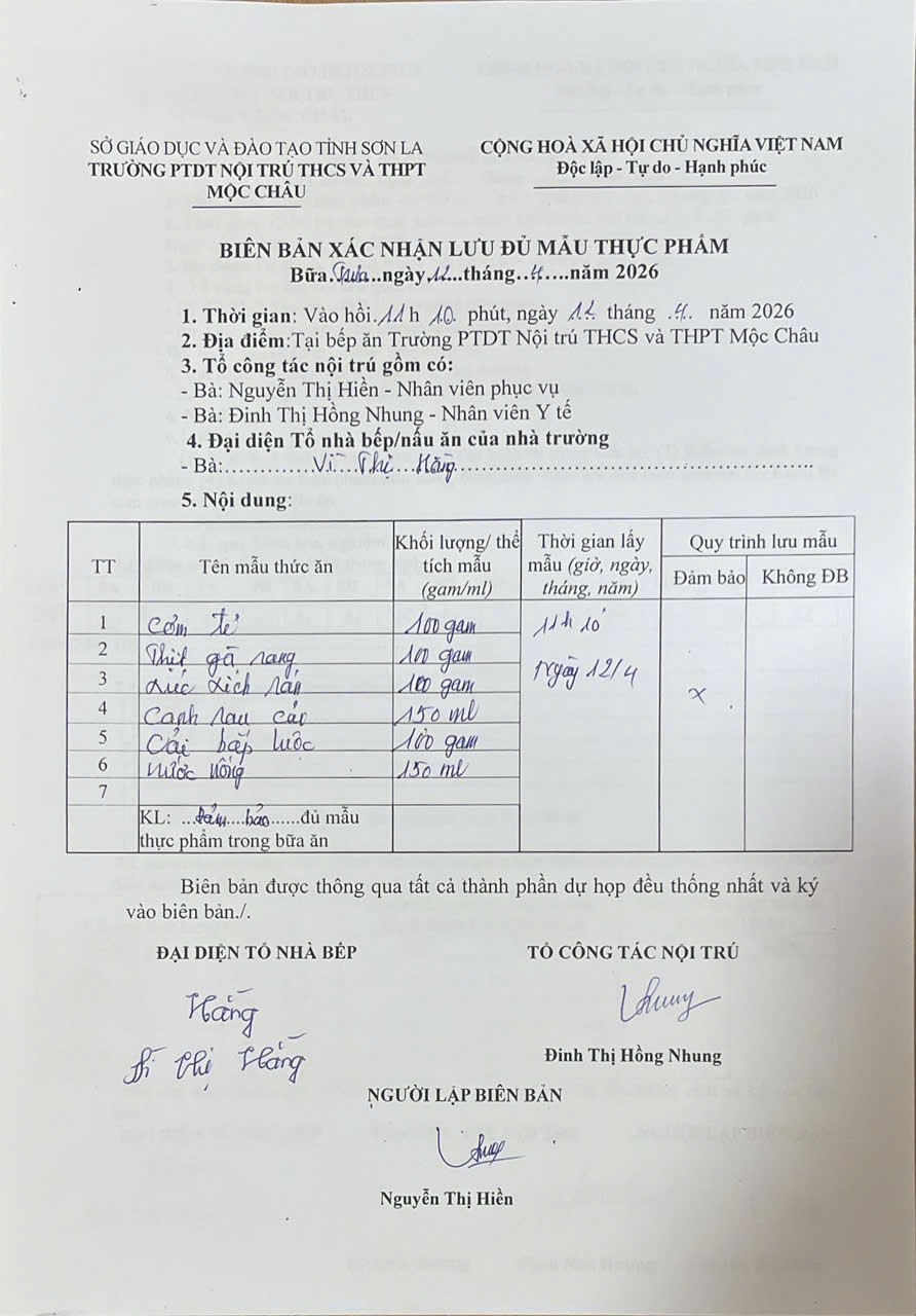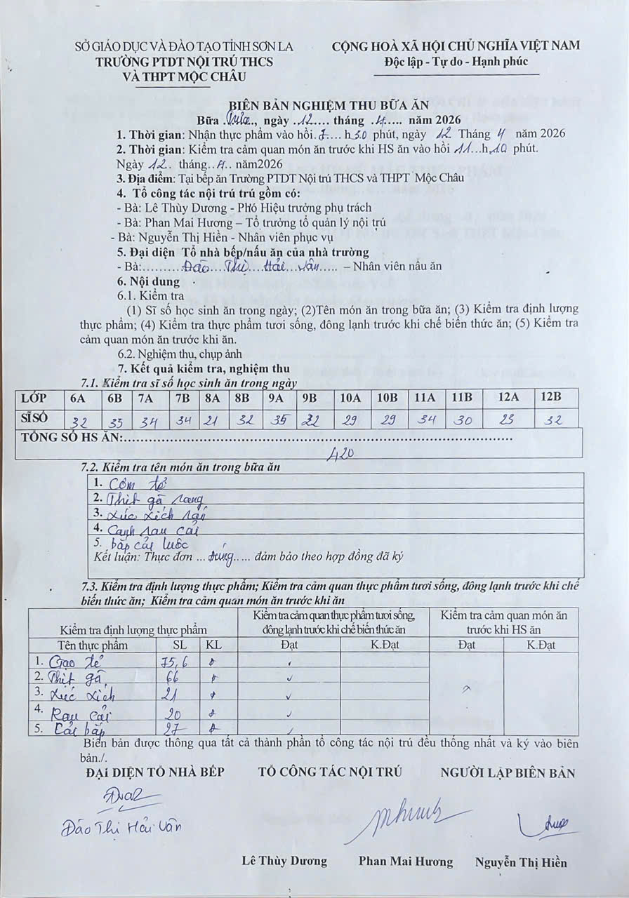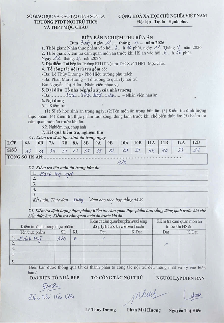 Hình ảnh và biên bản bữa ăn sáng,trưa ngày 12/4/2026