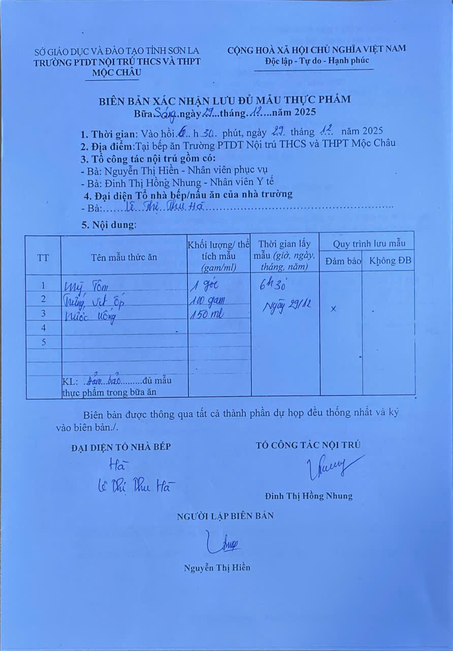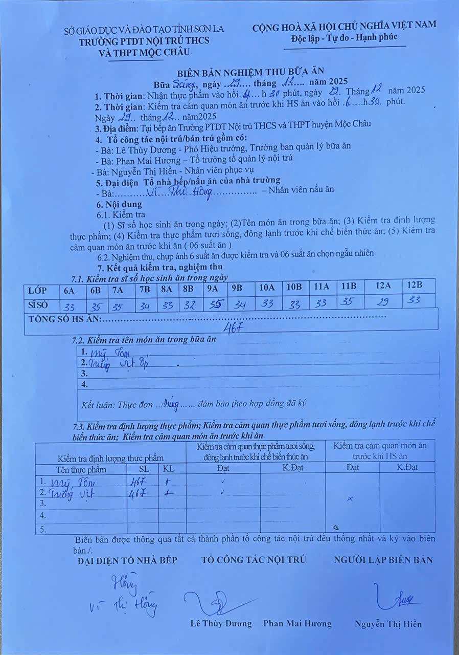 Hình ảnh và biên bản bữa sáng,trưa ngày 21/12/2025