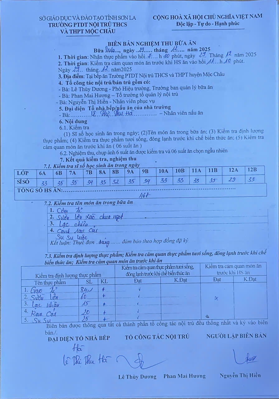 Hình ảnh và biên bản bữa ăn sáng,trưa ngày 29/12/2025