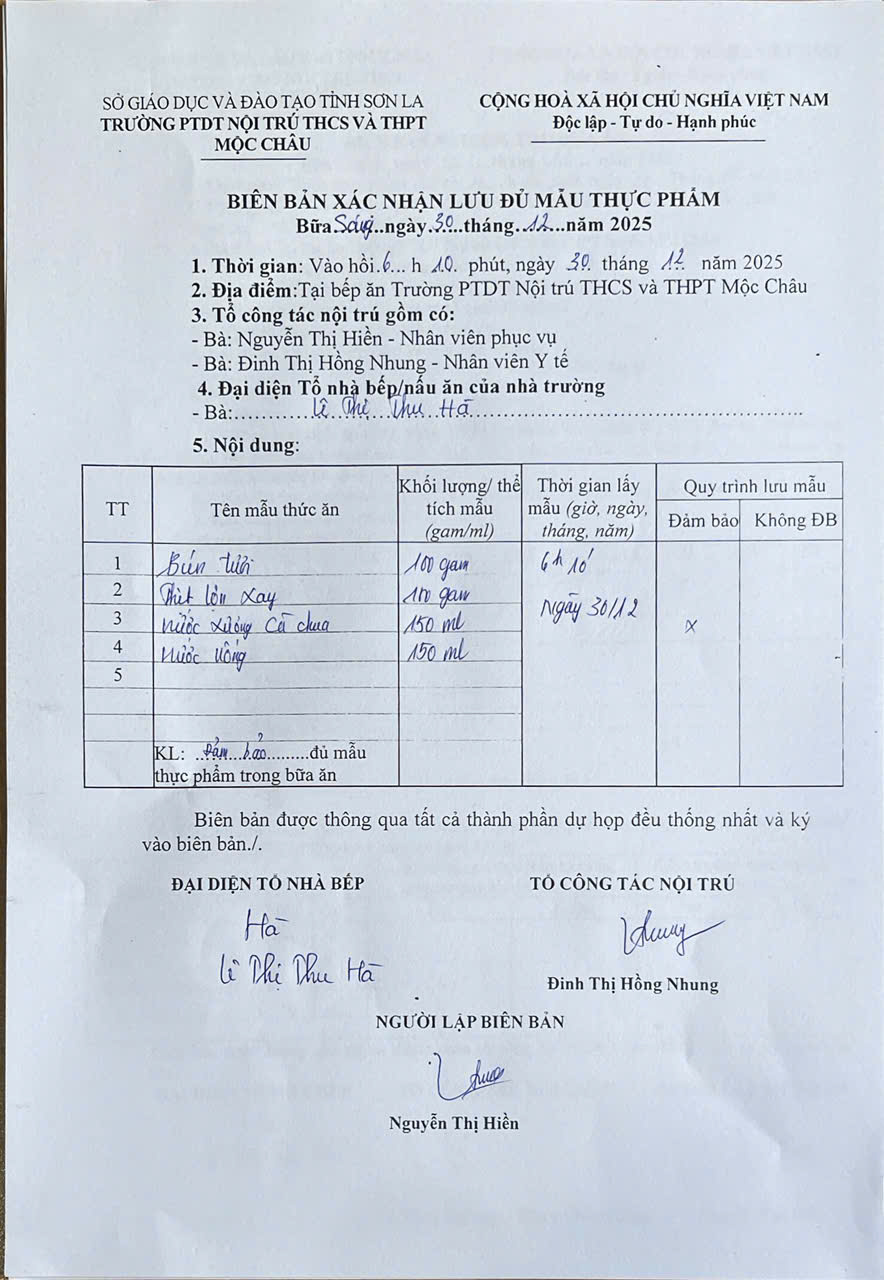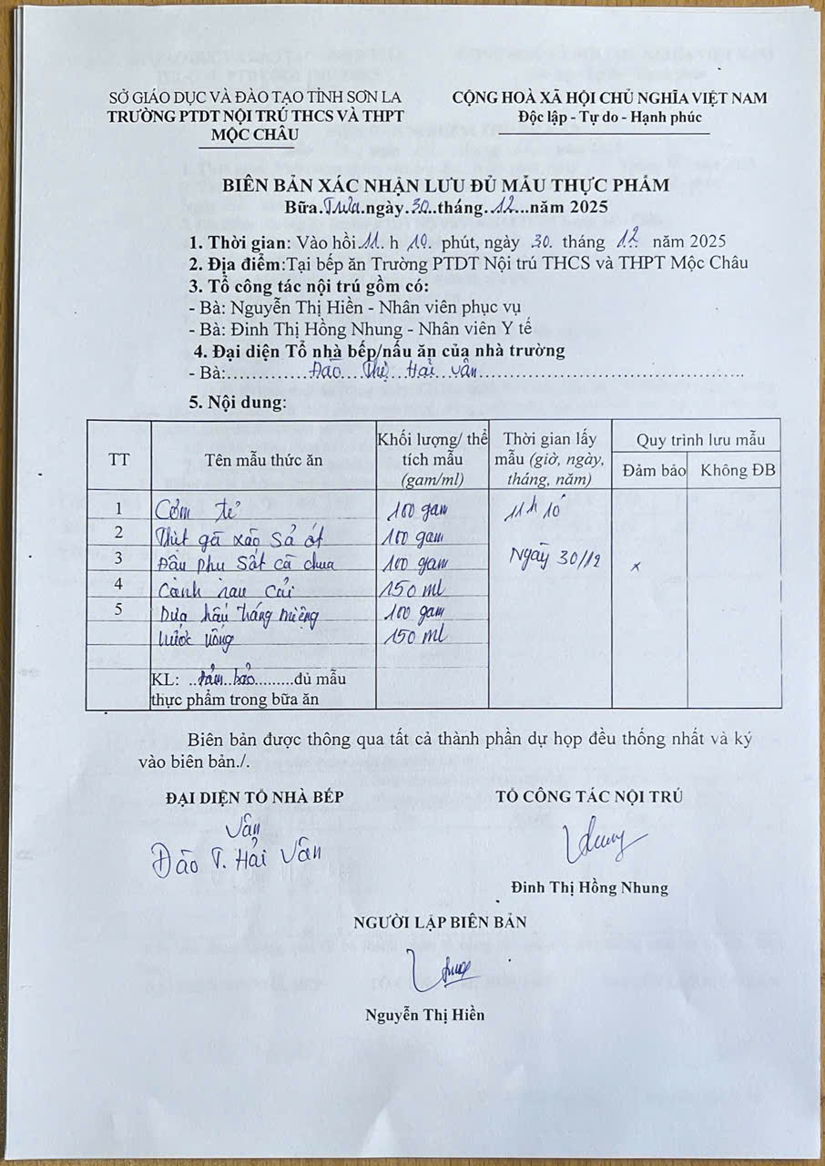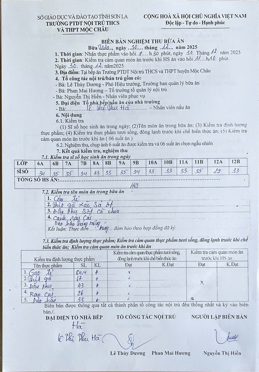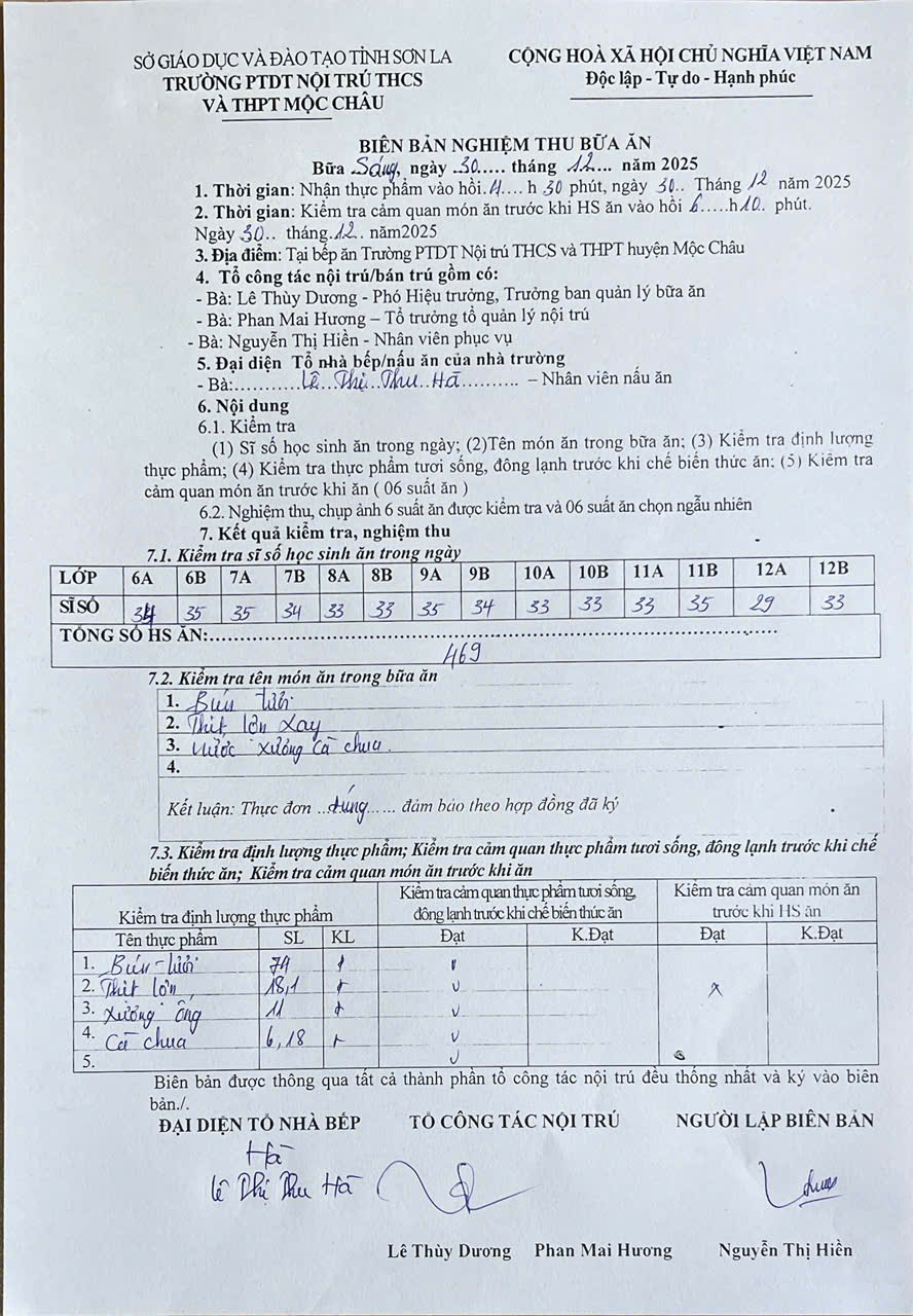Hình ảnh và biên bản bữa ăn sáng,trưa ngày 30/12/2025