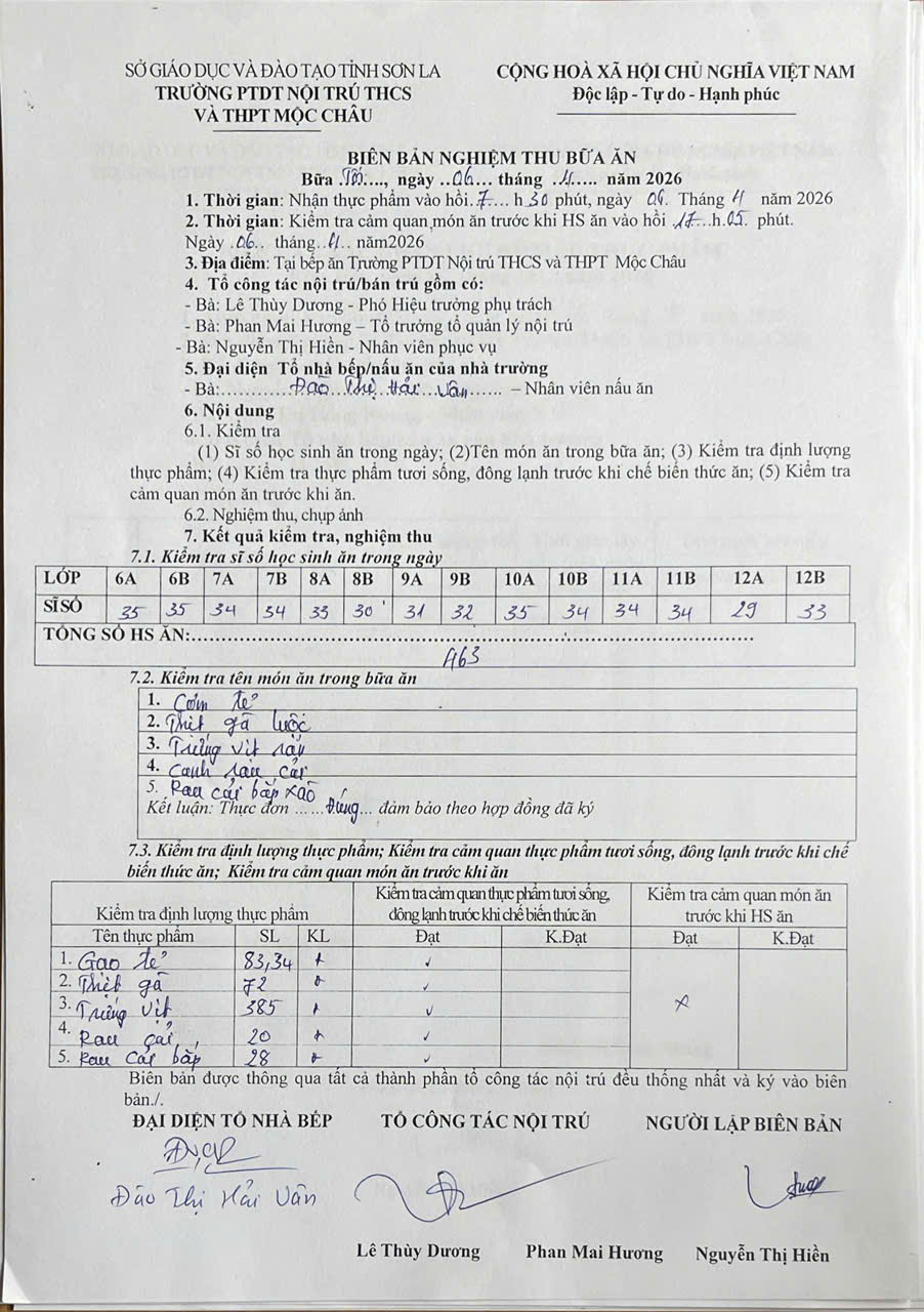 Hình ảnh và biên bản bữa sáng,trưa ngày 30/1/2026