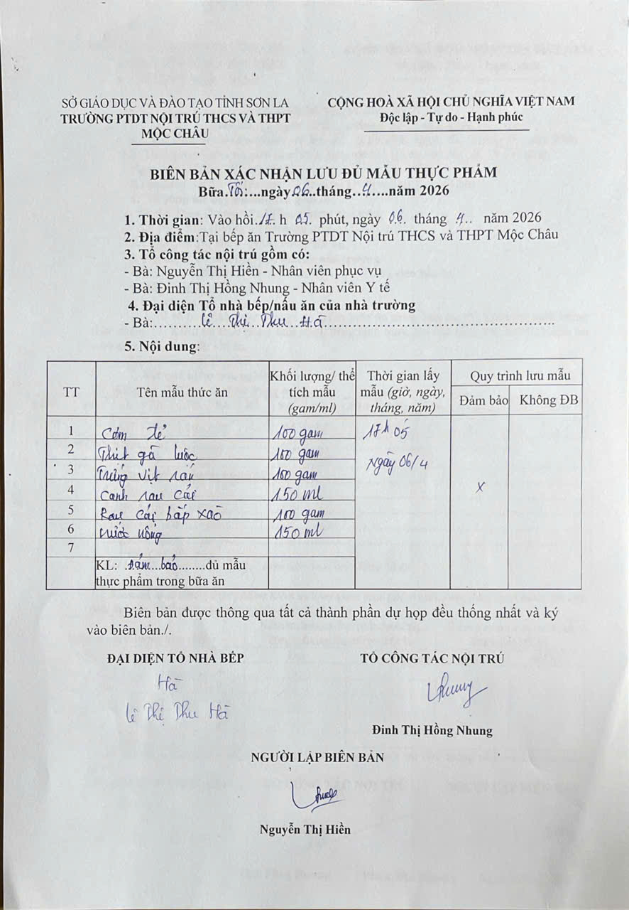 Hình ảnh và biên bản bữa sáng, trưa 07/04/2026
