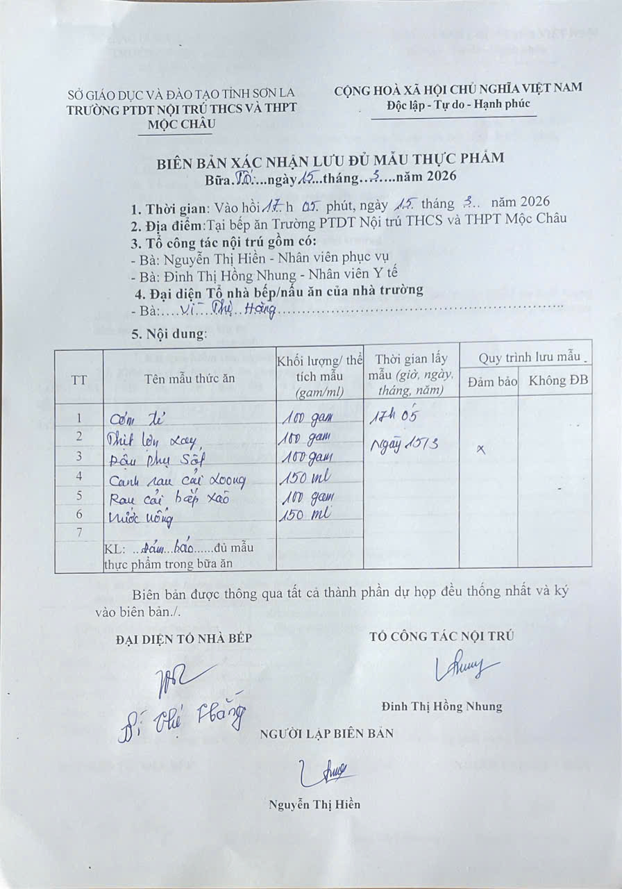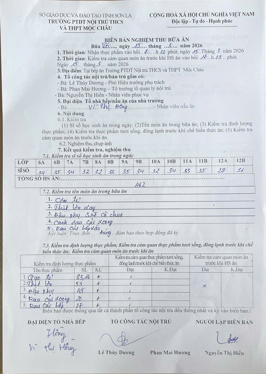 Hình ảnh và biên bản bữa ăn sáng,trưa ngày 15/3/2026