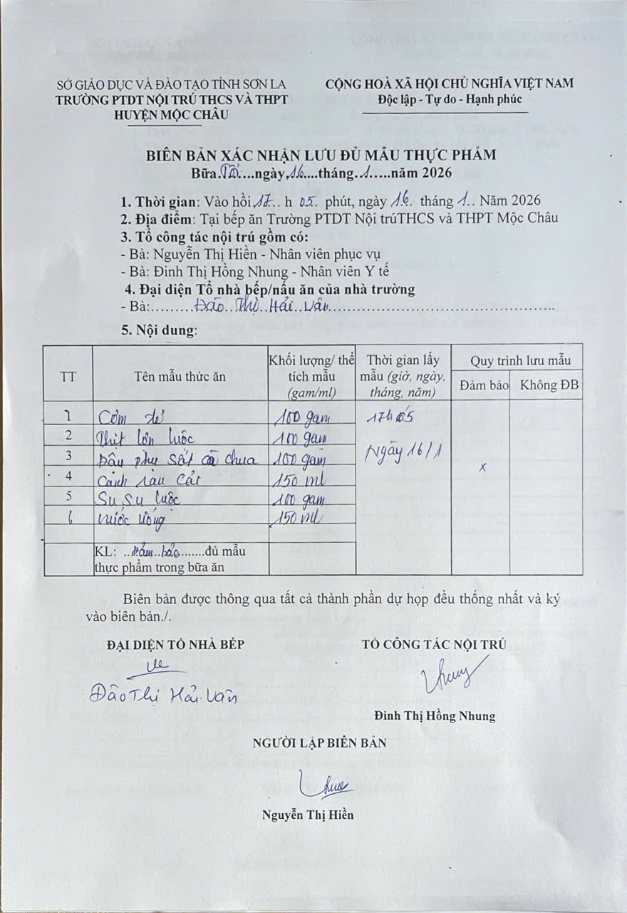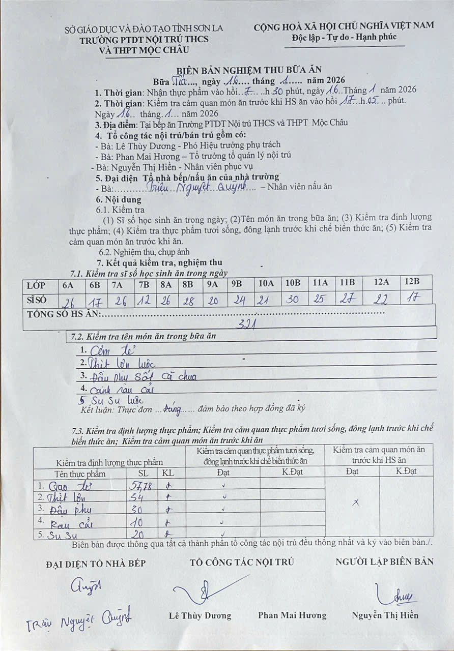 Hình ảnh và biên bản bữa ăn sáng,trưa ngày 16/1/2026
