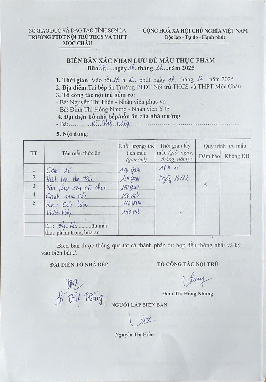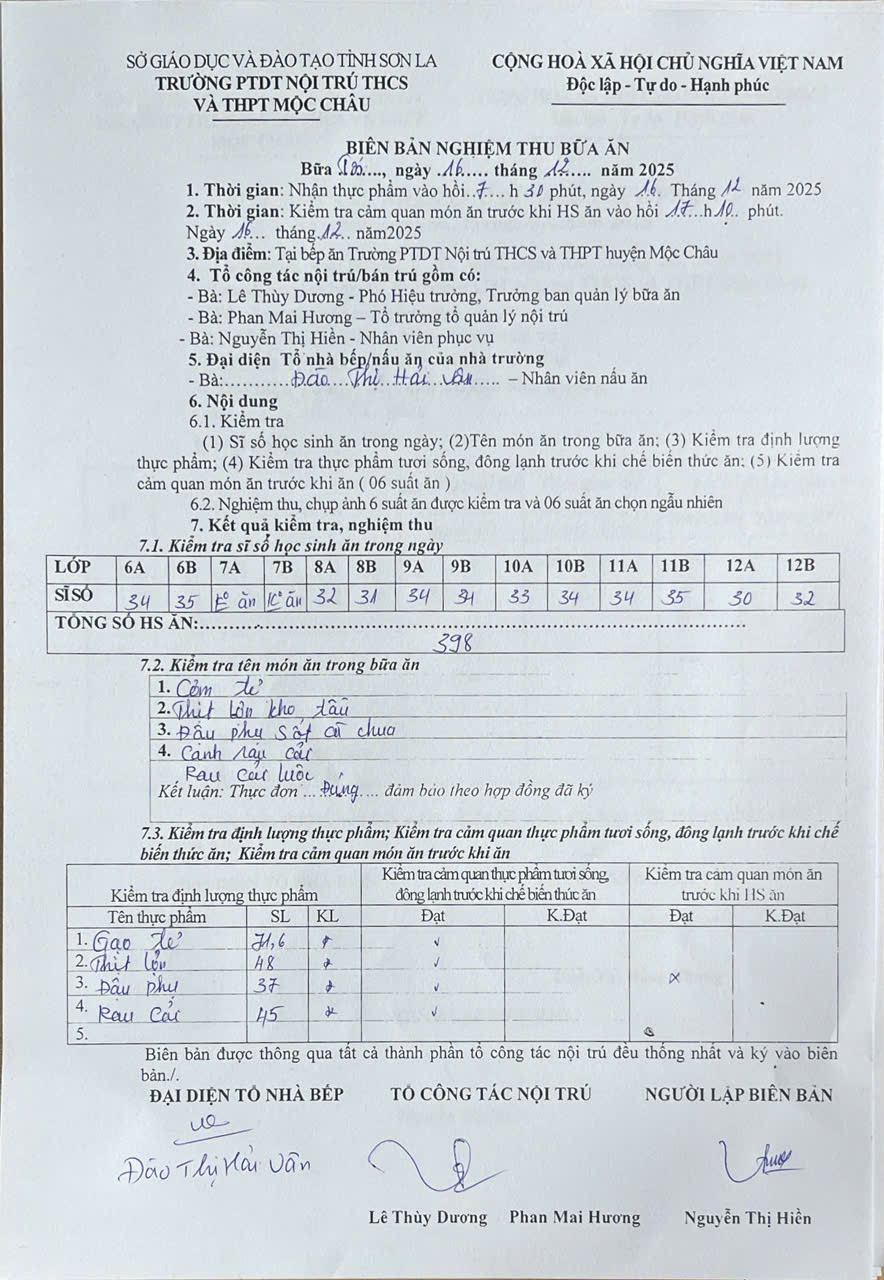 Hình ảnh và biên bản bữa ăn sáng,trưa ngày 16/12/2025