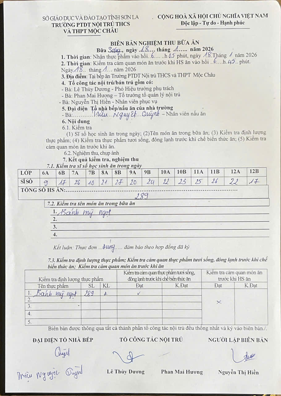 Hình ảnh và biên bản bữa sáng,trưa ngày 18/01/2026