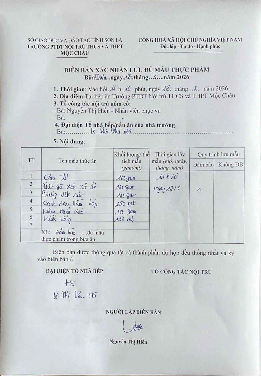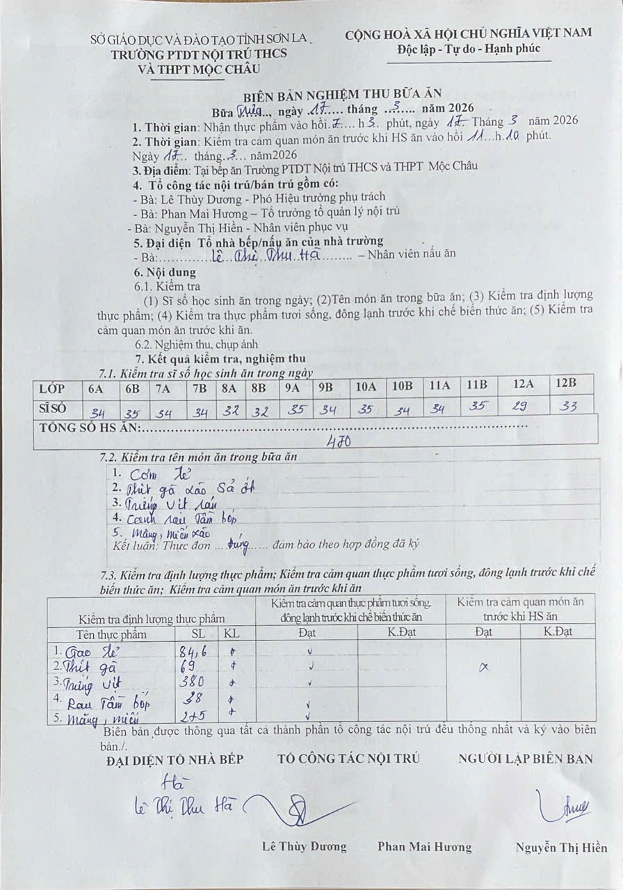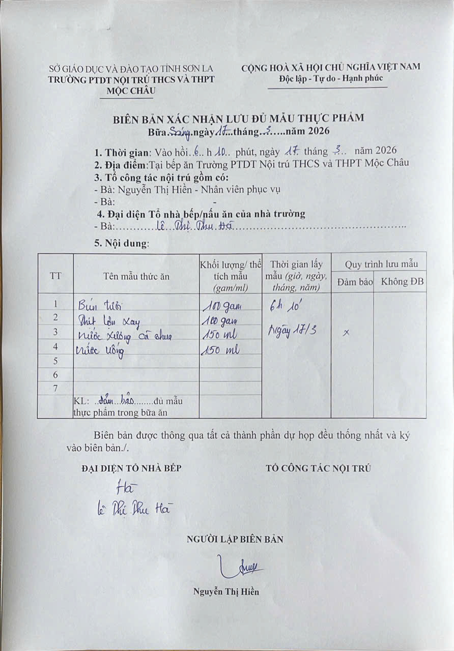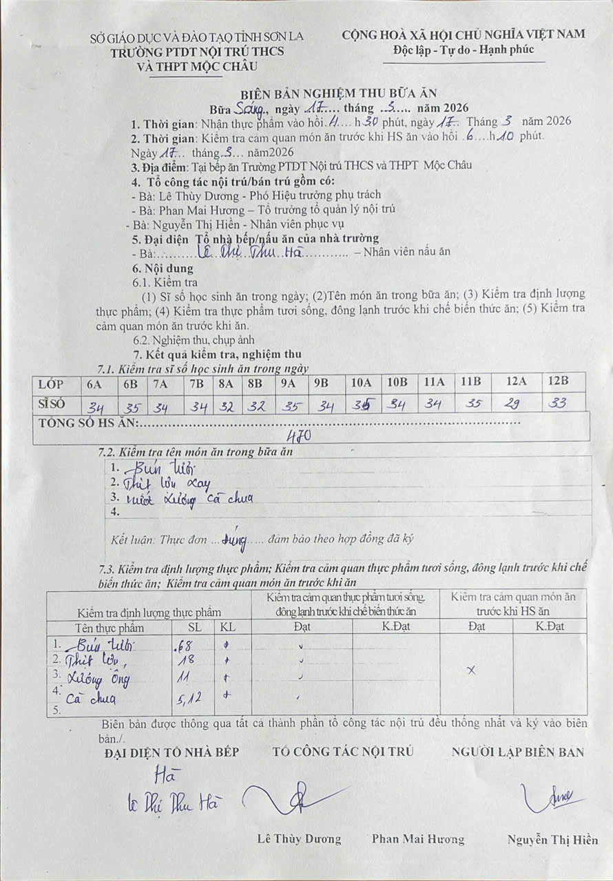 Hình ảnh và biên bản bữa sáng ,trưa ngày 17/3/2026