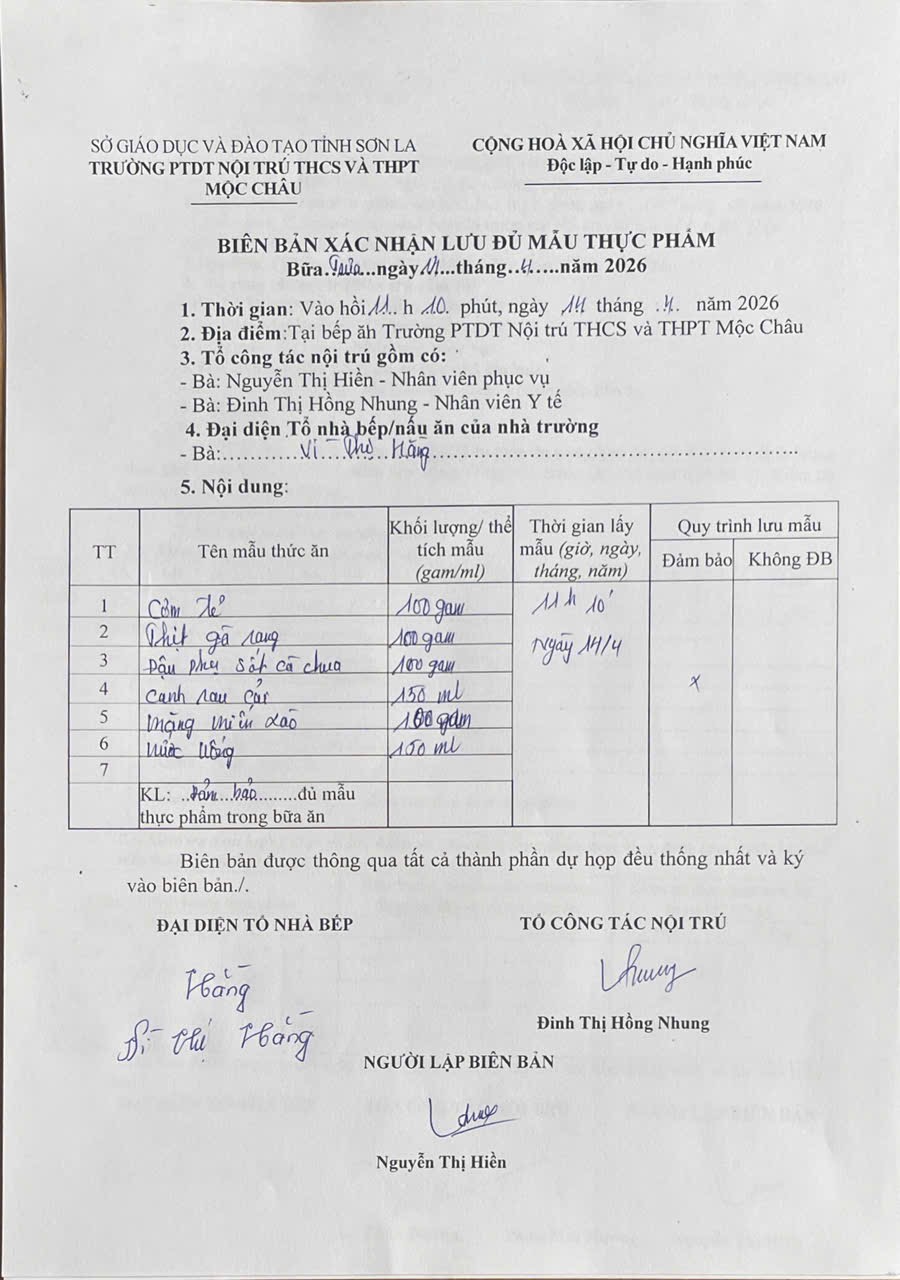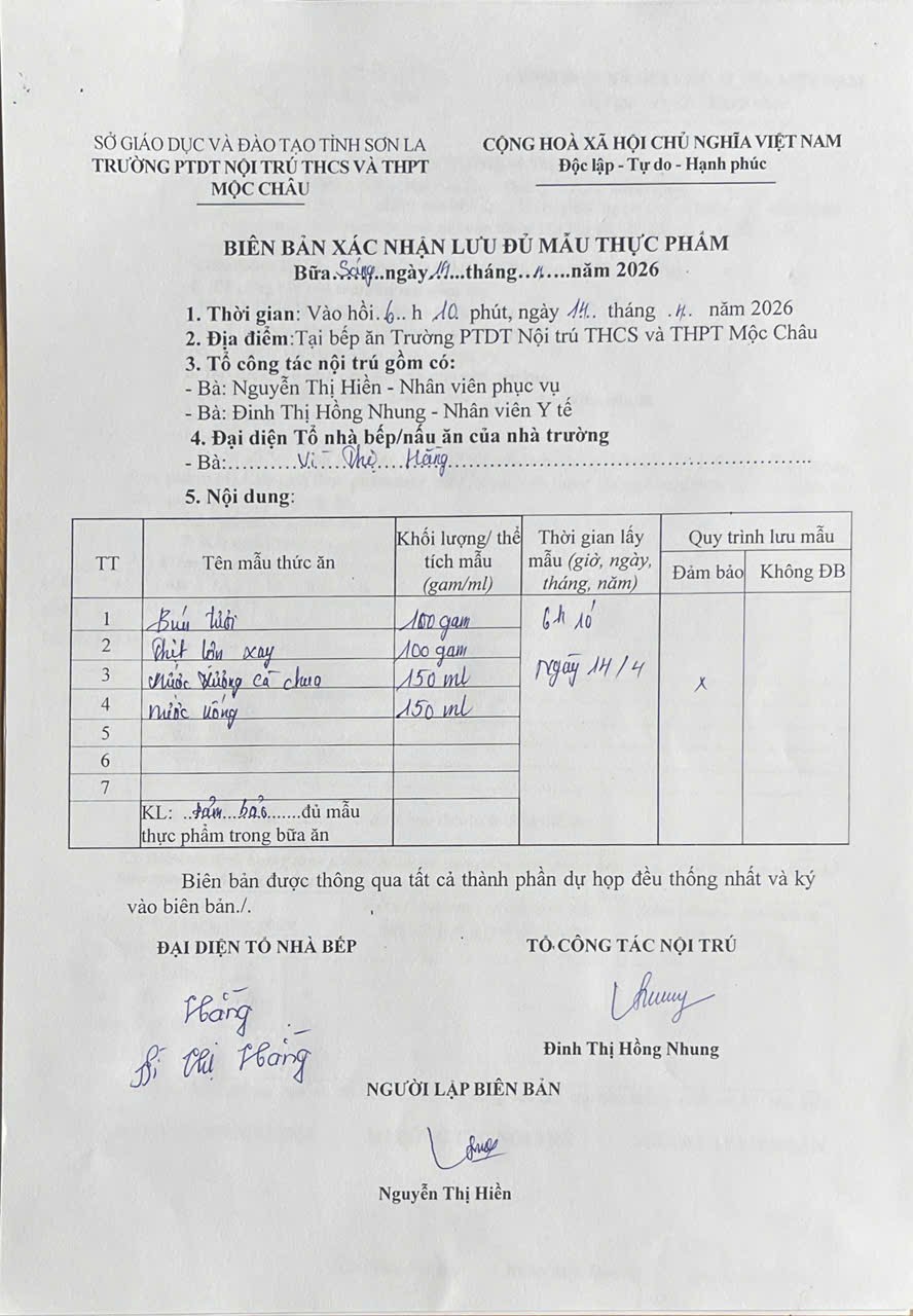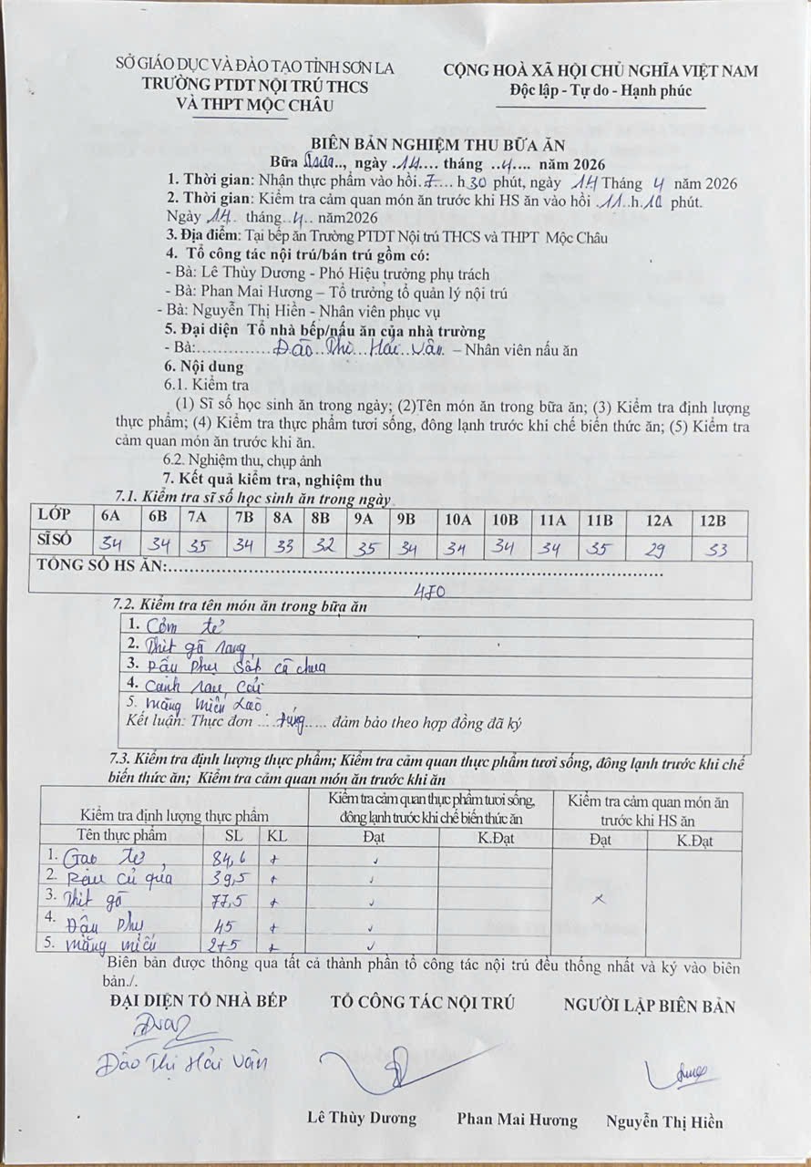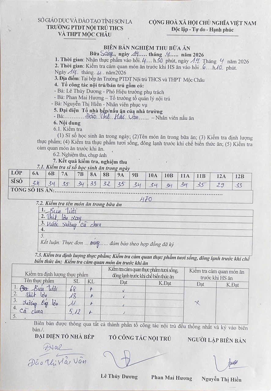 Hình ảnh và biên bản bữa sáng,trưa ngày 14/04/2026