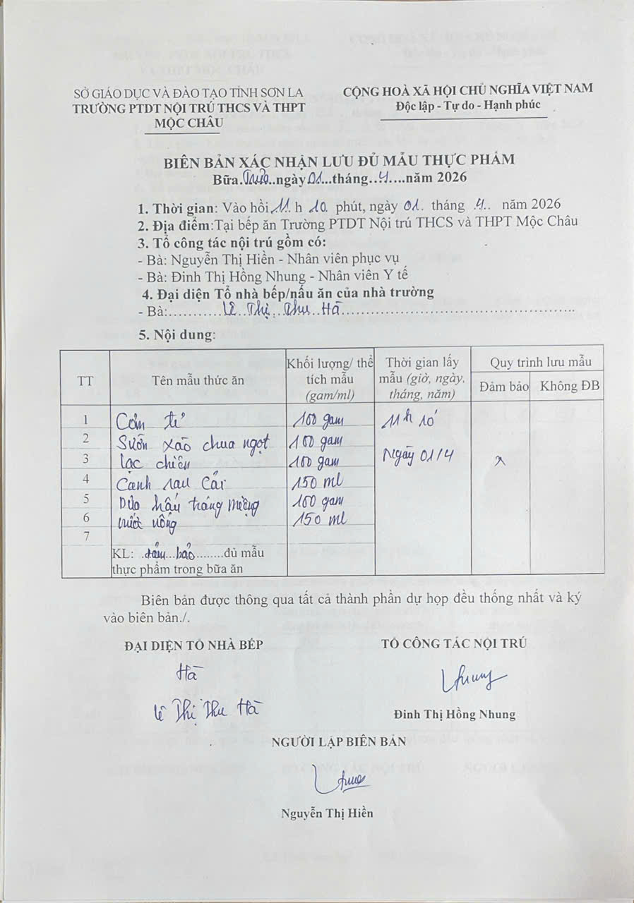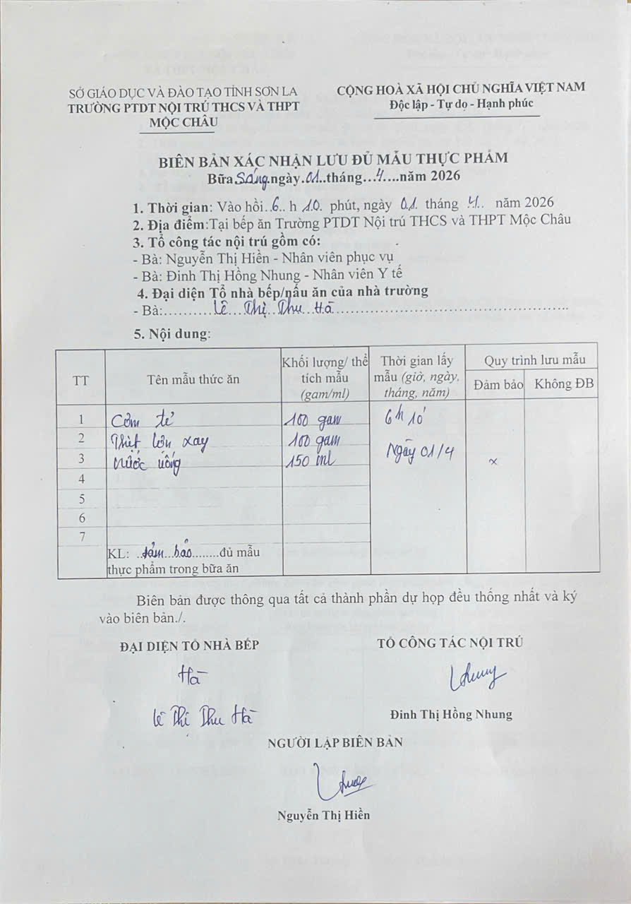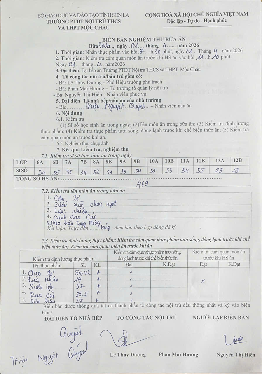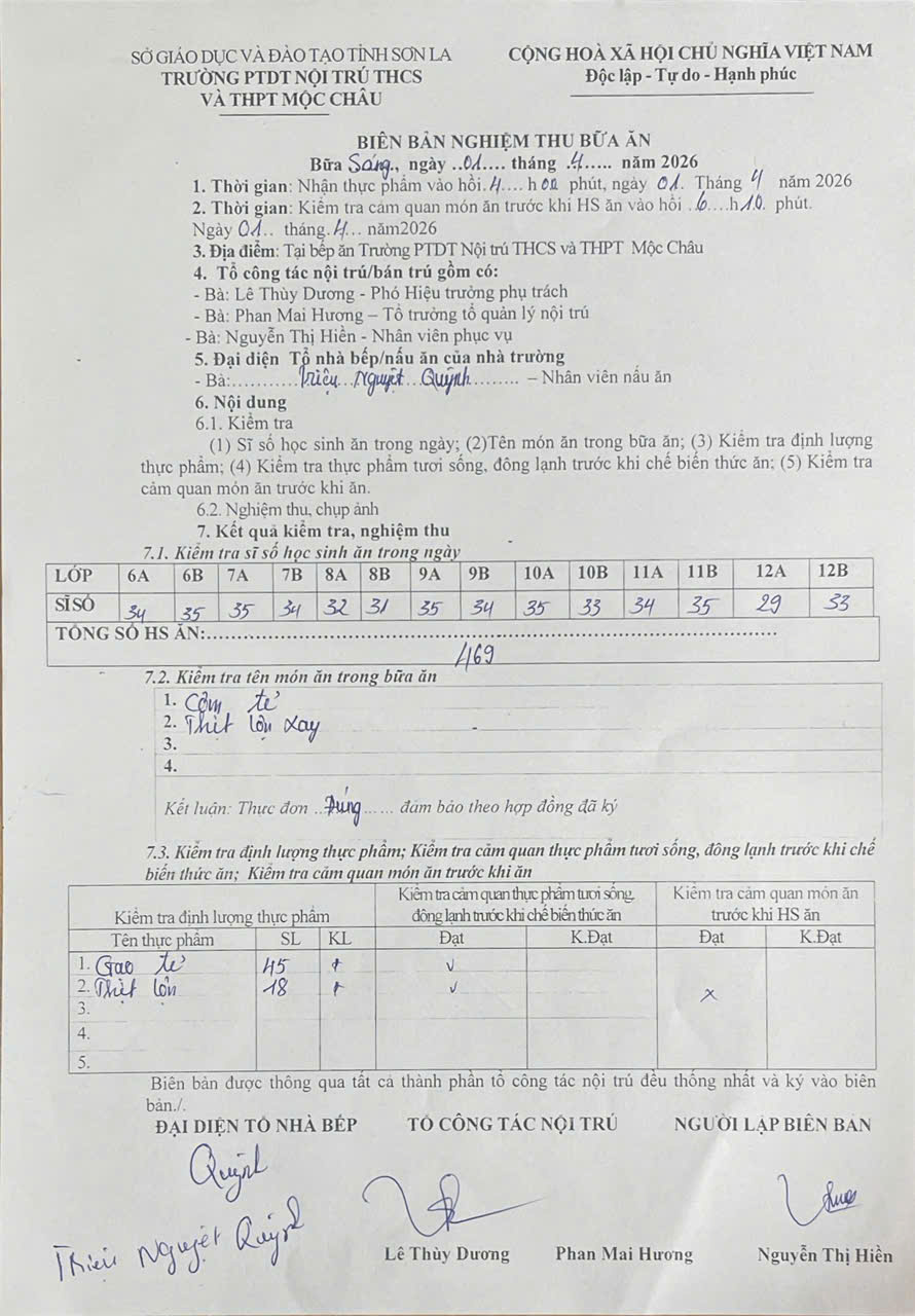 Hình ảnh và biên bản bữa sáng,trưa ngày 1/4/2026