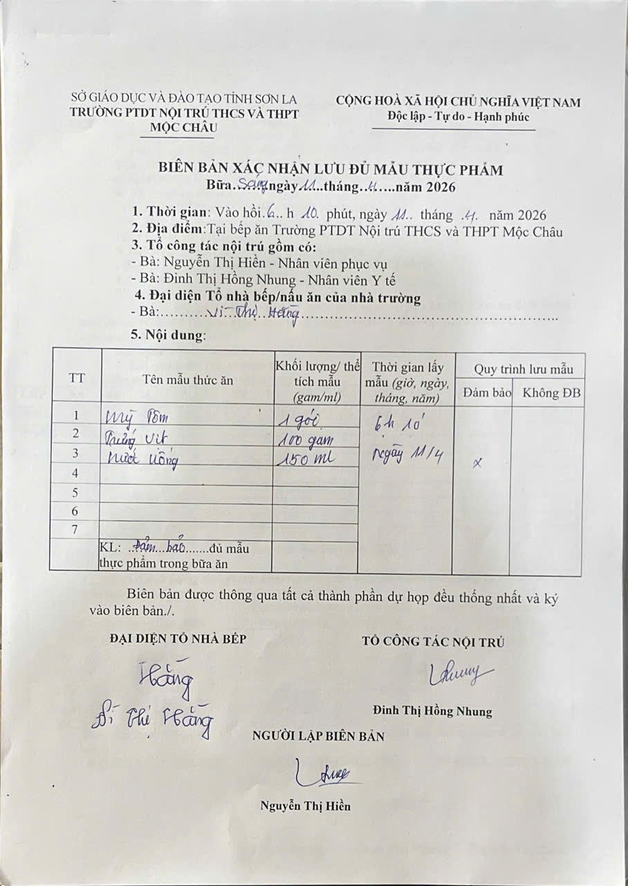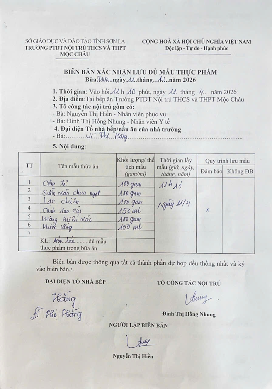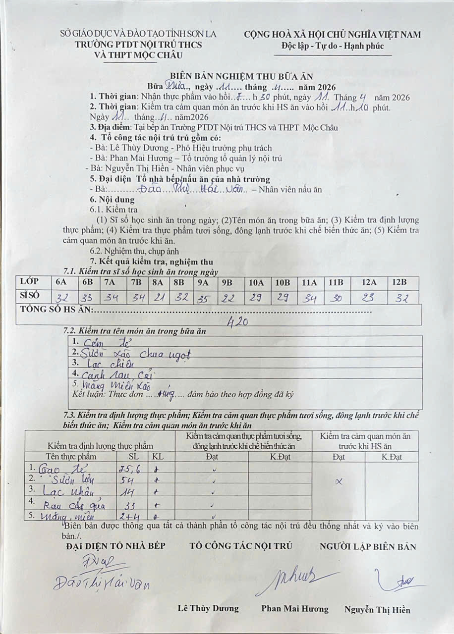 Hình ảnh và biên bản bữa sáng,trưa ngày 11/04/2026