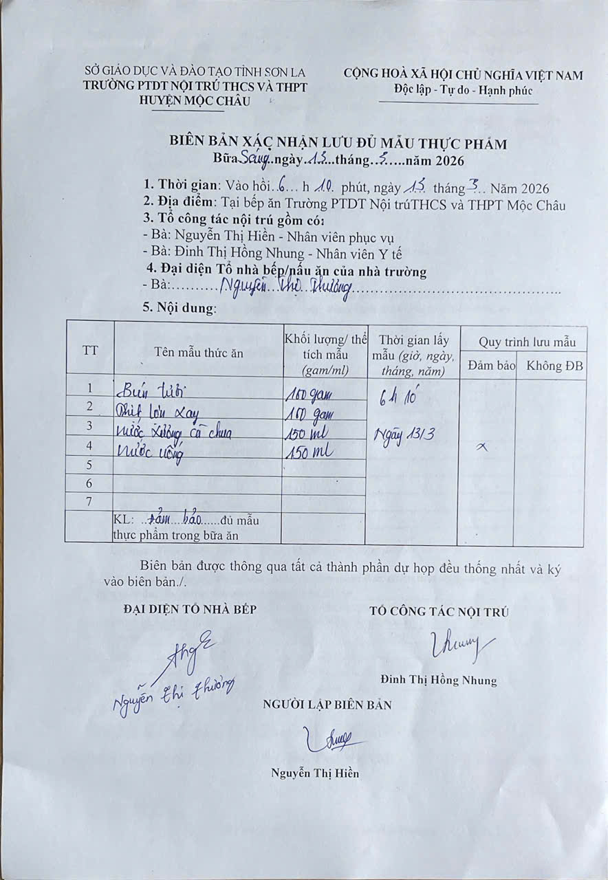 Hình ảnh và biên bản bưa sáng,trưa ngày 13/3/2026