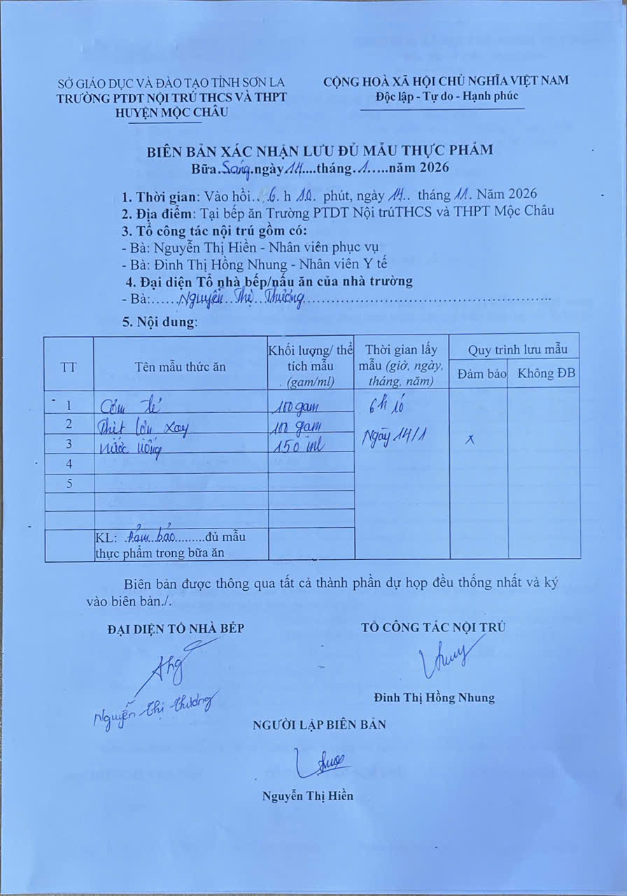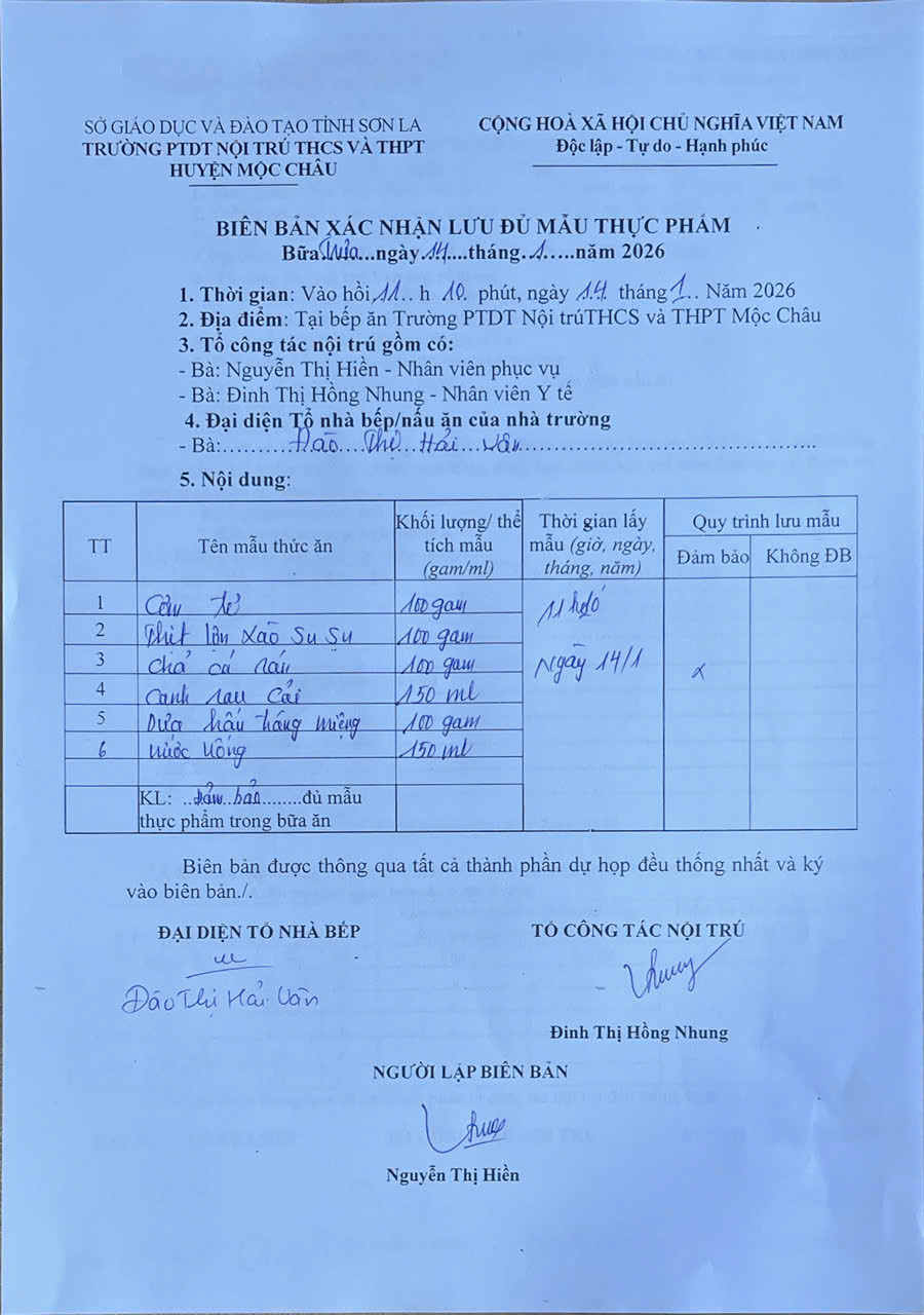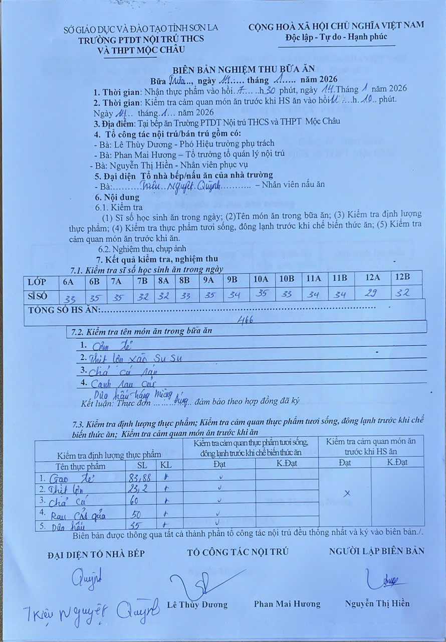 Hình ảnh và biên bản bữa sáng,trưa ngày 14/1/2026