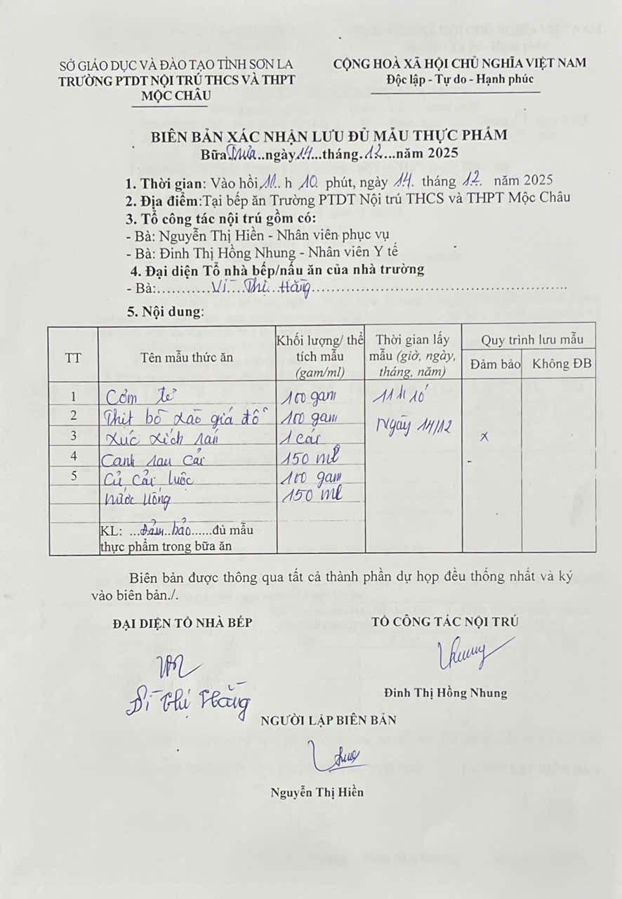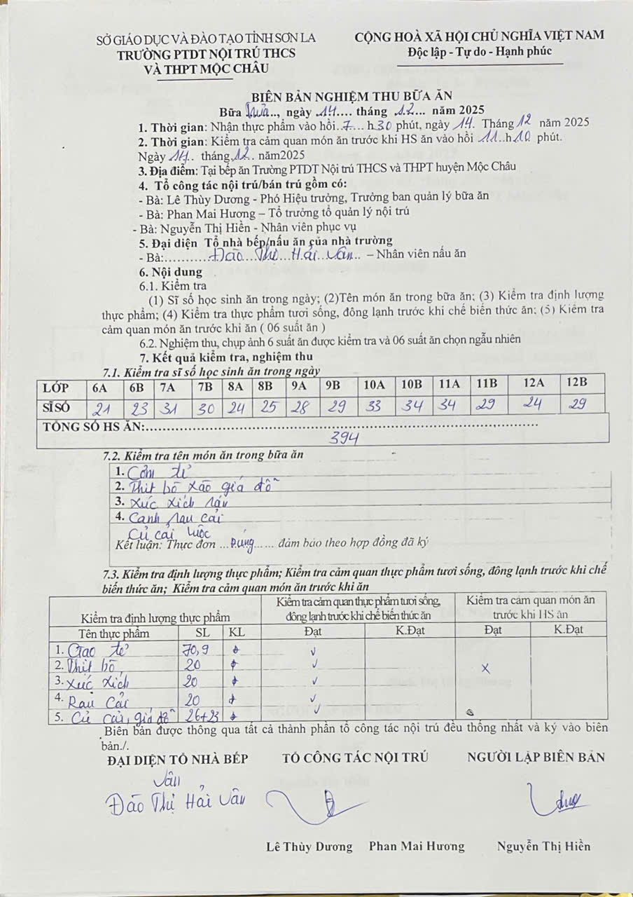 Hình ảnh và biên bản bữa sáng,trưa ngày 14/12/2025