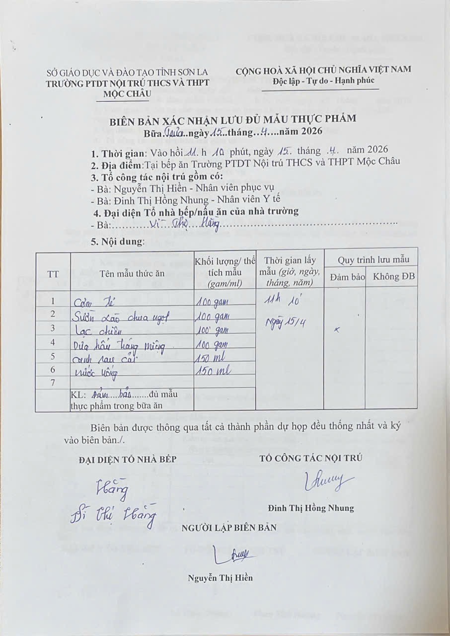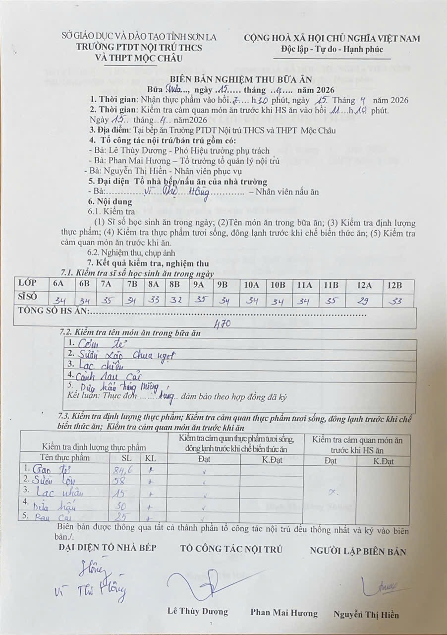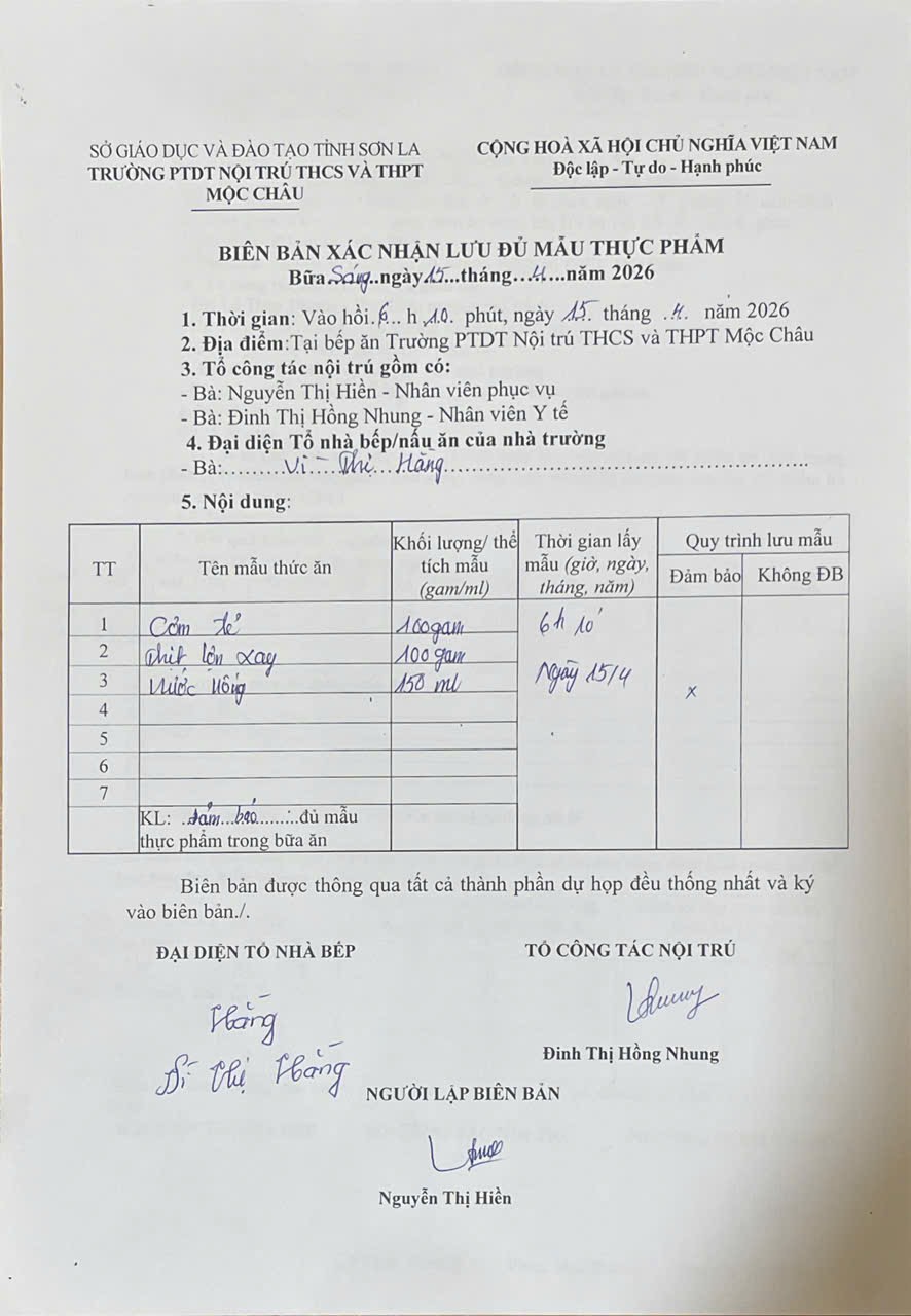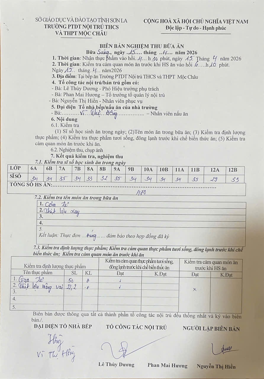 Hình ảnh và biên bản bữa sáng,trưa ngày 15/04/2026