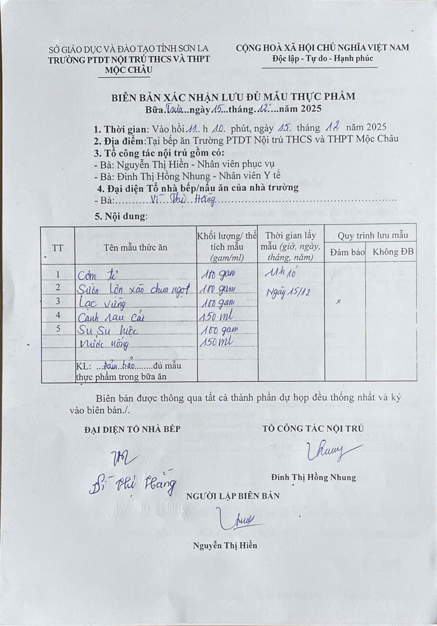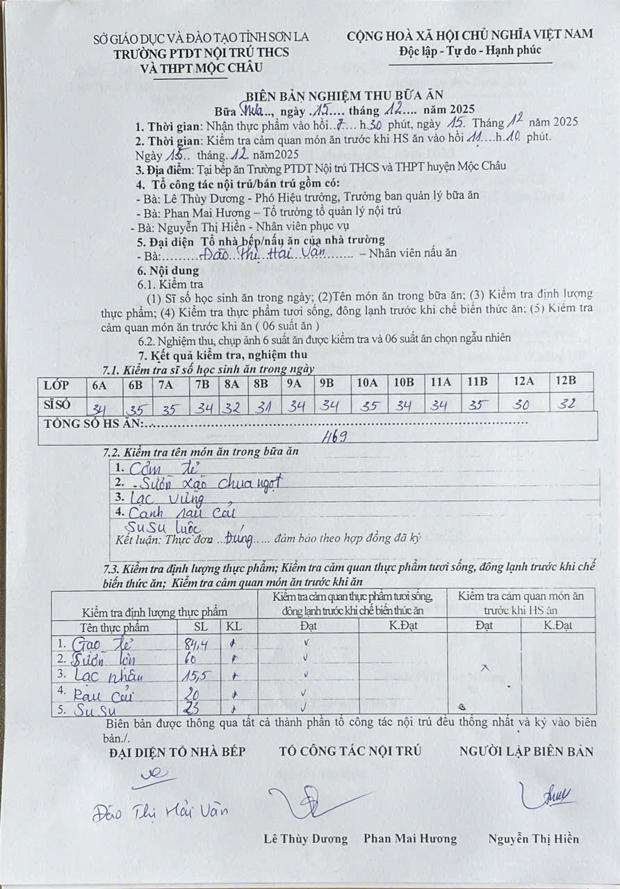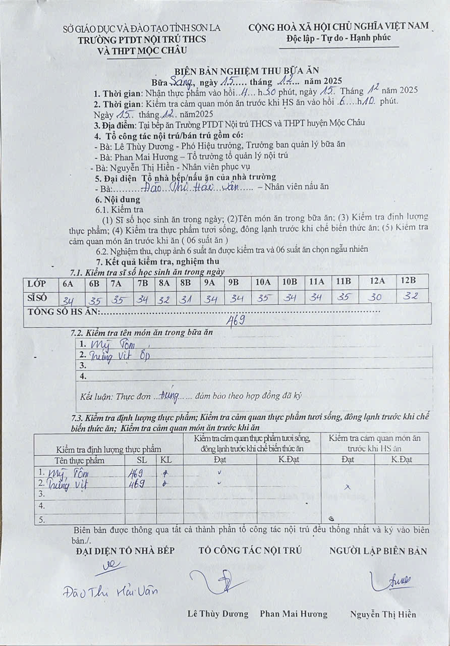 Hình ảnh và biên bản bữa sáng,trưa ngày 15/12/2025
