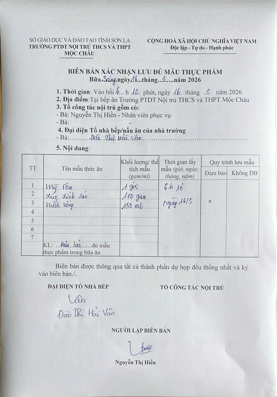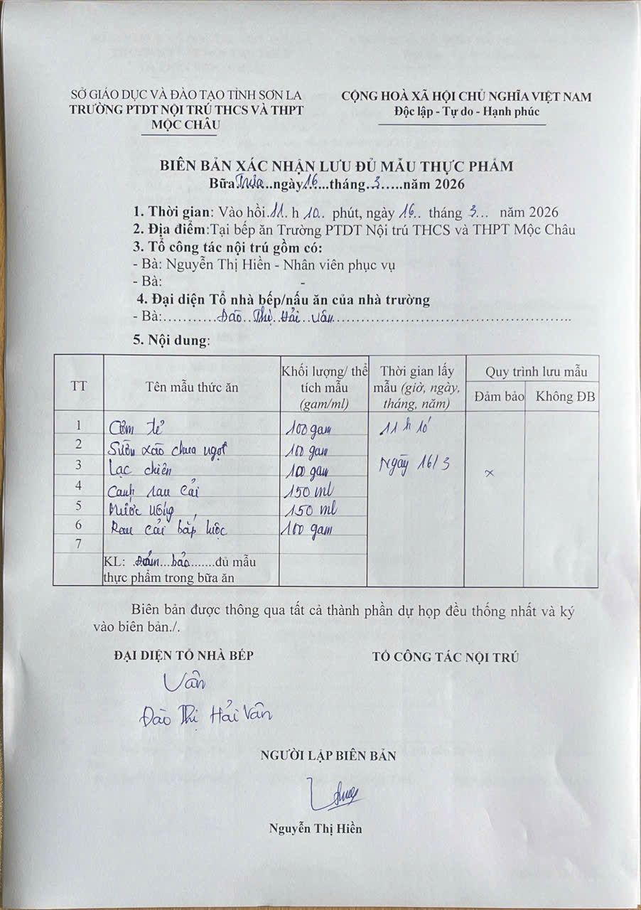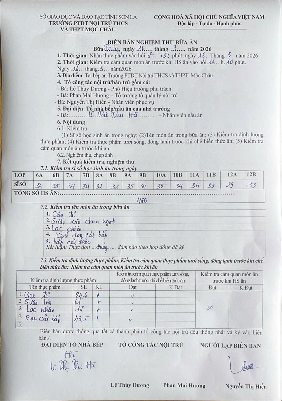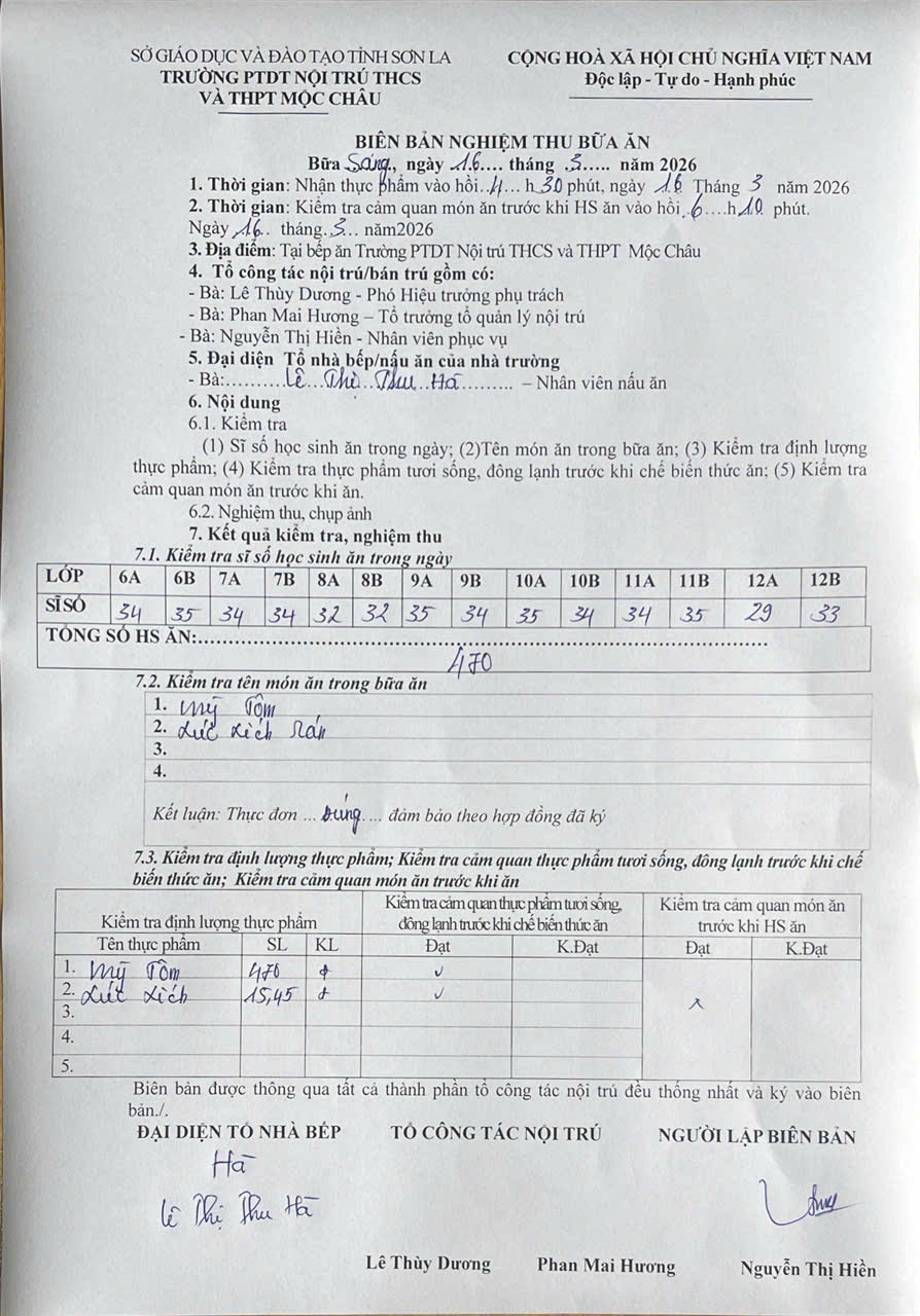 Hình ảnh và biên bản bữa sáng,trưa ngày 16/3/2026