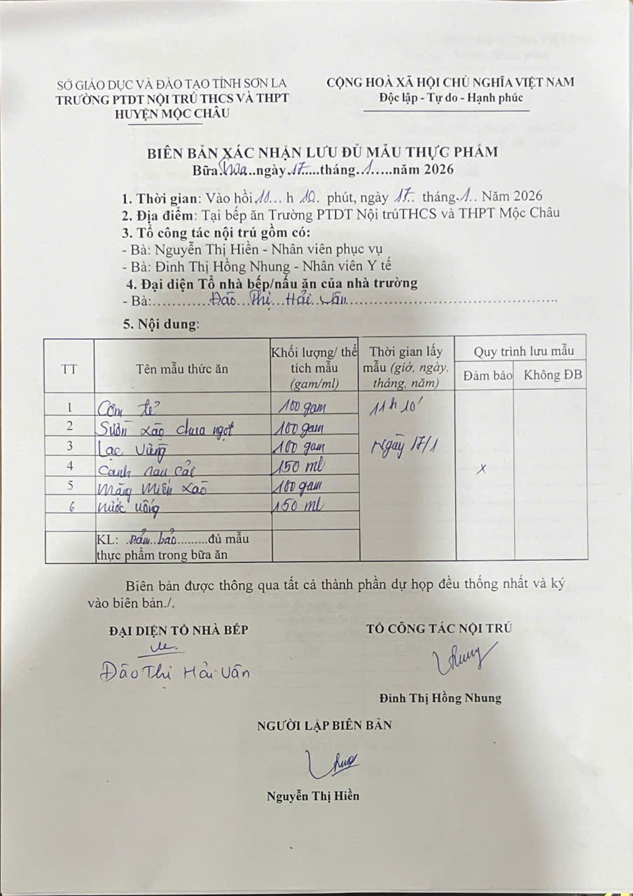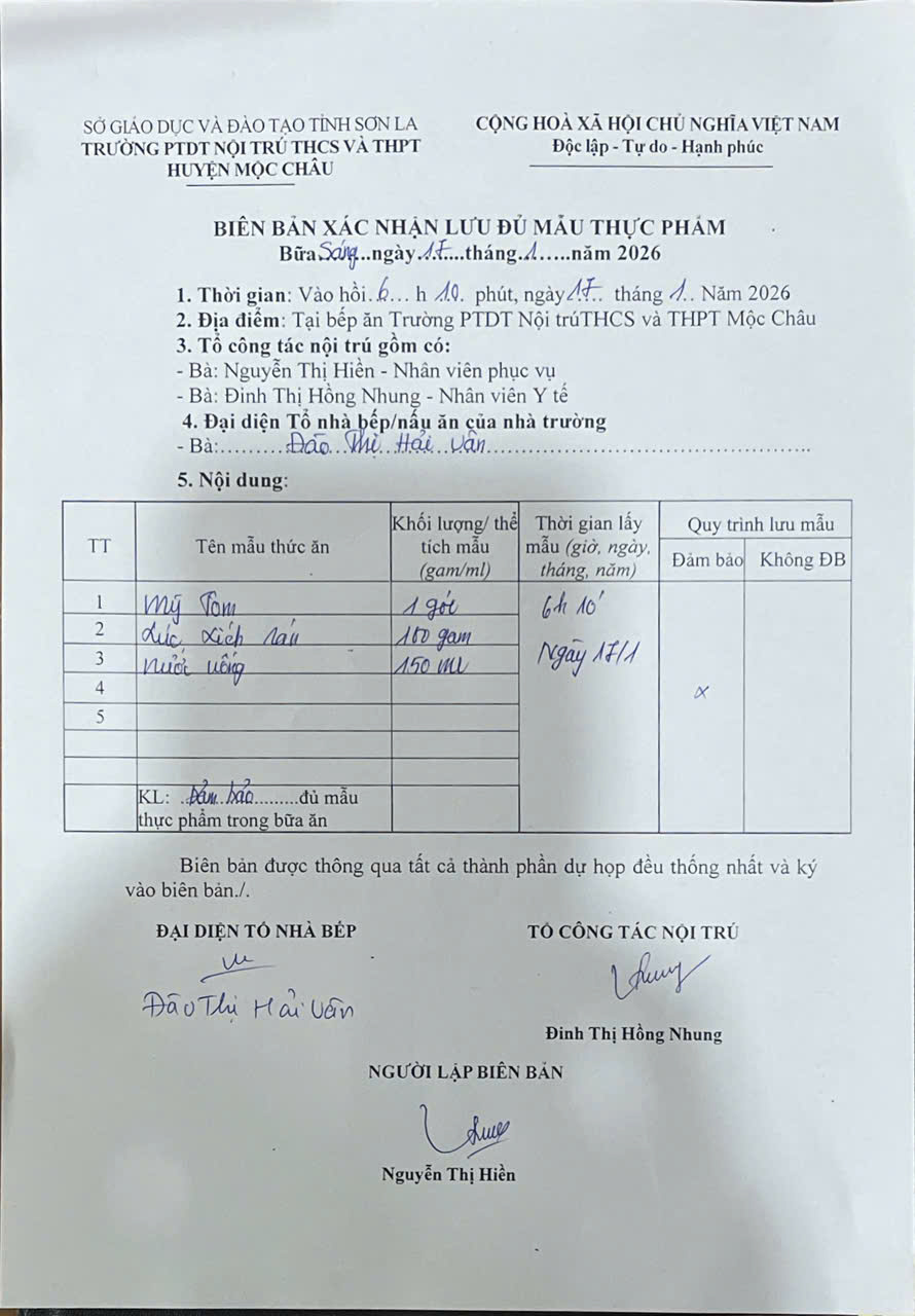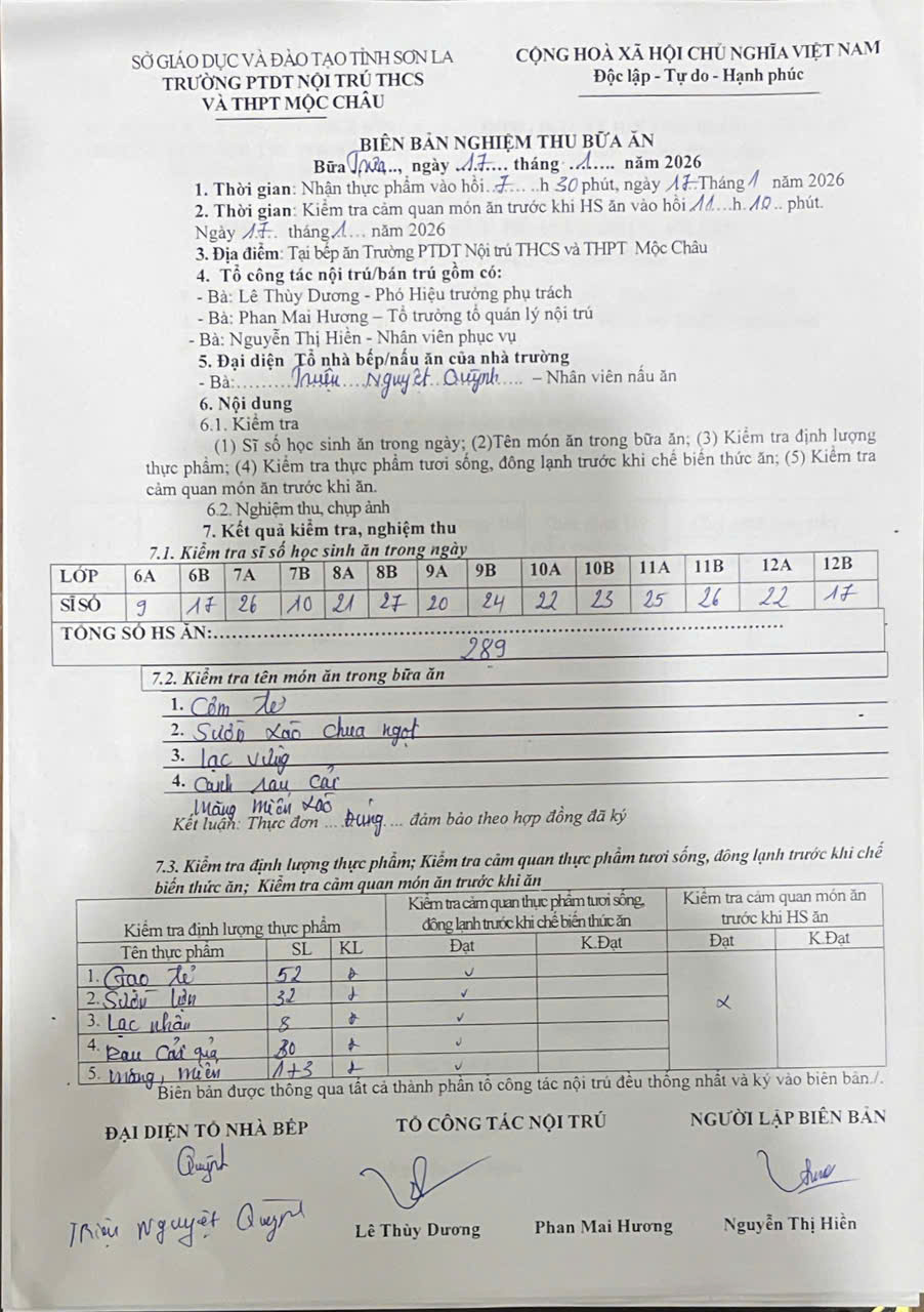 Hình ảnh và biên bản bữa sáng,trưa ngay 17/01/2026