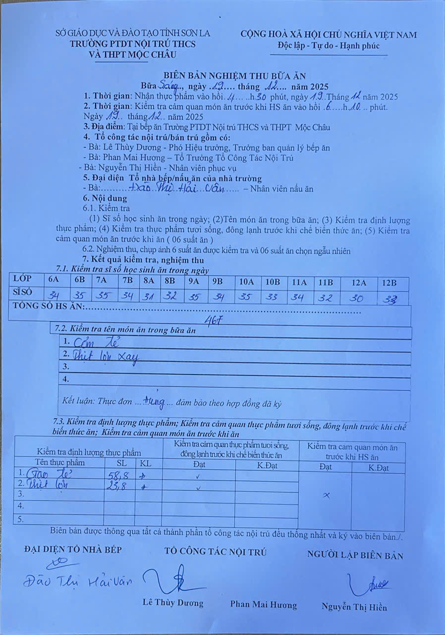 Hình ảnh và biên bản bữa sáng,trưa ngày 19/12/2025