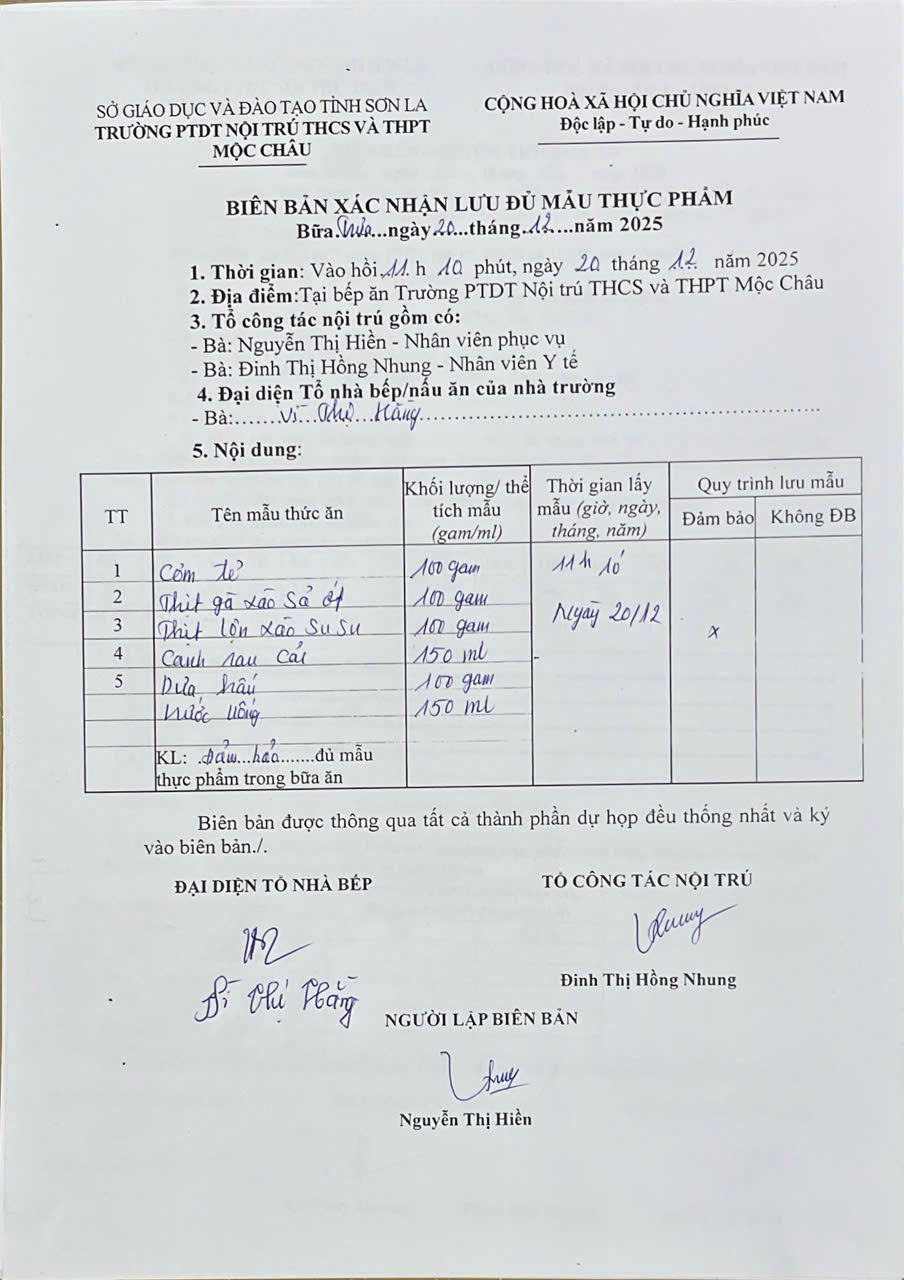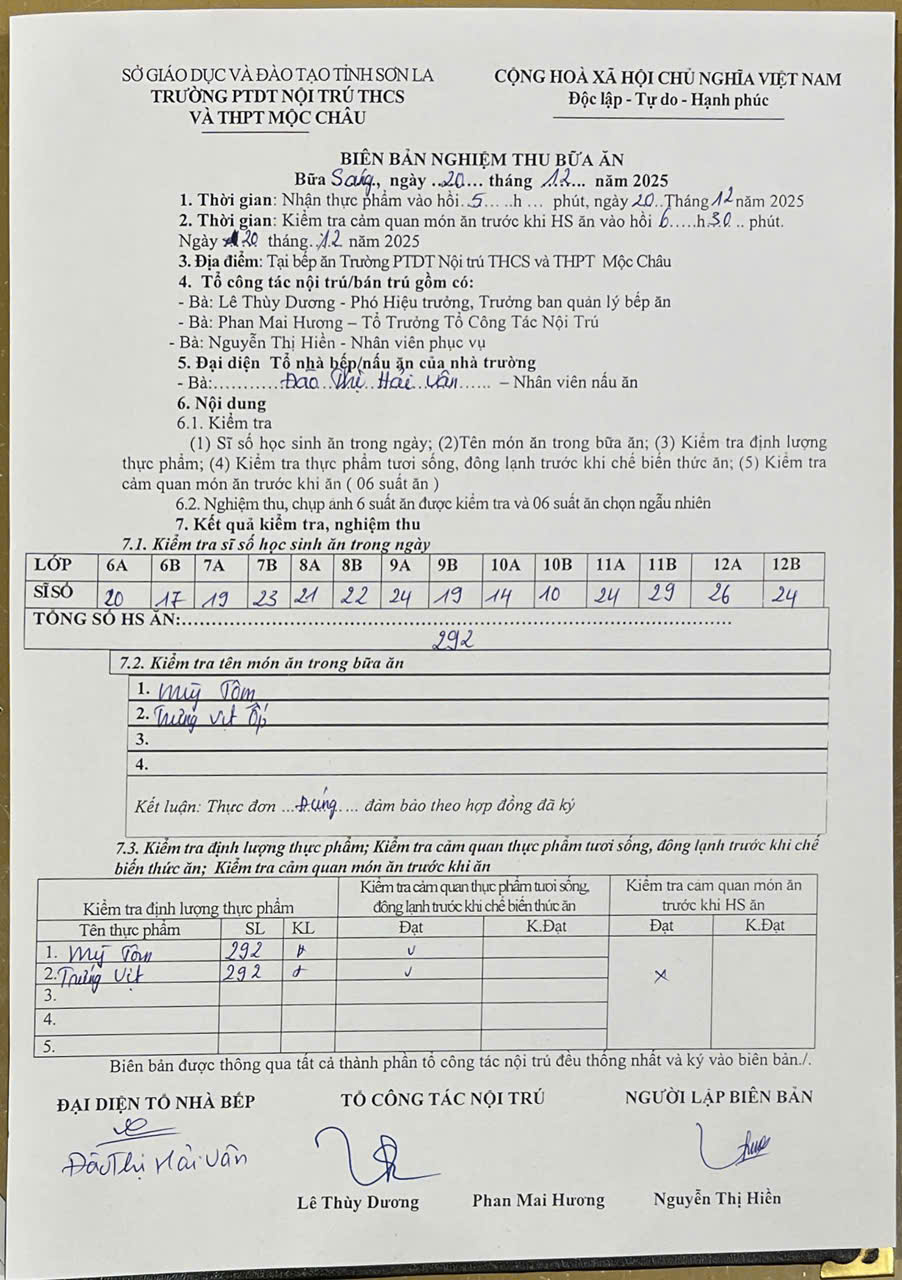 Hình ảnh và biên bản bữa sáng,trưa ngày 20/12/2025