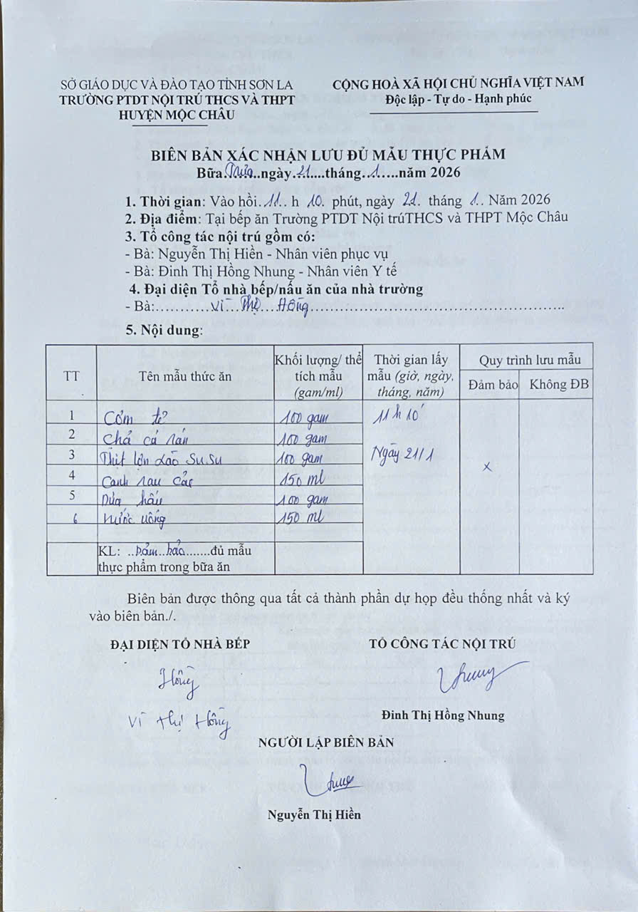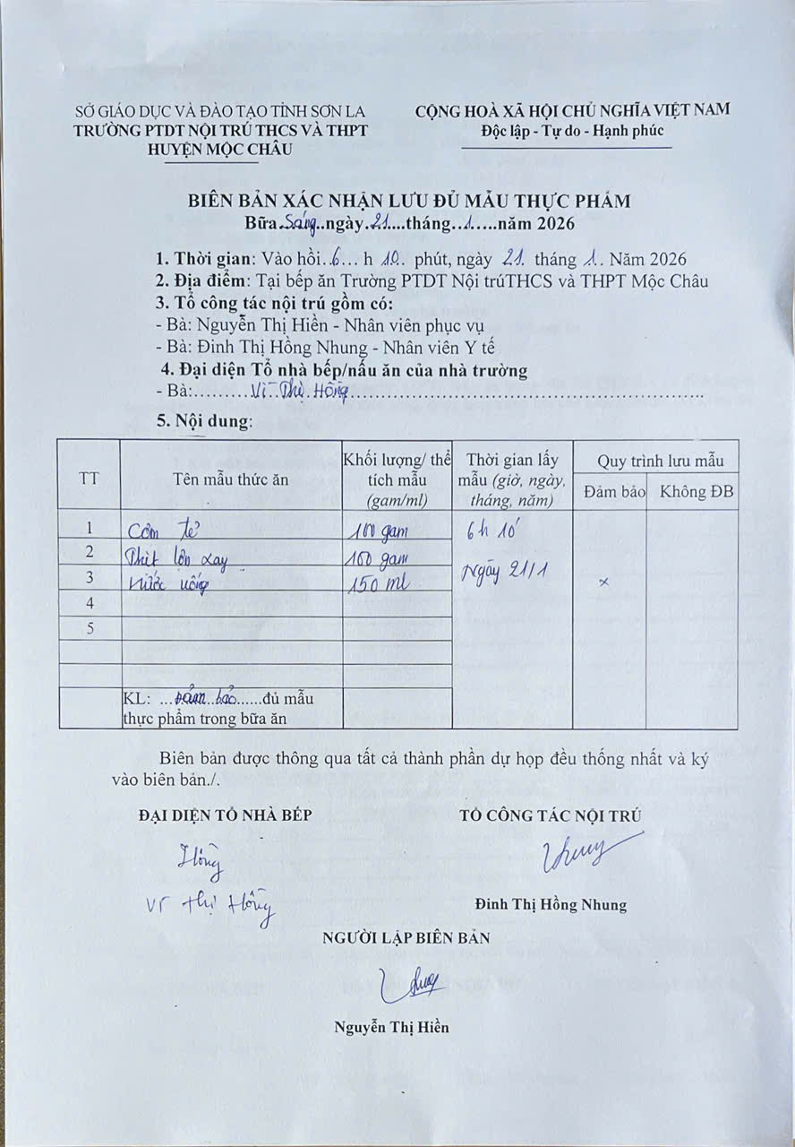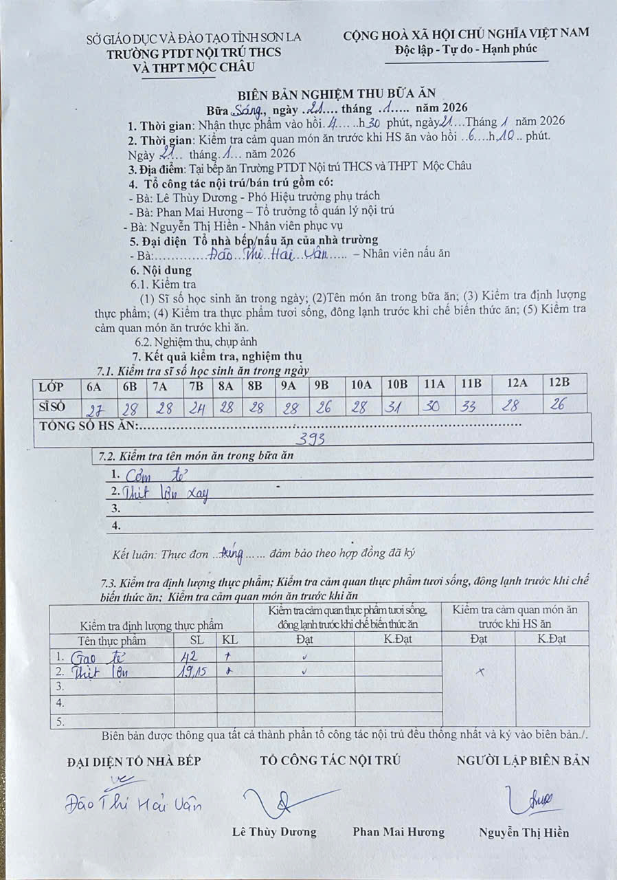 Hình ảnh và biên bản bữa sáng,trưa ngày 21/1/2026