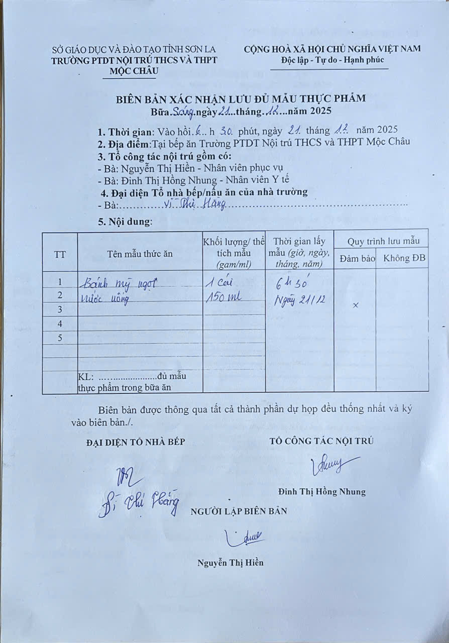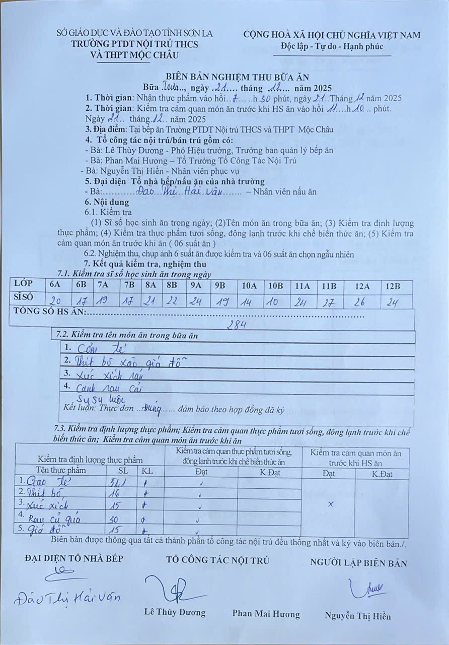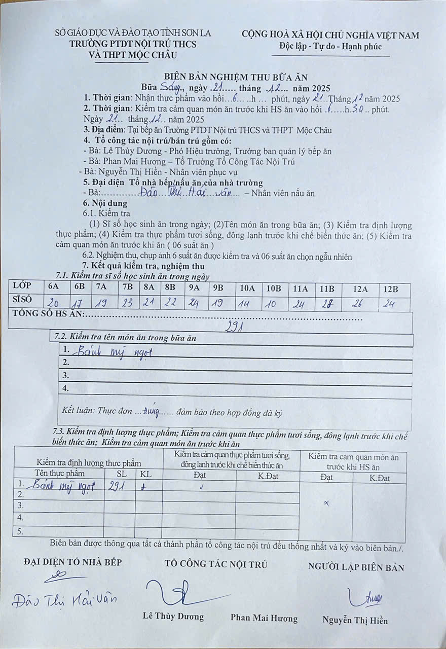 Hình ảnh và biên bản bữa sáng,trưa ngày 21/12/2025