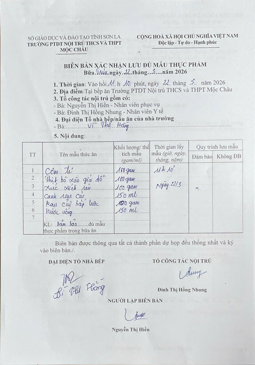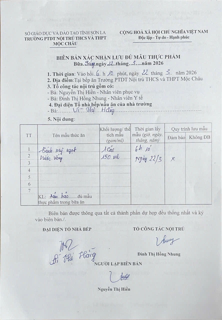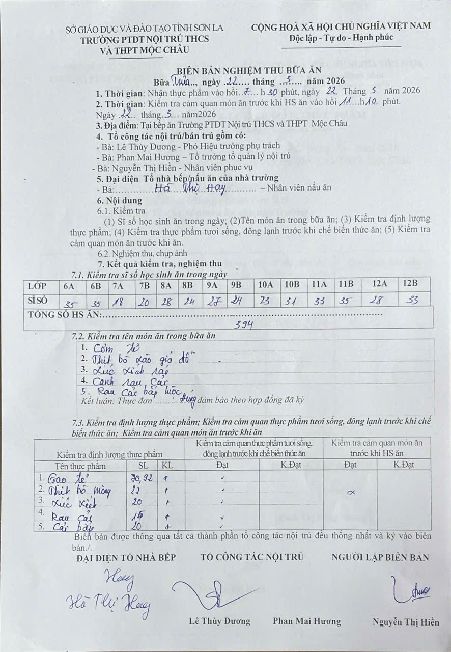 Hình ảnh và biên bản bữa sáng,trưa ngày 22/3/2026