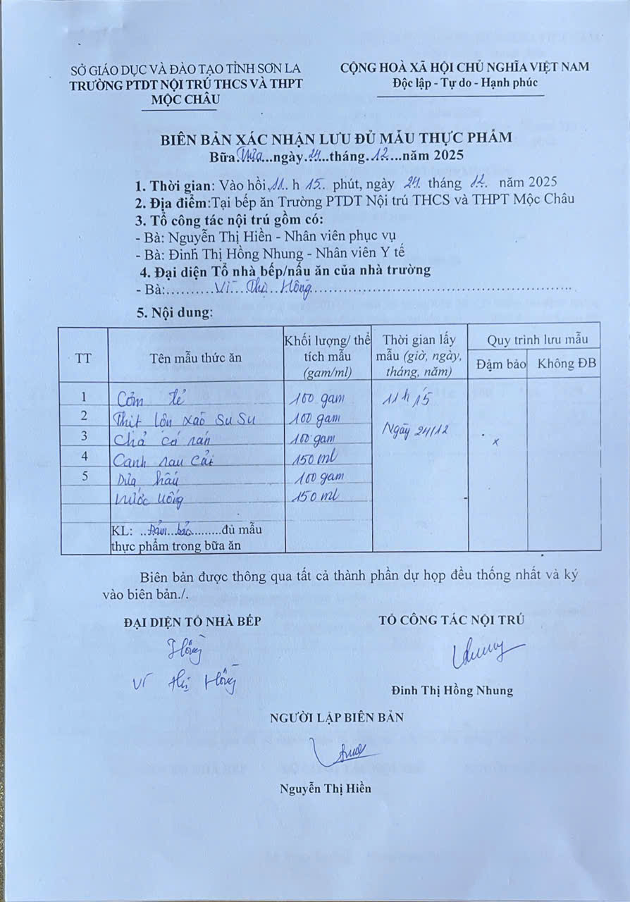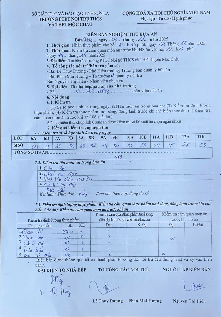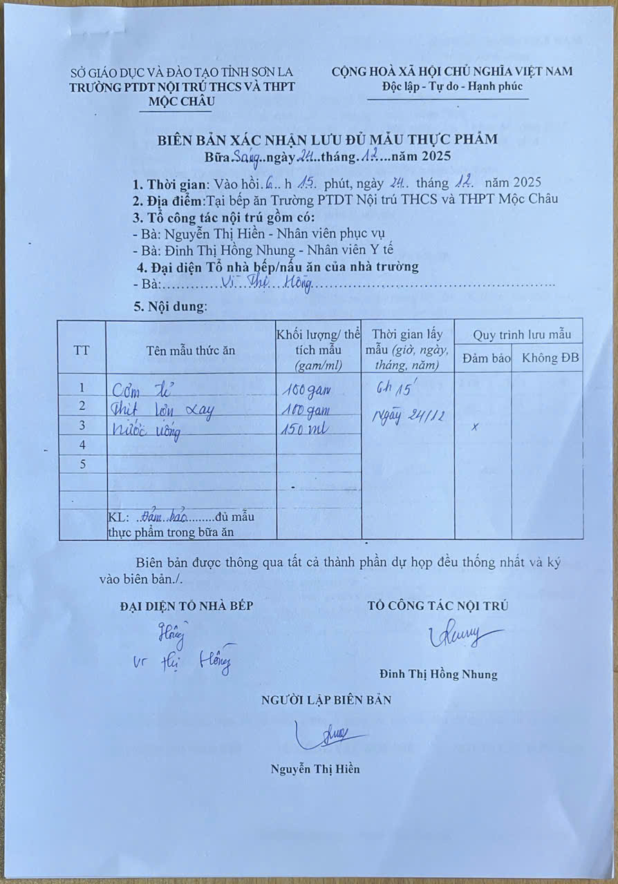 Hình ảnh và biên bản bữa sáng,trưa ngày 24/12/2025