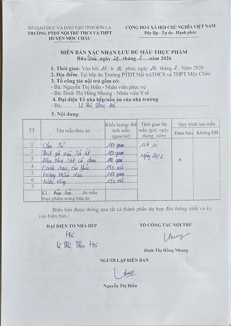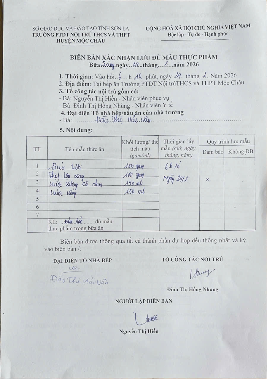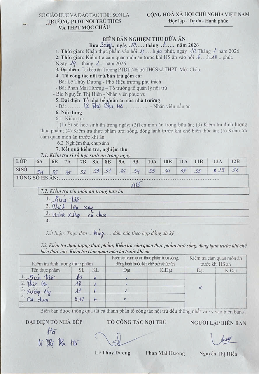 Hình ảnh và biên bản bữa sáng,trưa ngày 24/2/2026