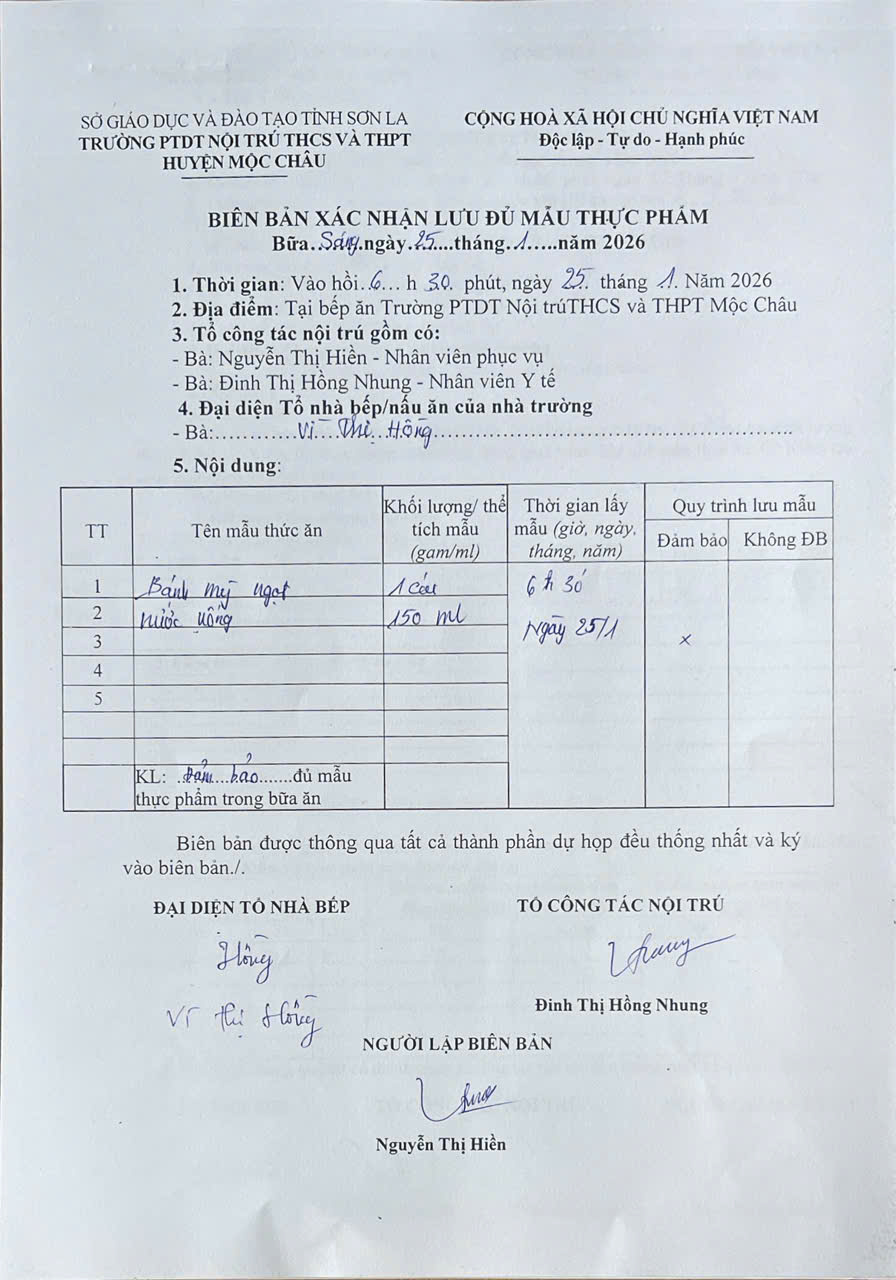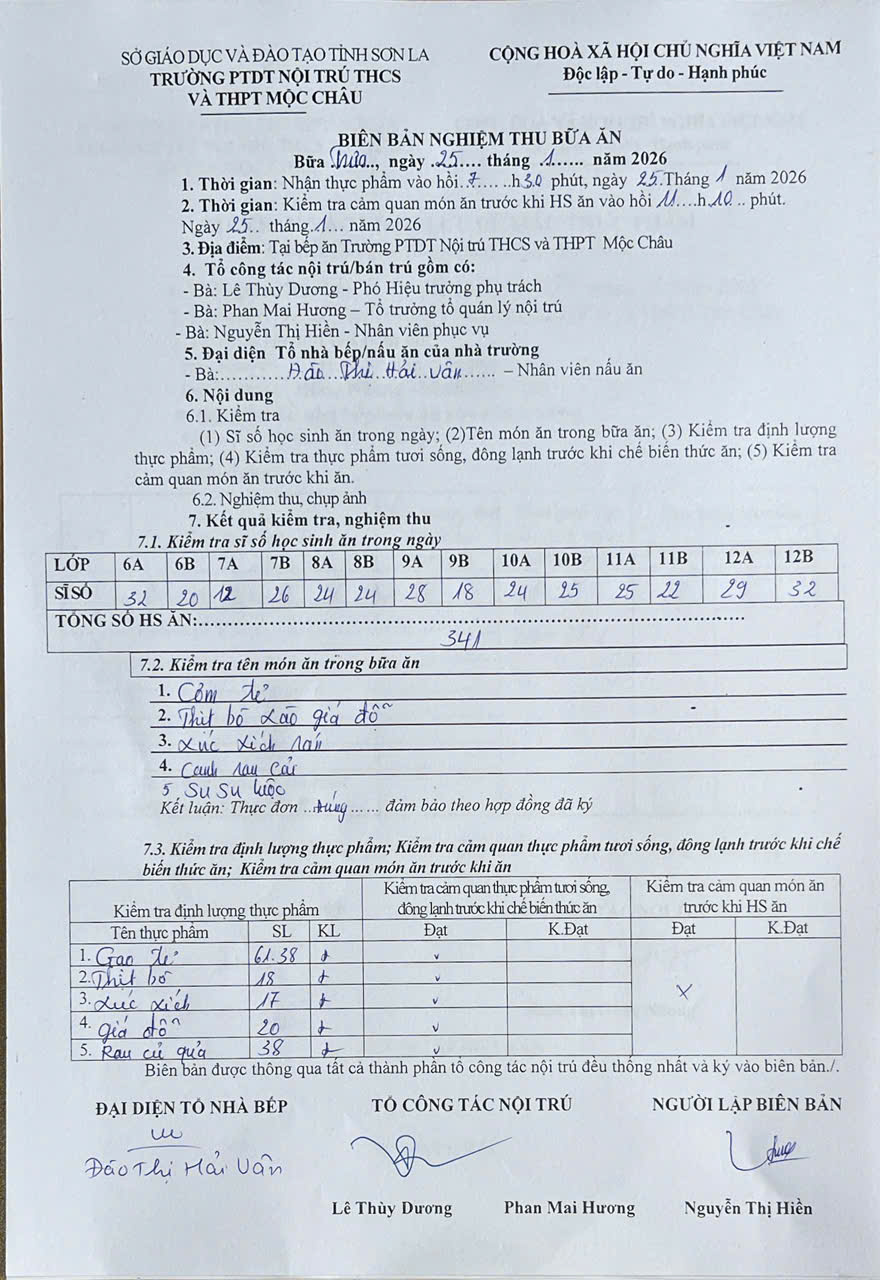 Hình ảnh và biên bản bữa sáng,trưa ngày 20/12/2025