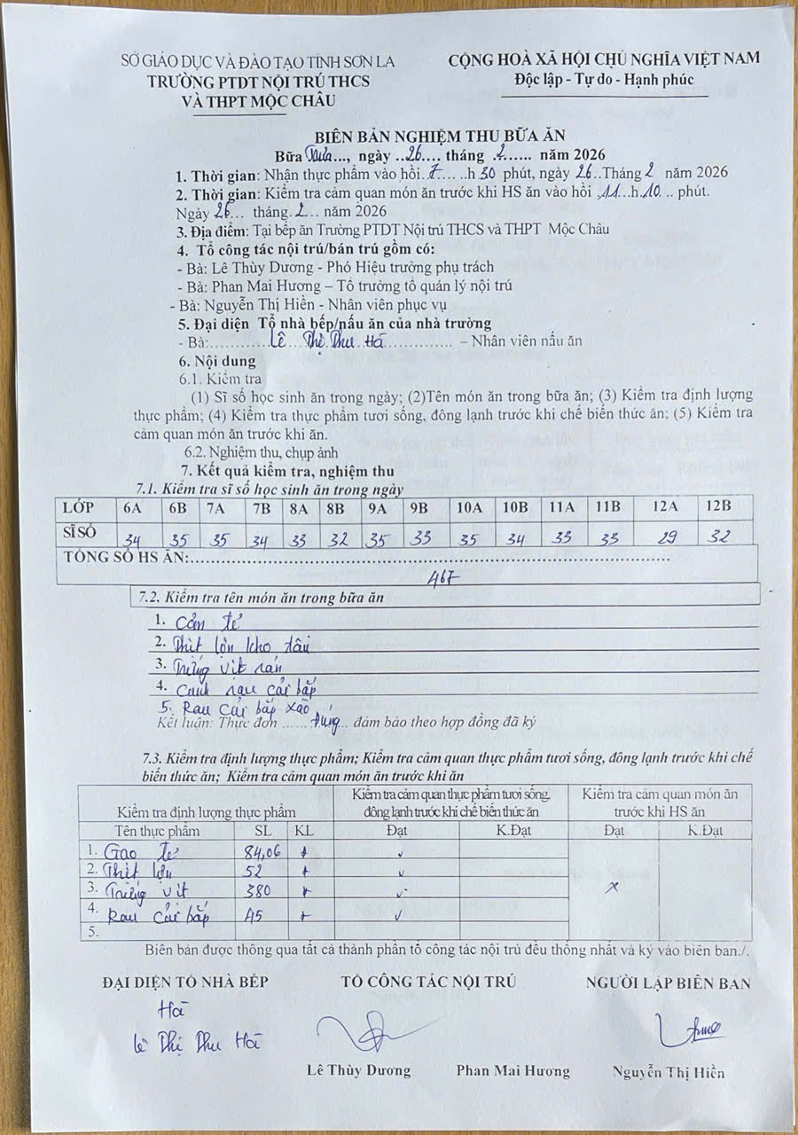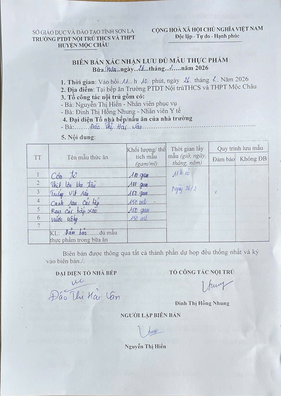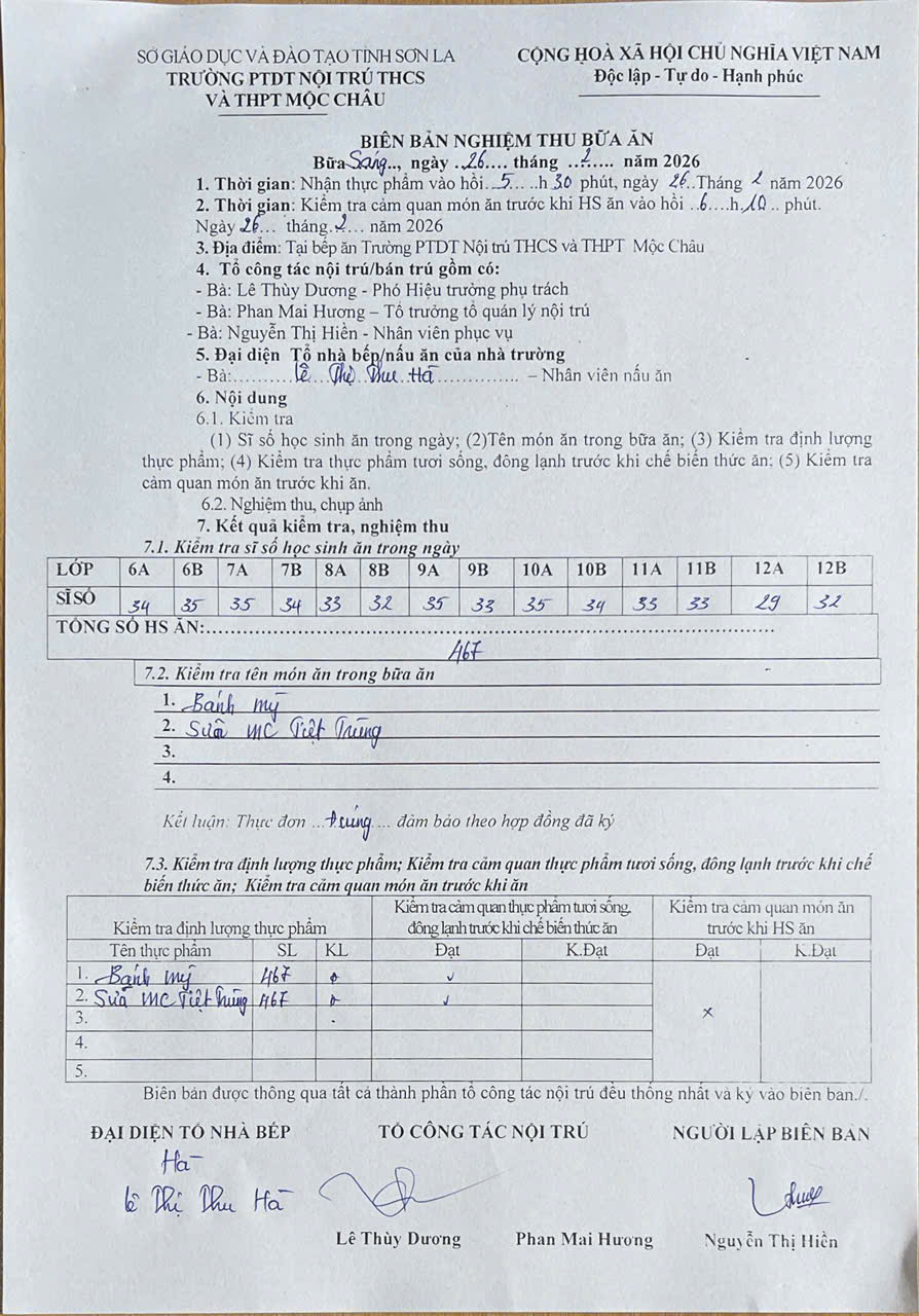 Hình ảnh và biên bản bữa sáng,trưa ngày 26/2/2026