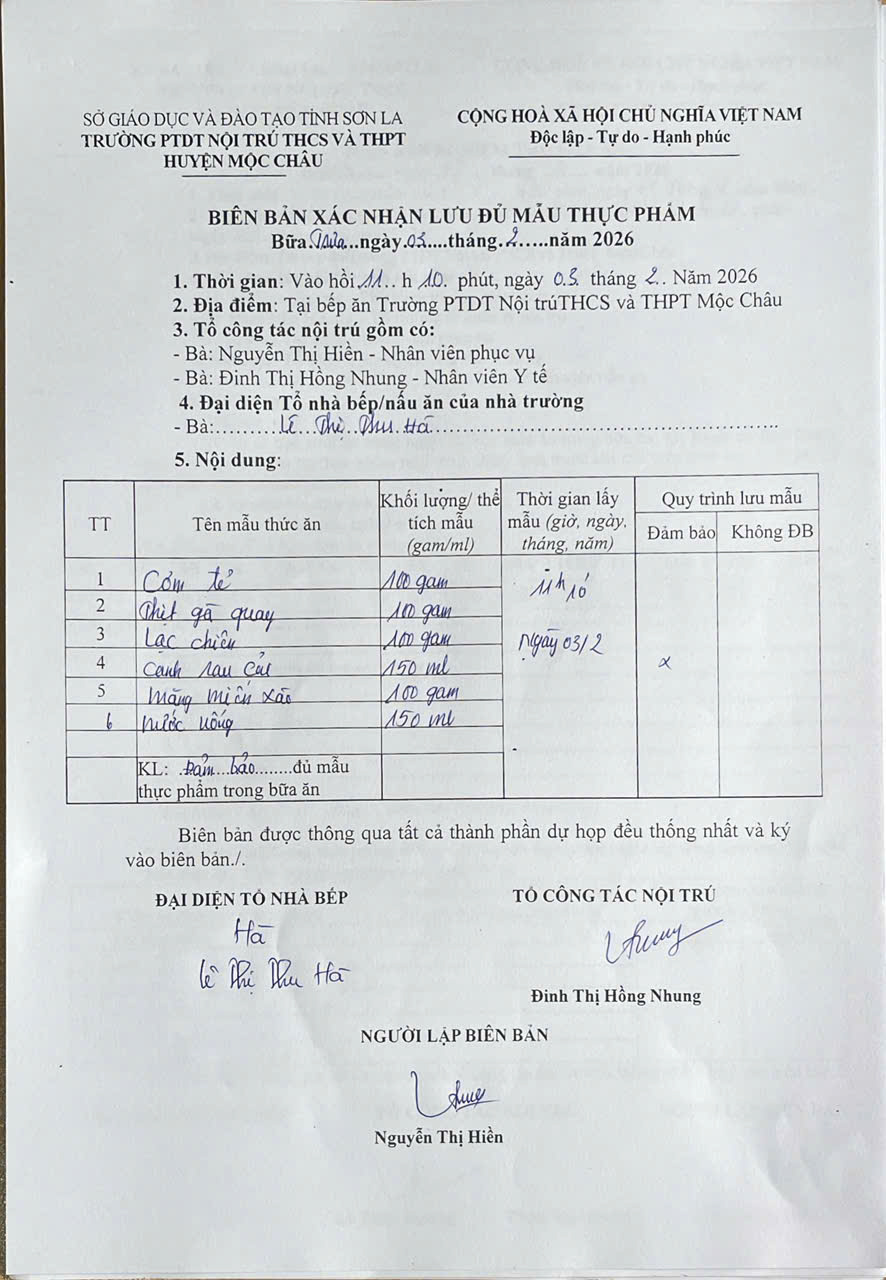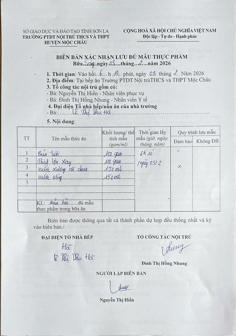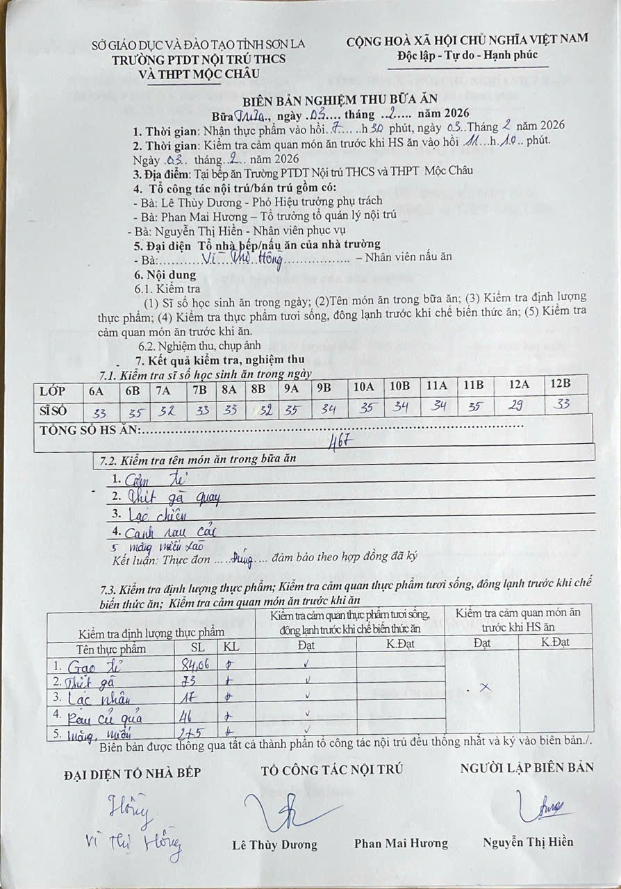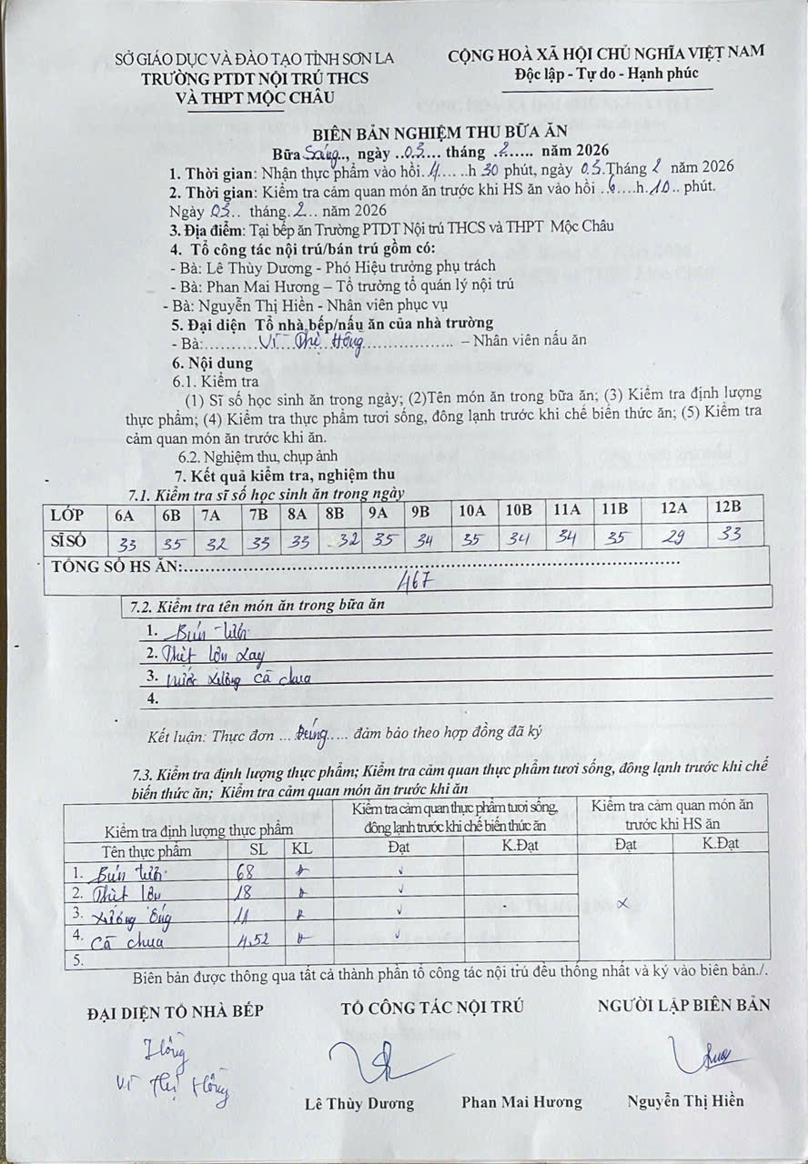 Hình ảnh và biên bản bữa sáng,trưa ngày 3/2/2026
