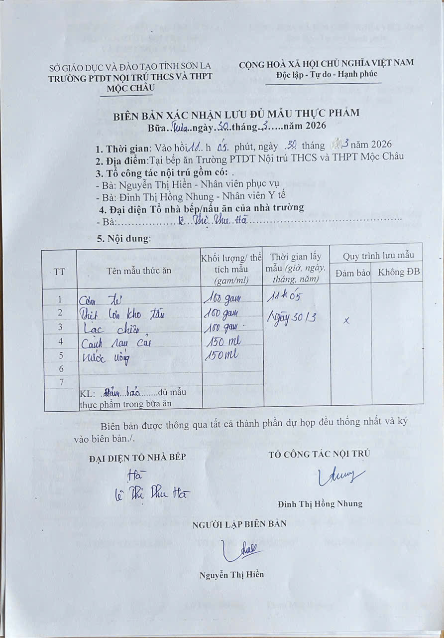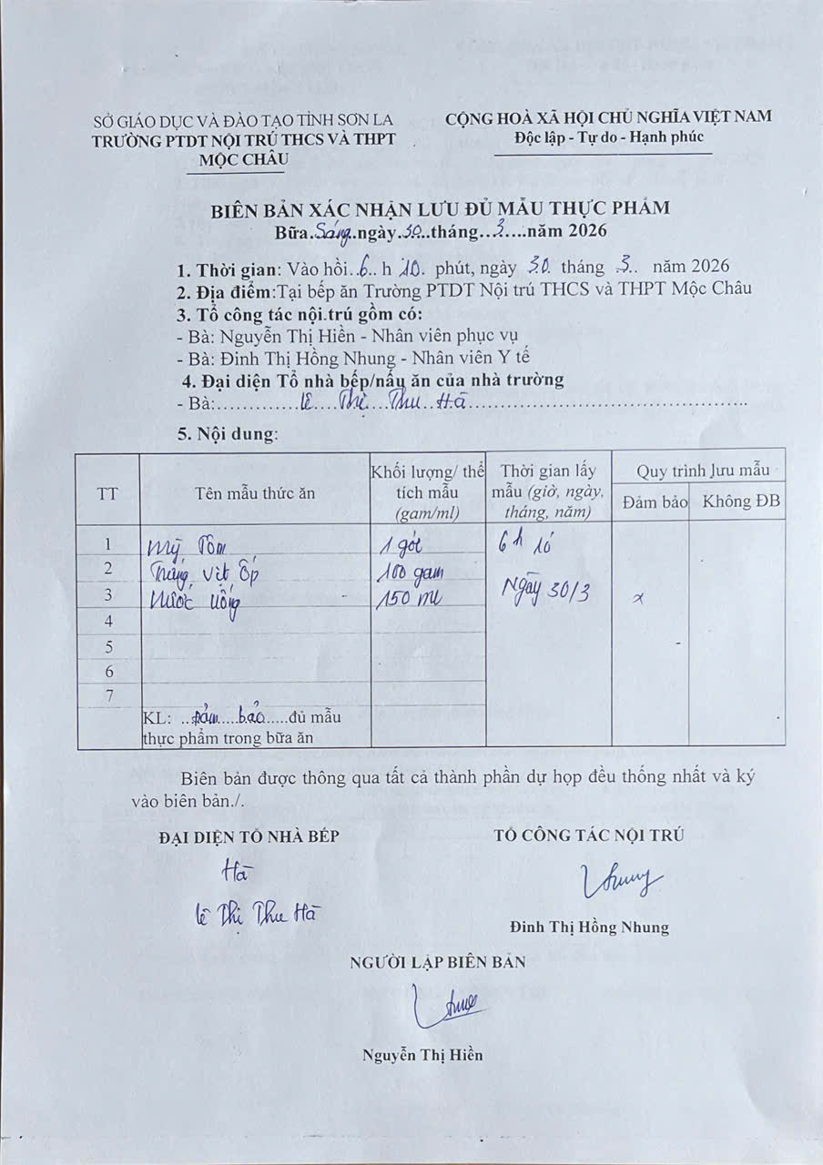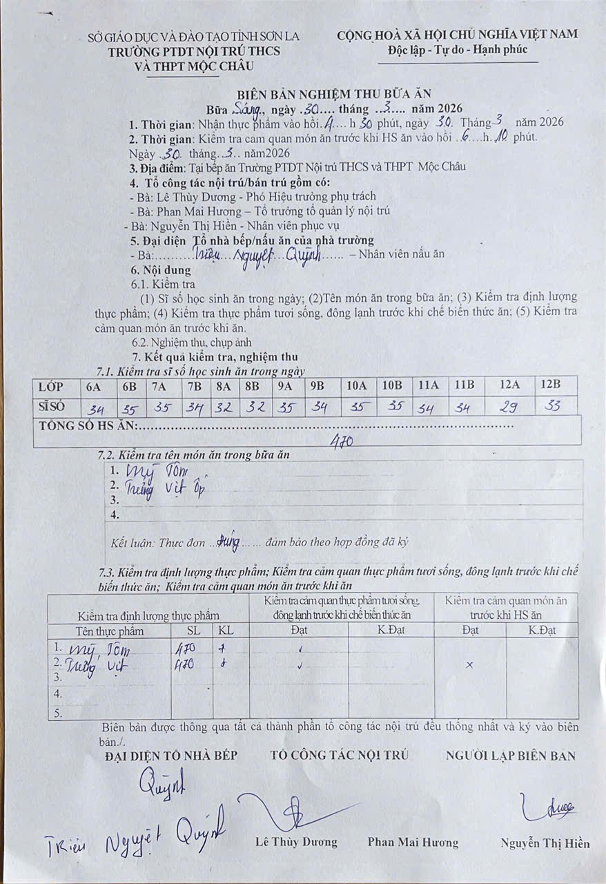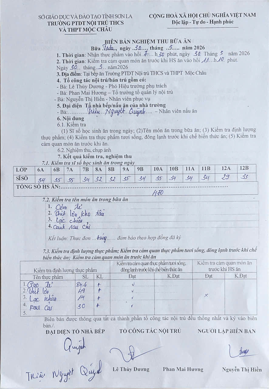 Hình ảnh và biên bản bữa sáng,trưa ngày 30/3/2026