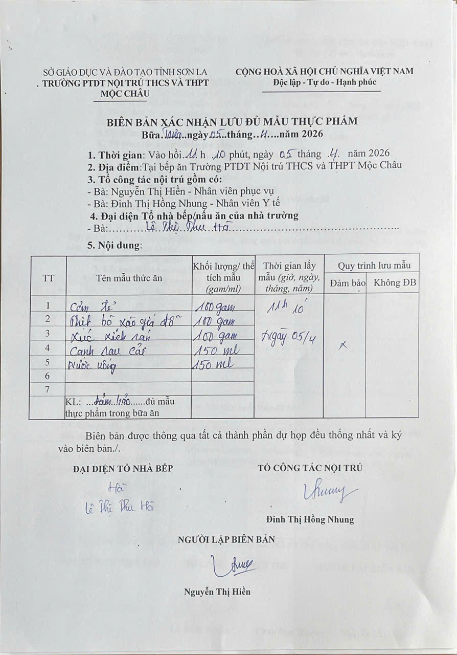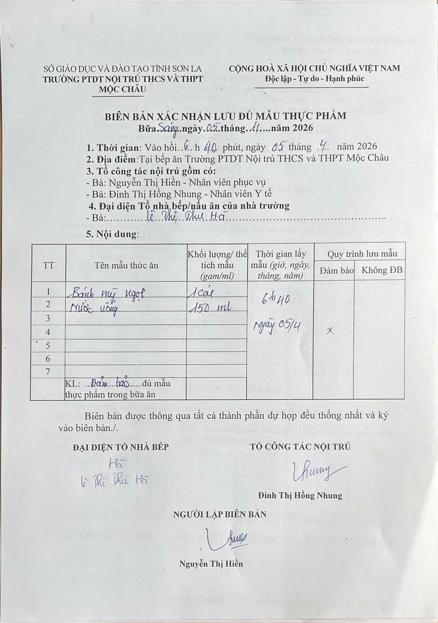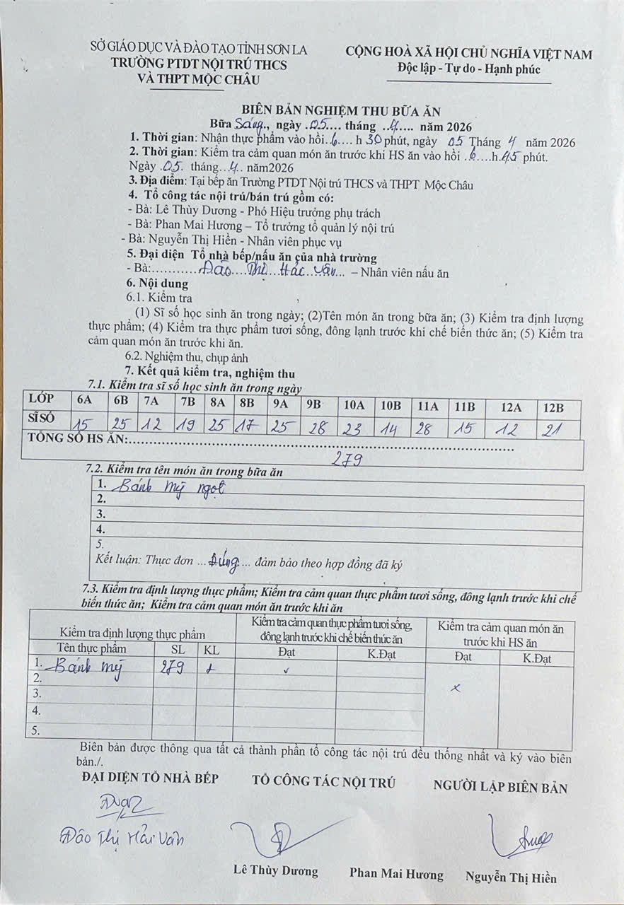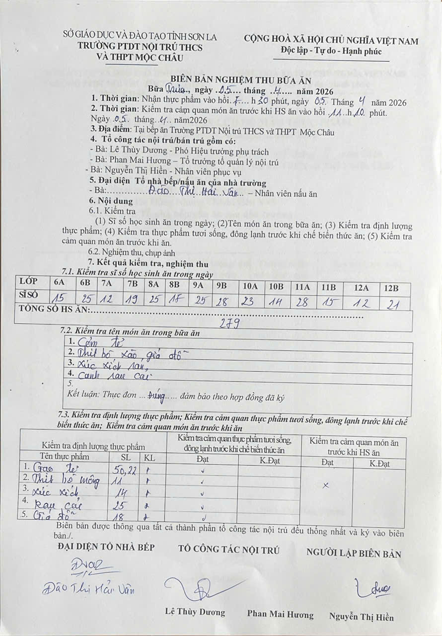 Hình ảnh và biên bản bữa sáng,trưa ngày 5/4/2026