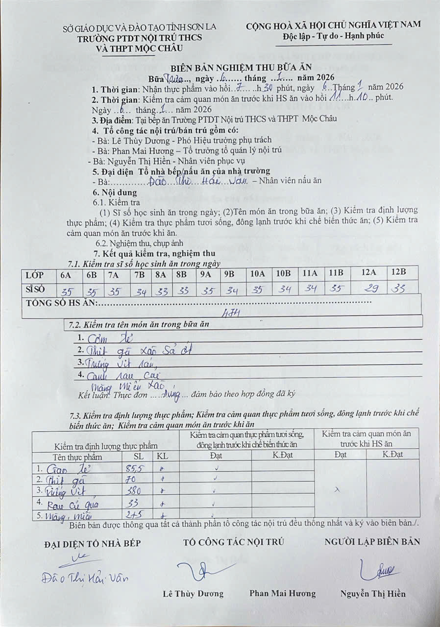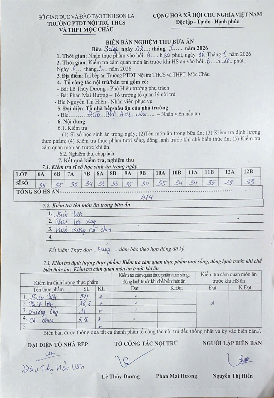Hình ảnh và biên bản bữa sáng,trưa ngày 6/01/2026