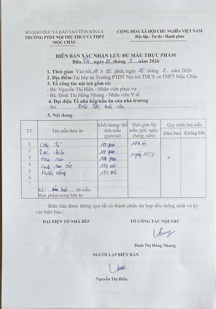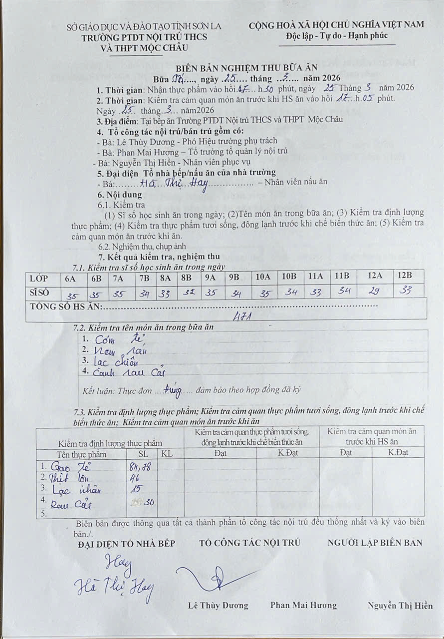 Hình ảnh và biên bản bữa sáng,trưa 25/3/2026