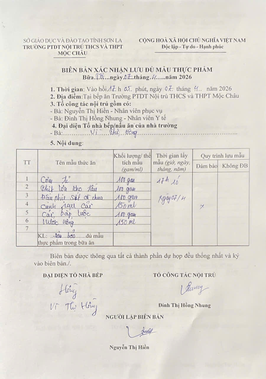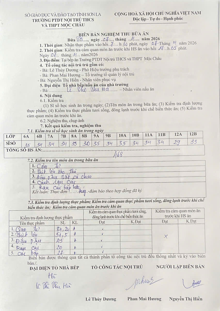 Hình ảnh và biên bản bữa sáng,trưa ngày 08/04/2026