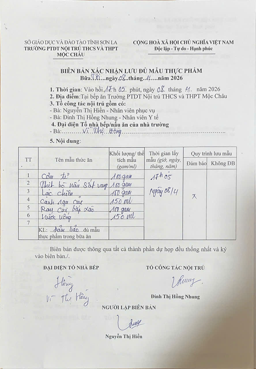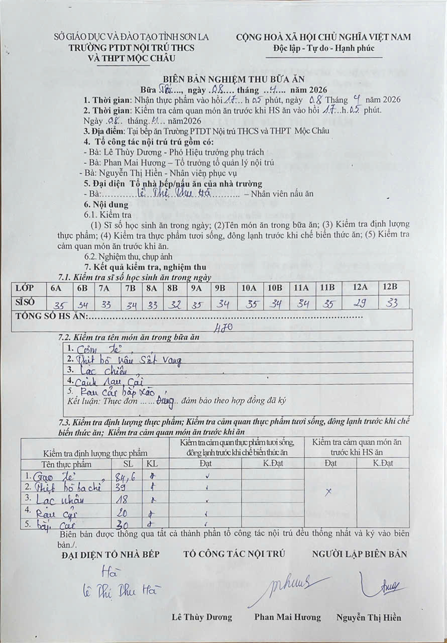 Hình ảnh và biên bản bữa sáng,trưa ngày 08/04/2026