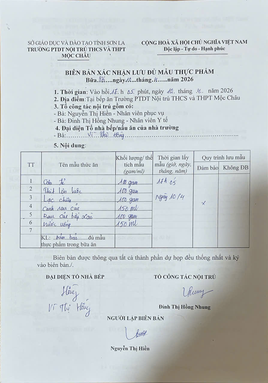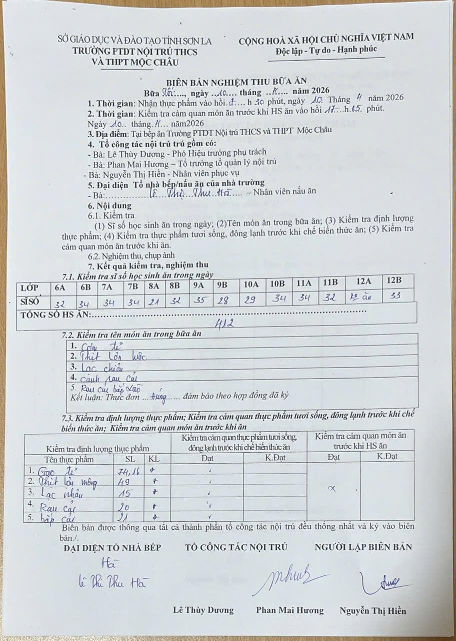 Hình ảnh và biên bản bữa ăn sáng,trưa ngày 10/4/2026