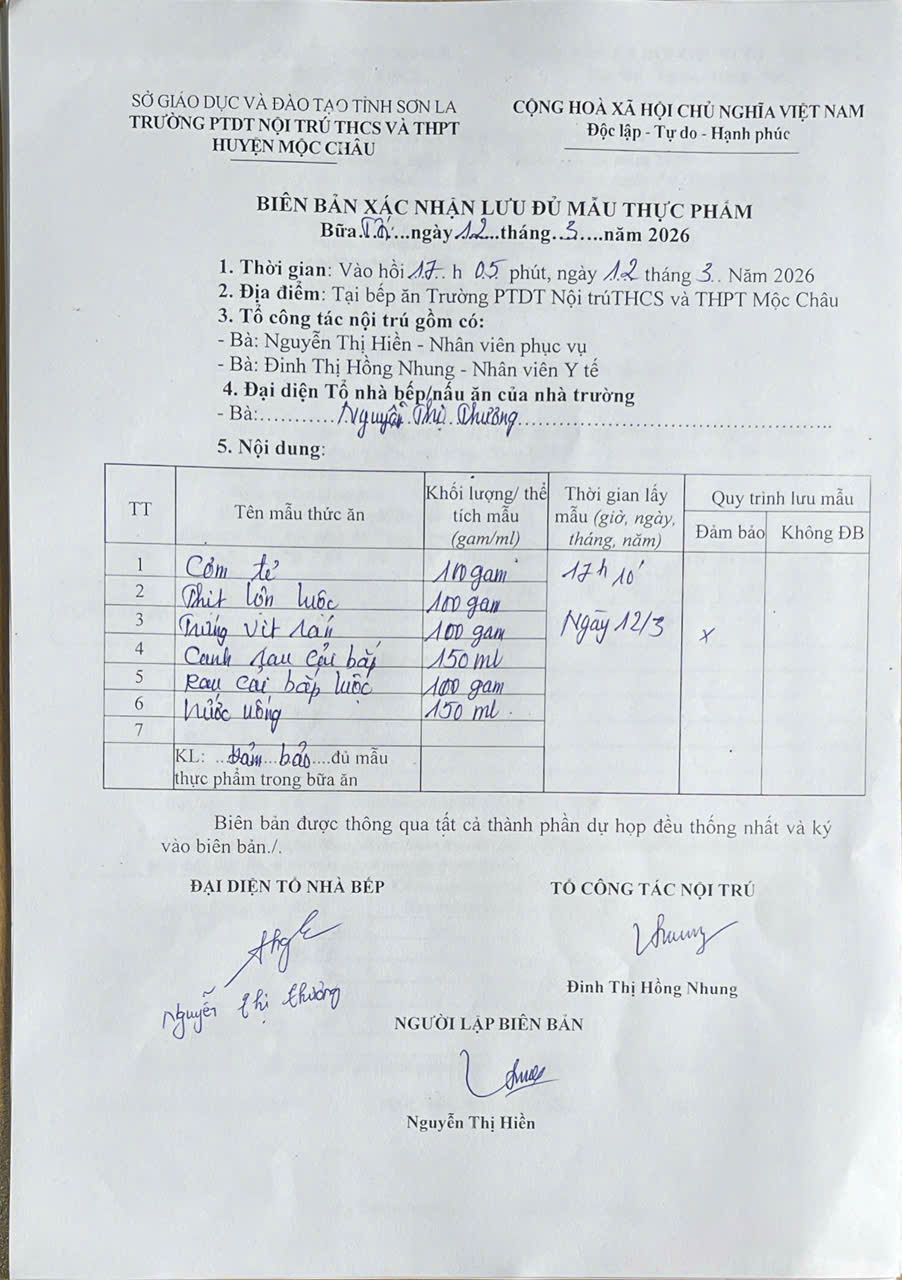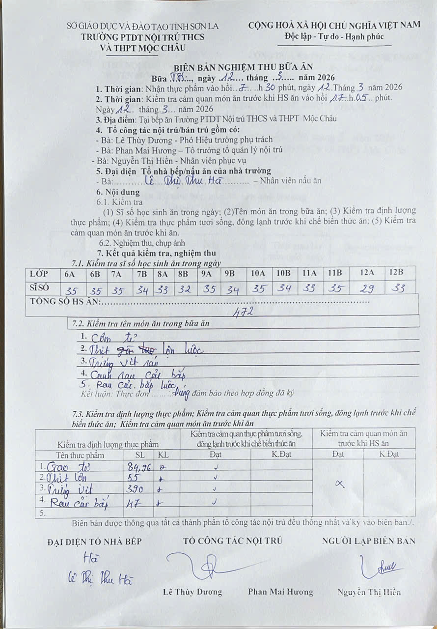 Hình ảnh và biên bản bữa sáng ,trưa ngày 12/3/2026