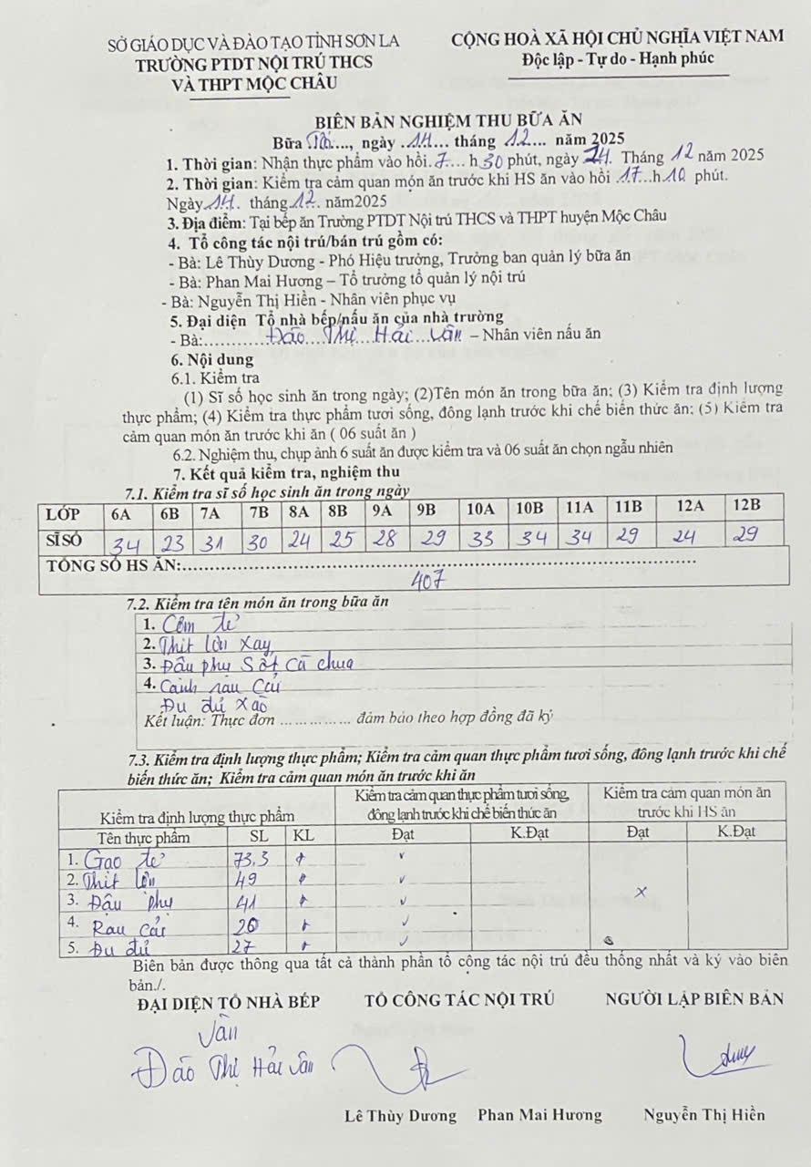 Hình ảnh và biên bản bữa sáng,trưa ngày 15/12/2025
